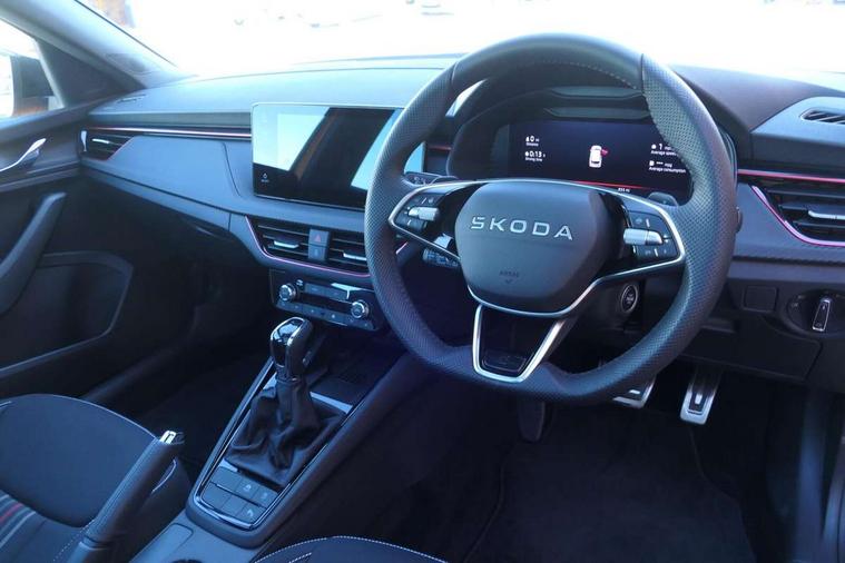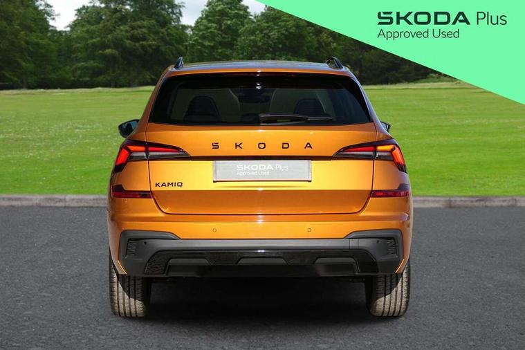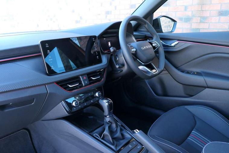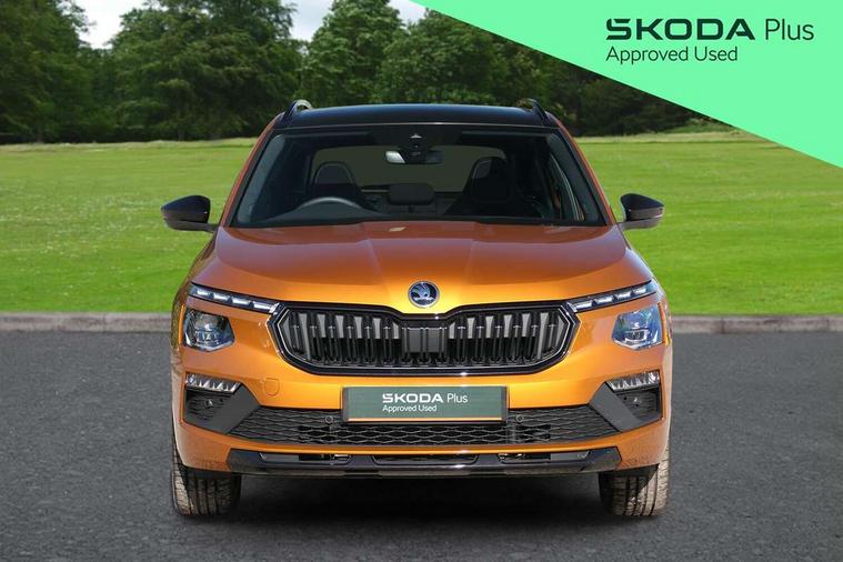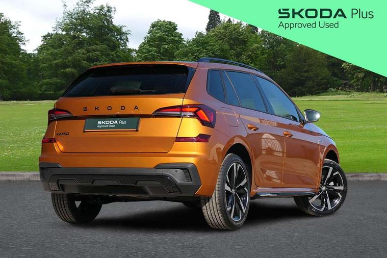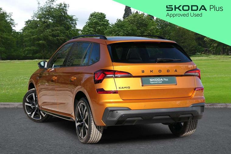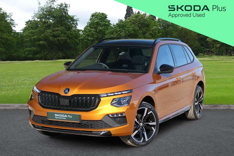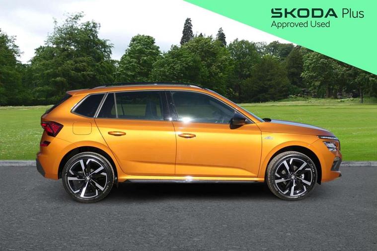 Advanced driver attention and drowsiness monitor, Bluetooth system, E-call, Front assist system, PAS, Rear parking sensors, Rear view camera, Service indicator, Speed limiter, Traffic sign recognition, Virtual cockpit with 10.25" display, Voice control system, Wireless smartlink, 4 USB C ports, 8 Speakers, 9.2" Skoda navigation display, DAB Digital radio, Auto dimming rear view mirror, Automatic headlight control with coming home and leaving home feature, Black door mirrors, Black radiator grille, Black rear diffuser, Black roof spoiler, Body colour bumpers, Body colour door handles, Boot lettering in black, Extended tailgate glass, Fixed panoramic sunroof with black roof rails, Front and rear electric windows, Heated rear window, LED daytime running lights, LED high beam, LED low beam, LED third brake light, Light sensors, Monte carlo plaque, Privacy glass, Rear side wing doors, Rear wiper, Ticket holder inside windscreen, 12V socket in luggage compartment, 3 seat bench in 2nd row, Aluminium pedals, Ambient lighting in white/red, Art leather carbon decor inserts, Art leather carbon door inserts, Black roof lining, Cargo elements, Chrome inner door handles, Driver and passenger sun visors with vanity mirror, Dual zone climate control, Front and rear roof lights, Front centre armrest, Front head restraints, Glove compartment with illumination, Height adjustable driver seat, Height adjustable front passenger seat, Ice scraper, Inner circulation control with pollen filter, ISOFIX on front passenger seat, Isofix preparation for back seats, Leather gearknob and handbrake lever, Manual lumbar support for front seats, Monte Carlo cloth upholstery, Net package and top tether hooks in boot space, Net under rear shelf, Pocket on the back of both front seats include mobile phone pockets, Rake/reach adjustable steering wheel, Reading lights, Rear centre armrests, Red hotstamping, Single front passenger seat, Sports seats, Textile floor mats, Third rear headrest, Top tether for front passenger seat, Umbrella in driver's door, Light and view plus package - Kamiq, 3x3 point rear seatbelts, Airbags - driver and front passenger, Disc brakes, ESP, Extended and predictive pedestrian/cyclist protection, Front passenger airbag deactivation switch, Front side airbags with curtain airbags, Hill hold control, Manual leather parking brake, Manual rear child locks, One tone horn, Seatbelt reminder for driver an co-driver, Traction control, Tyre pressure monitor, Anti-theft alarm system with interior monitoring, backup horn, towing protection and remote central locking with SAFE system, Anti-theft wheel bolts, Electronic engine immobilizer, 18" Ursa black diamond cut alloy wheels,