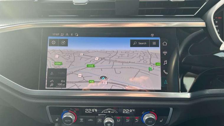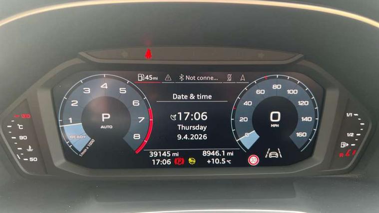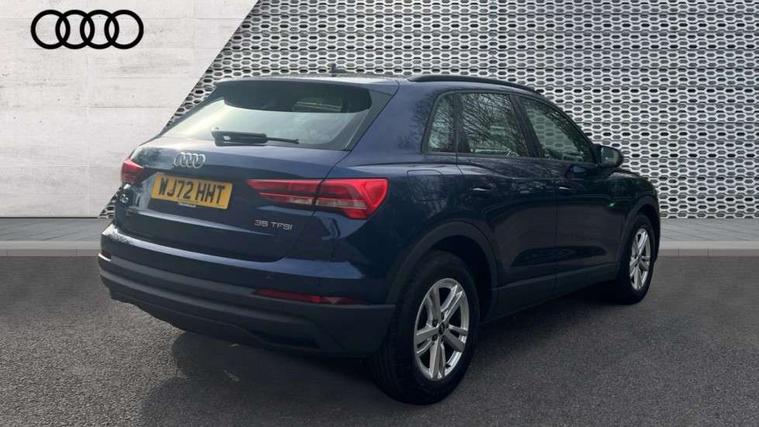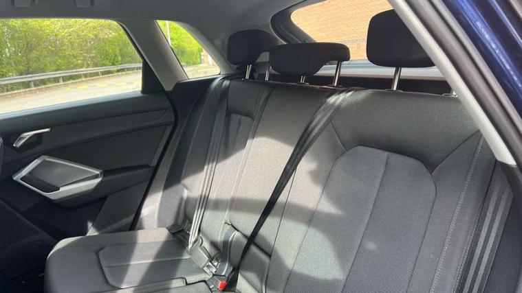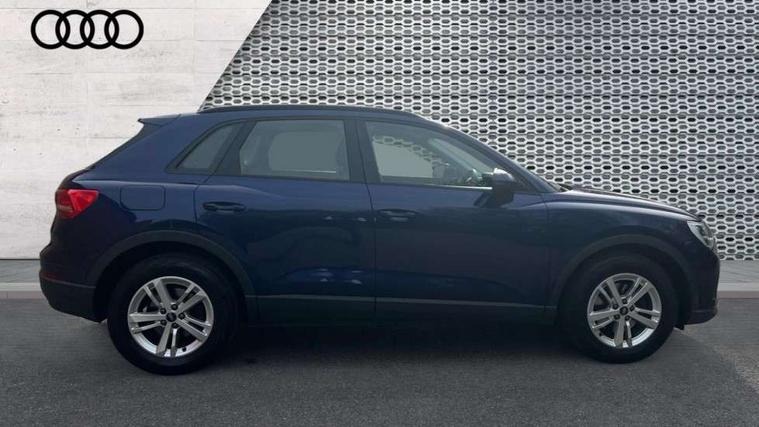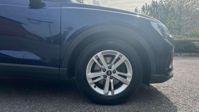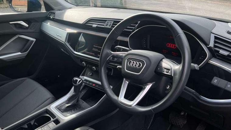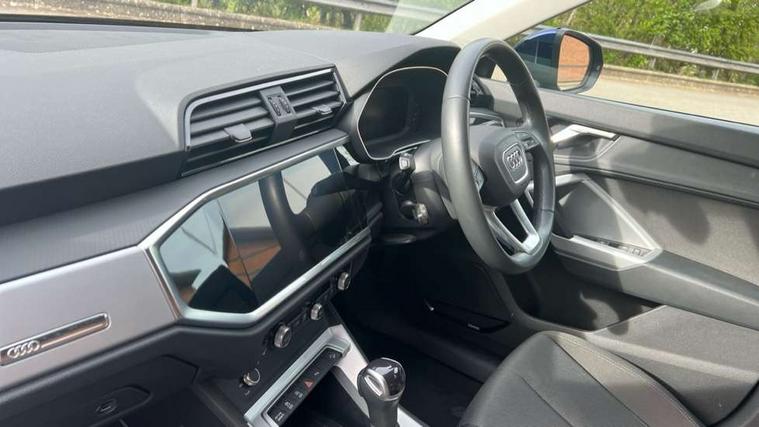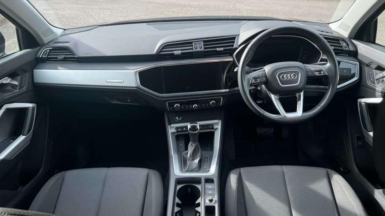 Amazon alexa Integration, Audi drive select, Audi lane departure warning, Audi Virtual Cockpit - 10.25" display, Bluetooth interface, Camera based traffic sign recognition, Legal emergency call, MMI Navigation Plus with high resolution 10.1 inch touchscreen colour display, Power operated tailgate, Progressive steering, Service interval indicator, Smartphone interface includes wireless Apple carplay/Android Auto, Start stop system with recuperation, Voice control system with natural language interaction, Standard suspension, 2 USB-C ports with charge and data functions, 6 passive loudspeakers, DAB digital radio module, Acoustic windscreen, Auto dimming frameless rear view mirror, Black roof rails, Body colour door mirrors, Diffuser in grained anthracite, Electrically folding, adjustable and heated door mirrors with integrated LED side indicators and kerb view function for passenger side, Exterior bumper with wheel arch trims and side sill trims in grained black matt, Front and rear electric windows, Grained radiator protective grille, Halogen rear lights, LED headlights with LED daytime running lights, Rain and light sensors, Rear side wing doors, Rear wiper, Third brake light, Variable front intermittent wipers, 12V socket in rear centre console, 3 seat bench in 2nd row, 3 spoke multi-function leather steering wheel, 40:20:40 folding with manual adjustment for 60:40 forwards/backwards position and backrest angle, Dual zone electronic climate control, Front and rear floor mats, Front and rear headrests, Front and rear roof module including reading lights, Front centre armrest, Glove compartment lighting, Height and reach adjustable steering wheel, ISOFIX child seat mounting for front passenger with airbag deactivation and outer rear seat including top tether attachment point for outer rear seats, Luggage compartment light, Lunar silver cloth headlining, Manual front seats with height adjustment, Single front passenger seat, Stainless steel luggage compartment sill finisher, Non smoking pack - Q3, 3x3 point rear seatbelts, 6 airbags - Driver, front passenger, curtain and side windows, Audi pre-sense front with pedestrain and cyclist recognition, Electrically operated child locks on rear doors, Electromechanical parking brake, Electronic stabilisation control including ABS, ASR and EDL, Front seatbelt reminder, Hill descent control, Hill hold assist, Pre sense basic, Seatbelt monitoring, Tyre pressure warning, Warning triangle and first aid kit, Anti theft alarm, Anti theft wheel bolts, Immobiliser, Remote central locking, Detail dashboard around MMI touch colour display in glass look, black with surround in aluminium look, Micrometallic silver inlay, 17" 5 twin spoke design alloy wheels,