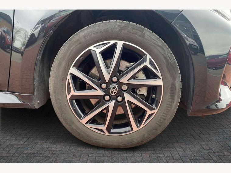 Adaptive cruise control, Adjustable speed limit with speed warning, Bluetooth connectivity, Colour binocular inspired displays with digital speedometer, E-call, Electric power steering, Hybrid energy display, Multi information display switches on steering wheel, Reversing camera, Smartphone integration with Apple CarPlay and Android auto, Tailgate, Voice recognition, Vehicle Stability Control (VSC), 4 speakers, 8" Multimedia display touch screen, USB connection, Acoustic windscreen glass, Auto windscreen wipers, Automatic headlights, Body coloured door mirrors, Electric adjustable heated door mirrors, Follow me home headlights, Front auto power windows with anti jam protection, Full LED rear lights, LED daytime running lights, LED front fog lights, LED front light guide, LED Headlights, LED High mounted stop lamp, LED Indicators, LED rear light guide, Manual headlight levelling, Painted chequered front grille, Rain sensor, Rear auto power windows with anti jam protection, Rear privacy glass, Rear side wing doors, Rear spoiler, Rear wiper, Shark fin antenna, Turning signal integrated indicators in door mirrors, Variable front intermittent wipers, 3 adjustable rear headrests, 3 seat bench in 2nd row, 3 spoke leather steering wheel, 60/40 split folding rear seat, Active headrests, Adjustable boot height, Auto air conditioning, Coat hooks in rear grab handles, Cup holders (2 front & door), Data Communication Module (DCM) connected services, Fabric upholstery, Front armrest, Glovebox, Grey roof lining, Height adjustable driver's seat, Isofix seat fixing, Leather gearshift, Pollen filter, Shopping bag hooks, Single front passenger seat, Tilt/telescopic steering column, 3 point seatbelts on all rear seats, ABS+EBD+Brake assist, Electronic parking brake, Emergency brake light system (EBS), Front passenger airbag on/off switch, Front seatbelt reminder, Hill start assist control (HAC), Rear child proof door locks, Rear seat belt reminder, Supplemental Restraint System (SRS) 8 airbags: Driver & passenger's airbags, dual side curtain airbags, side impact airbags, front centre airbag, Toyota Safety Sense 2, Precollison + Night time Pedestrian & Cyclist Detection, Lane Trace Assist, Auto High Beam, Intelligent ACC & Road Sign Assist, Tyre pressure warning system, 2x Master key, Alarm/immobiliser, Remote powered central double locking doors, Soft touch instrument panel, Space saver spare wheel,