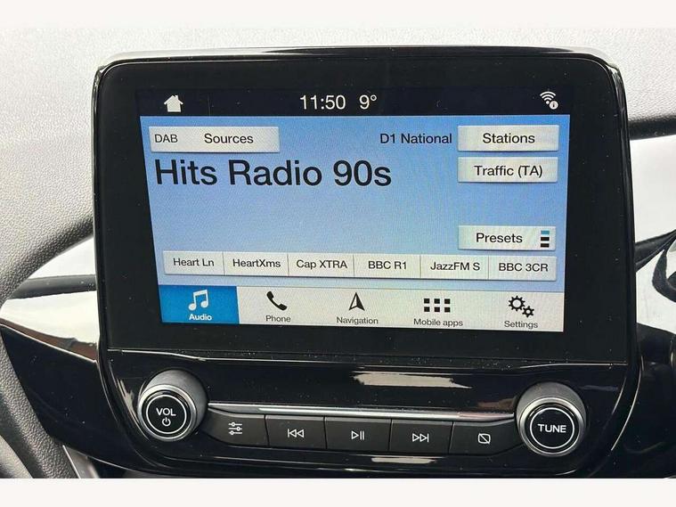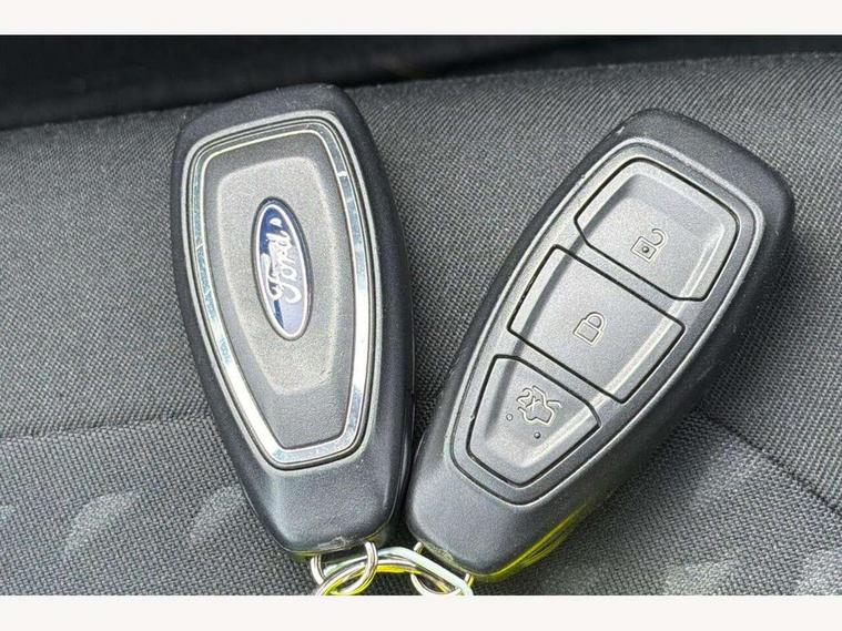 Bluetooth system, Driver alert system, Electric power steering, Ford SYNC 3 nav system, apple car play and android auto with voice control, Lane keep assist, SYNC Emergency Assistance, Traffic sign recognition, Trip computer, Auxiliary input socket, DAB with voice control, Steering wheel mounted controls, USB connection, Auto dimming rear view mirror, Auto high beam, Automatic headlights, Body colour bumpers, Body colour door handles, Body colour electric adjustable heated door mirrors, Body colour rear spoiler, Chrome beltline trim, Cornering front fog lights, Electric folding door mirrors with puddle lamps, Electric front windows/one touch facility, LED daytime running lights, LED rear lights, Privacy glass, Quickclear heated windscreen, Rear wiper, Tinted glass, Upper front grille chrome surround, 12V Accessory socket in centre console, 3 spoke leather steering wheel, 60/40 split folding rear seat, Adjustable head restraints, Air conditioning + Electric Auto Temperature Control (EATC), Ambient lighting, Boot carpet, Centre console with armrest, Chrome inner door handles, Cloth upholstery, Footwell illumination, Front and rear velour floor mats, Front map reading lights, Front seat and rear pockets, Illuminated cup holders, Illuminated glovebox, Leather gear knob, Leather trimmed handbrake handle, Load area light, Luxury woven headliner, Overhead console with sunglasses holder, Pollen filter, Rake/reach adjustable steering wheel, Rear centre head restraint, 3 point seatbelts on all rear seats, ABS+EBA, Curtain airbags, Driver and passenger airbags, Drivers knee airbag, ESP + traction control, Front passenger airbag deactivation, Front side airbags, Hill start assist, Seatbelt warning, Tyre pressure monitoring system, Immobiliser, MyKey system, Remote central locking, Thatcham Cat.1 alarm,
