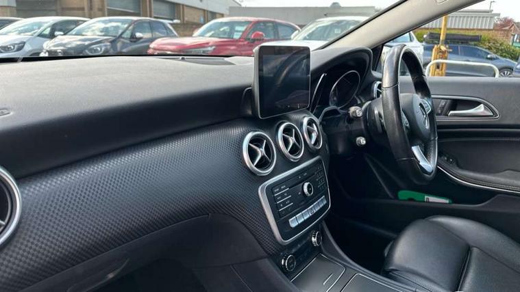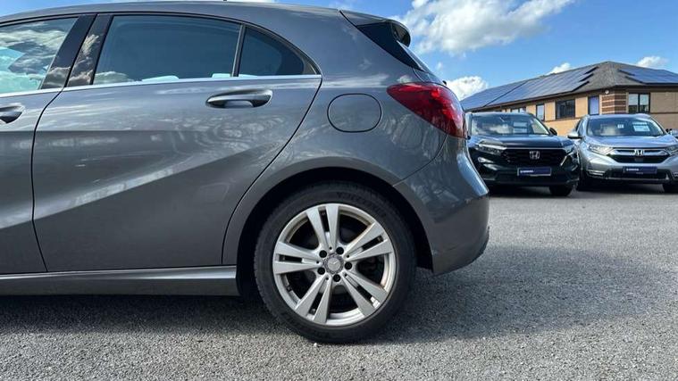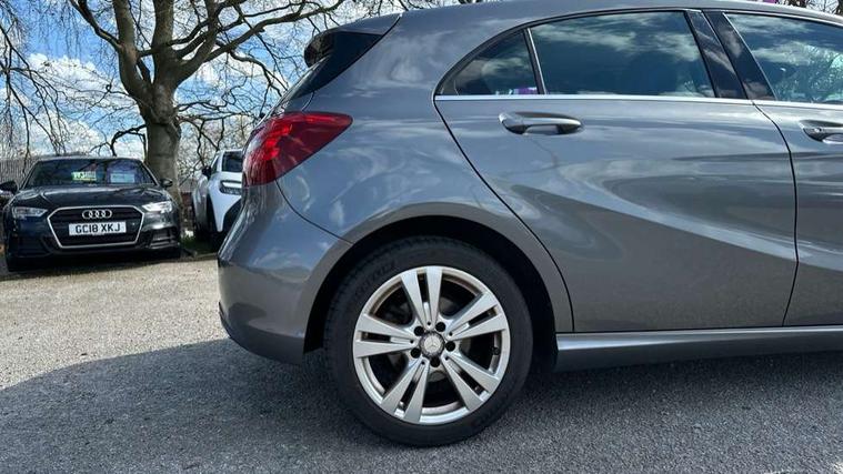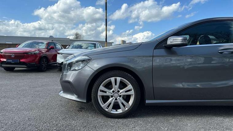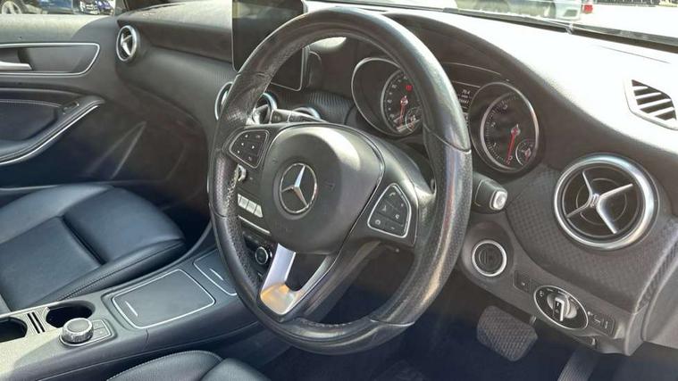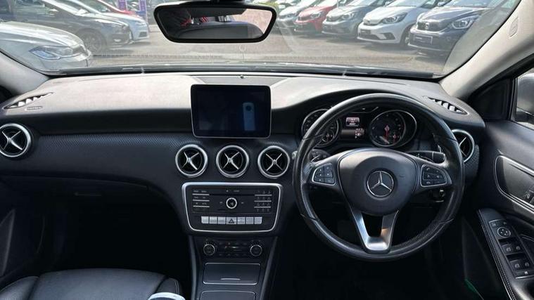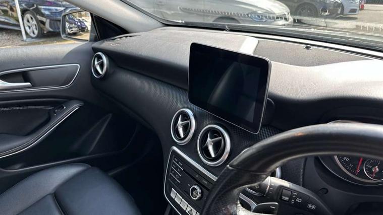 8" colour display screen, Attention assist, Bluetooth interface for hands free telephone, Bulb failure indicator, Collision prevention assist plus, DYNAMIC SELECT with a choice of driving modes (ECO, Comfort, Sport, Sport+ and Individual), External temperature gauge, Low fluid warning light, Reversing camera, Service indicator (ASSYST PLUS), Smartphone integration with Apple CarPlay, Speed sensitive parameter assisted steering, Trip computer, Comfort suspension, 6 speakers, Media interface, Mercedes Audio 20 radio/single CD + telephone keypad, SD card slot, USB port, Adaptive brake lights, Body colour bumpers, Body colour door handles, Body colour side skirt, Body coloured door mirrors, Chrome beltline trim, Daytime running lights, Diamond radiator grille with black pins with one louvre in silver + chrome insert, Electric adjustable heated door mirrors, Electric front windows, Electric rear windows, Headlamp assist, Heated rear window with timer, Rain sensor windscreen wipers, Rear wiper, Twin Trapezoidal tailpipes, 1/3 to 2/3 split folding rear seats, 12V socket, 3 spoke perforated leather multifunction sports steering wheel, Adjustable head restraints, Artico man-made leather upholstery, Auto Mercedes-Benz child seat recognition sensor, Dual zone automatic climate control, Footwell lights, Front and rear reading lights, Front centre armrest with storage compartment, Front head restraints, Gearshift paddles on steering wheel, Height adjustable front seats, Height/reach adjustable steering column, Illuminated door sills, Illuminated glovebox, Illuminated storage compartment, Isofix rear child seat preparation, Load securing rings in luggage compartment, Luggage compartment cover, Luggage net under rear parcel shelf, Parcel net in front passenger footwell, Rear head restraints, Storage compartment under load area floor, Sunvisors with illuminated vanity mirrors, Twin front cupholders, Seat comfort pack - A Class, Stowage Pack - A Class, 3 rear 3 point seatbelts, ABS with Brake Assist, Active bonnet, Adaptive brake system, Child proof door locks, Crash responsive emergency lighting, Drivers knee airbag, Dual stage driver/passenger airbags, Electronic parking brake, ESP with ASR, Front and rear seatbelt reminder, Front head airbags, Front passenger seat occupancy sensor, Front side airbags, Hill start assist, Tyre pressure monitoring system, Warning triangle and first aid kit, Window airbags, Alarm system/interior protection/immobiliser, Keyless ignition, Remote central locking, Checked pattern trim, Chrome air vent surrounds, 17" 5 twin spoke alloy wheels, Tirefit sealant with electric air pump,