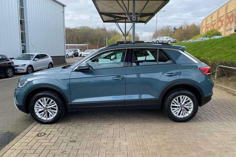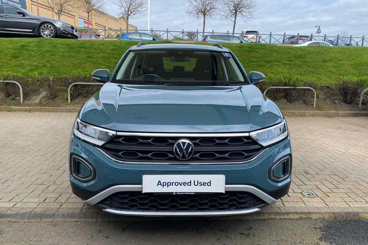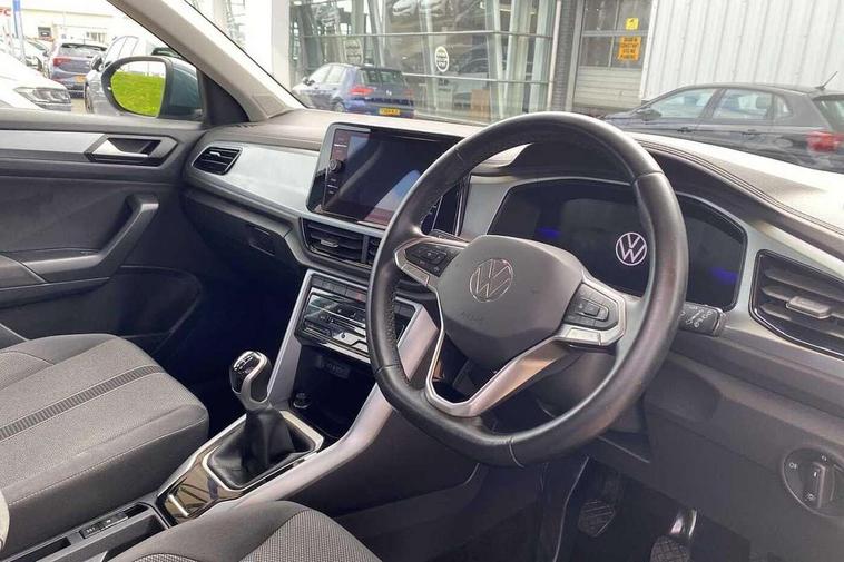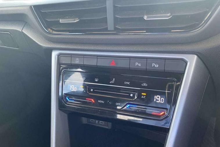 Bluetooth mobile phone interface, Driver alert system with fatigue detection, Driver tips and journey analysis, Emergency call service, Lane keeping system Lane Assist, Modified key software - reduce switch off time for key status change to Long no motion, Online services, Park assist including front and rear parking sensors, Power assisted speed sensitive steering, Service interval indicator, Tailgate/trunk lid release from outside, Think blue trainer driver tips and journey analysis, Warning sound and light for front seatbelts unfastened, Wireless app connect, Battery regeneration during braking, Front shock absorption, Rear shock absorption chassis with increased ride height, Start/stop function with battery regeneration, DAB Digital radio, Diversity antenna for FM reception, Front and rear 6 speakers, Music playback - MP3, WMA and AAC files, Premium USB cable in choice of either Apple or Android smartphone compatibility, SD card slot, Simultaneous pairing of 2 compatible mobile devices, Title and cover art display, We Connect and We Connect Plus functionality, 3rd brake light, Auto dimming interior rear view mirror, Automatic hazard lights activation under emergency braking, Automatic headlight control with LED separate daytime running lights with coming/leaving home function, Black roof rails, Body coloured bumpers and radiator grille with chrome trim and front fog lamps with chrome bezel, Body coloured exterior mirror housings and door handles, Extended roof spoiler, Exterior mirrors aspherical on driver side, convex on front passenger side, External USB type C socket and charging sockets, Front windscreen wiper with intermittent wipe and 4 position delay, Heated rear window, LED Headlights, LED rear combination lamps, LED rear number plate lights, LED tail lamp rear comination lamps, Power windows with comfort operation and circuit breaker, Rain sensor, Rear exhaust tailpipe, Rear fog light on one side and reversing lights on both sides, Rear side wing doors, Rear wash/wipe with intermittent wipe setting, Remote electrically foldable door mirrors, puddle lights and reverse activated passenger's door mirror, 12V power socket in centre console, 3 rear head restraints, 3 seat bench in 2nd row, 4 load lashing points in luggage compartment, Air care climatronic air conditoning system with active combination filter and 2-zone temperature control, Ambient lighting with mirror logo projection, Cloth upholstery, Door and side trim panel in cloth, Drawer under drivers seat, Driver/front passenger seat height adjustment, Front centre armrest, Front comfort sports seats, Front cupholders x 2, Front reading light, Instrument lighting, white adjustable panel illumination, Interior light delay, Isofix child seat preparation, Leather gearshift handle, Load-through provision with cup holder when folded down ('Unsplit rear seat bench, split folding backrest, with centre armrest), Luggage compartment lighting, Lumbar support for driver's and front passengers seat, Non-folding front passenger seat backrest, Single front passenger seat, Storage compartment in left and right luggage area, Storage compartment in rear doors, Storage compartments in driver and front passenger doors, Sunvisors with illuminated vanity mirrors, Variable boot floor, height adjustable and removable, Driver assistance pack without proactive passenger protection - T-Roc, 3 point height adj front seatbelts + pretensioners, 3 point seatbelts in outer rear with ECE label, ABS, Child locks on rear doors, Driver and front passenger airbag with front passenger airbag deactivation, Driver and front passenger safety-optimised head restraints, Drivers seatbelt reminder, Electronic parking brake, Electronic Stability Control (ESC) inc EDL (Electronic Differential Lock) and ASR (Traction Control), Front and rear passengers curtain airbag system including front side airbags, Front assist with city emergency braking and pedestrian monitoring, Front disc brakes, Front seat side impact airbags, Hill start assist, Predictive pedestrian protection, Rear disc brakes, Single tone horn, Tyre pressure loss indicator, Volkswagen roadside assistance, Alarm with interior protection, Anti-theft alarm system with interior monitoring, backup horn, and towing protection, Remote central locking with SAFELOCK, radio remote control with 2 remote control folding keys, Pewter matt decorative inserts for intrument panel, centre console and door panels at the front, Trims for alloy wheels,