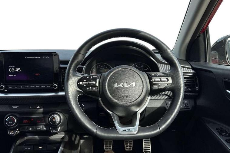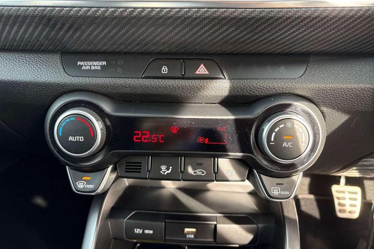 4.2" supervision colour cluster display, 8" touchscreen navigation, Apple car play/Android Auto with voice control, Blind spot collision warning, Cruise control + speed limiter, Drive mode selector, Electric power steering, Emergency call service, Emergency stop signalling system, External temperature display, Forward Collision-Avoidance Assist (FCA) - City/Pedestrian/Cyclist, Front parking sensors, Intelligent speed limit warning, Lane keeping assist system (LKAS), Driver attention warning (DAW) and High beam assist (HBA), Rear parking sensor, Reversing camera system, Trip computer, Intelligent Stop and Go, Audio system with 6 speakers, Bluetooth with music streaming, Front USB port, Steering wheel mounted controls, All round electric windows with drivers auto up/down function, Auto dimming rear view mirror, Automatic defog system, Automatic headlights control, Black side sill, door garnish and wheel arch trims, Black/body colour bumpers, Body coloured exterior door handles, Chrome side window trim, Electrically adjustable/heated/folding door mirrors with LED indicators, Front and rear silver skid plates, Gloss black door mirrors with matt black lower housing, GT-Line body kit, Headlight levelling device, Heated rear window, High gloss black and satin radiator grille, LED Bi-function projection headlights with static bending, LED daytime running lights, LED front fog lights, LED position light, LED rear combination lights, Privacy glass - Rear windows and tailgate, Rain sensing front wipers, Rear fog lights, Rear side wing doors, Rear wash/wipe, Roof coloured rear spoiler with high mounted braking light, Roof rails, Shark fin antenna, Solar windshield glass, Speed variable front aeroblade wipers, Tinted glass, Welcome and follow-me home light functionality, Windscreen Washer Level Warning, 12V power point front, 3 seat bench in 2nd row, 60/40 split folding rear seat, Air filter, All-round height adjustable headrests, Aluminium pedals, Automatic air conditioning, Centre armrest storage box, Centre console with cupholders, D-Cut perforated leather trimmed steering wheel, Dash illumination dimmer switch, Driver's seat height adjuster, Front and centre cabin lights, Front and rear door map pockets with bottle holder, Gear shift indicator, Glovebox illumination, GT-Line cloth/faux leather upholstery, Heated front seats, Heated steering wheel, ISOFIX Child seat top tethers and anchor fixings outer rear seats, Leather trimmed gearshift, Luggage area light, Luggage area parcel shelf, Luggage net, Luggage net with hooks, Overhead console lamp, Overhead console with sunglasses cases, Passenger front seatback pockets, Passenger seat height adjuster, Rear USB charging port, Satin chrome interior door handles, Single front passenger seat, Sunvisors with vanity mirror illumination (Driver and front passenger), Tilt/telescopic adjustable steering wheel, ABS with Electronic Brakeforce Distribution (EBD) and Brake Assist System (BAS), All round 3-point seatbelts, Electronic stability control (ESC) and vehicle stability management (VSM), Front passenger airbag cut-off switch, Front seatbelt pretensioners + load limiters, Height adjustable front seatbelts, Hill start assist control (HAC), Impact sensing auto door unlocking, Manual child lock in rear doors, Rear seat Occupancy alert, Seatbelt reminder warning, Twin curtain airbags, Twin front airbags, Twin front side airbags, Tyre pressure monitoring system, Alarm system, Door deadlocks, Engine immobiliser, Locking wheel nuts, Smart key with engine start/stop button, Speed sensitive auto door locking, Visible vehicle identification number, High gloss black centre fascia, 17" GT-Line alloy wheels, Tyre mobility kit,