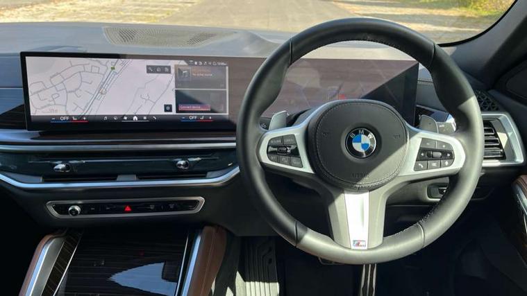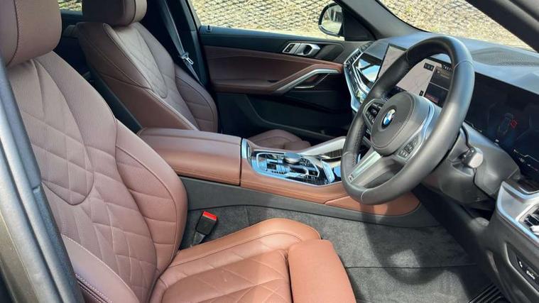 Active guard plus, Attentiveness assist, Automatic tailgate two part with top hinged section open and manual bottom hinged section, BMW live cockpit + with curved 12.3 instrument cluster/14.9 central display, nav/Tuner with diversity reception, RDS/4GLTE/remote software upgrade, BMW Recovery system, BMW Teleservices, Brake pad wear indicator in front and rear, Cruise control with brake assist, Driving experience switch, eCall emergency call system, Enhanced bluetooth with wireless charging, iDrive controller with shortcut buttons, Lights on warning, Oil sensor for level and grade, On board computer inc. average speed, fuel consumption, liquid crystal Info display, journey computer, outside temperature display, personal profile, Personal e-SIM, Service interval indicator, Speed limit info display, Speed limiter, Wifi hotspot preparation, 8 speed automatic with steptronic transmission including automatic hold function and gearshift paddles on the steering wheel, Diesel particulate filter, Double wishbone front axle, Drive performance control with ECO PRO comfort + sport mode, Safety battery terminal clamp, Variable vane geometry, DAB Tuner enables digital radio reception, Favourite buttons, Adaptive LED Headlights, Door locking - after driving off to secure vehicle, Dynamic brake lights with LED technology, Electrically adjustable and heated aspheric folding side mirrors with auto dimming, electric fold in function, automatic parking function, Front and rear electric windows with open and close fingertip control, anti trap facility and comfort closing, Heated windscreen washer nozzles, High beam assistant, Integrated turn indicators (door), LED daytime running lights, LED technology rear tail lights, brake lights and turn indicators, LED technology reflector left and right integrated in tailgate, LED third brake light in rear spoiler, M high gloss shadowline, Mirror base in black matt, Rain sensor with automatic headlight activation and windscreen wiper control, Rear side wing doors, Trailer stabilisation logic, Welcome light setting when approaching the vehicle, 12V - Power sockets with 2x centre console and 1x luggage compartment, 3 seat bench in 2nd row, 40:20:40 split folding rear seats, BMW inscription in front and rear door entry sills with illuminated, Centre and rear interior light, Driver and front passenger sunvisors with illuminated vanity mirrors and ticket holder, Electrical steering column with adjustable height and length with activation and control on the steering column, Foldable rear centre armrest with 2 cupholders and storage compartment, Front and rear side armrest integrated into door trim, Front footwell lights, Front reading lights, Grab handles in 1st and 2nd row outer seats, Headrests for all seats, Light inside glove compartment, Luggage compartment lighting, Luggage net, M leather steering wheel, Make-up mirror lights, Multifunction controls for leather steering wheel, Multifunctional hooks, Single front passenger seat, Velour floormats, Ambient light interior package - X6, M Aerodynamic pack - X6, Parking assistant pack - X6, 3 rear seatbelts, Active protection, Airbags - driver/front passenger, rear and side, first and second row seats head airbags, front passenger seat airbag deactivation + knee airbag, Anti-lock braking system (ABS), Automatic Stability Control (ASC), Brake drying, Brake energy regeneration, Brake fade compensation, Braking pre-tensioning, Cornering brake control (CBC), Crash sensor inclu activation of airbags, interior light, safety battery terminal clamp, hazard warn flasher, unlock doors, deactivation of fuel pump, DSC - Dynamic Stability Control, Dynamic brake control, Dynamic Traction Control - DTC, Electromechanical parking brake with automatic drive away release and auto hold function, Electronic brake force distribution, Front and rear brake discs with interior ventilation, Front head restraints with anti-whiplash, Hill descent control, Hill start assistant, Integrated braking system, M Sport blue painted brake calipers with 'M' designation, Mechanical child proof lock on rear doors, PC iBrake (Post crash approach control warning with light braking function), Seat occupancy detection for driver and passenger side, Side impact protection, Two tone horn, Tyre pressure monitoring system, Variable torque distribution, Warning triangle and first aid kit, Alarm system, Automatic locking when moving away from the vehicle, Automatic unlocking when approaching the vehicle, BMW Digital key, Comfort access system, Contractless opening/closing tailgate, Key card with NFC technology, Keyless access to the vehicle, Locking wheel bolts, Locking/unlocking and starting the vehicle using compatiable smartphone,