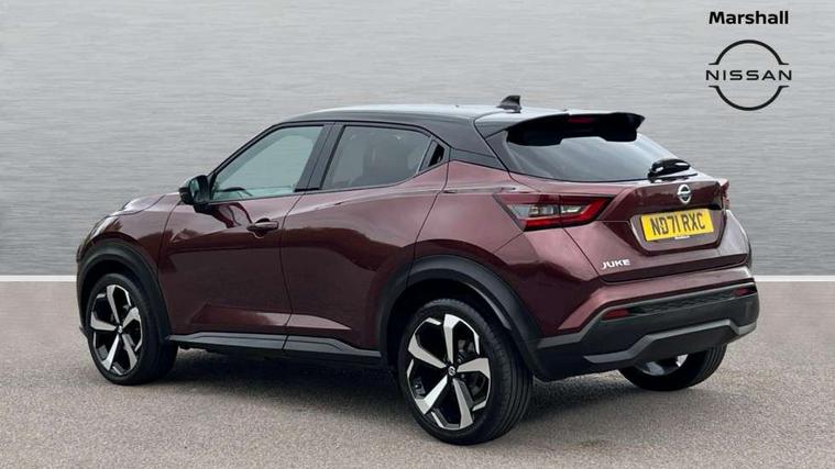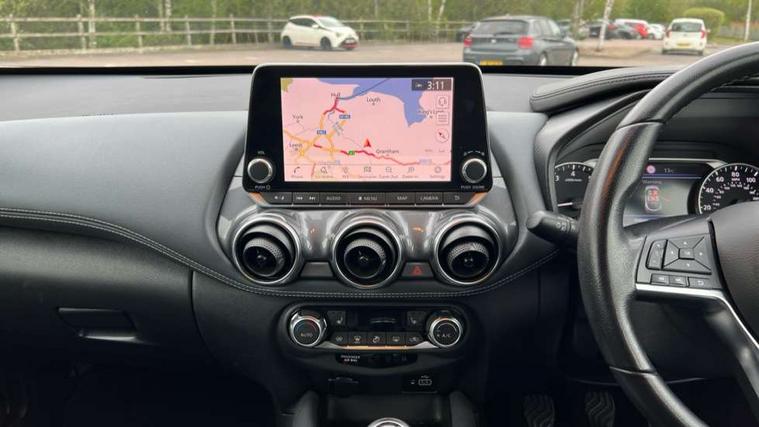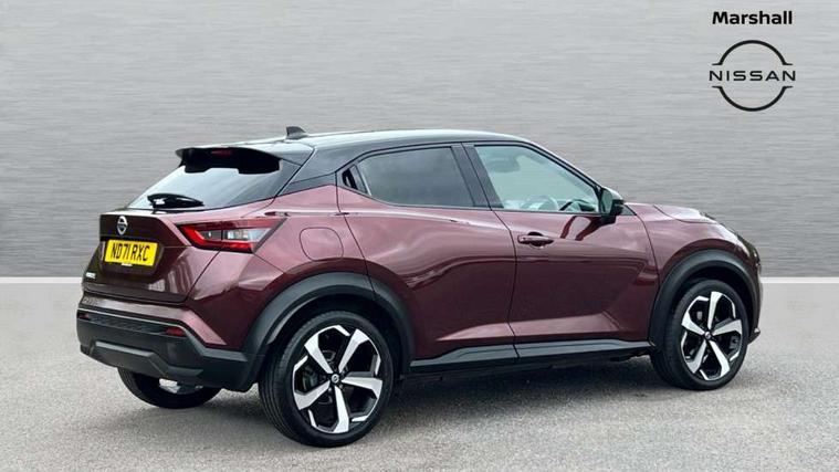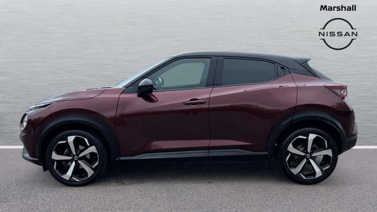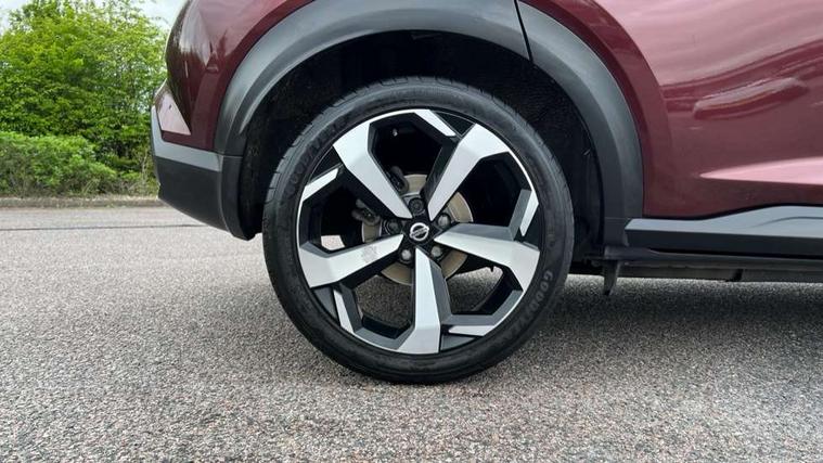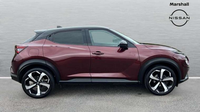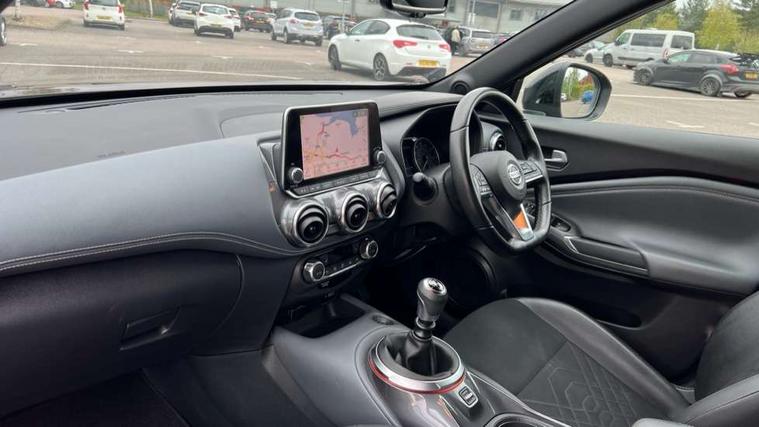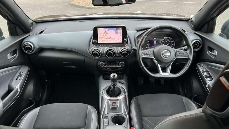 7" full colour TFT screen combimeter, Apple CarPlay and Google Android auto, Drive modes select (Eco, normal and sport), eCall emergency call system, Emergency and breakdown call, Front parking sensor, Idle start/stop system, Intelligent lane intervention, Lane departure warning system, Nissan connect 8" touch screen entertainment system, Nissan connect nav with TomTom traffic, Nissan connect services and Wifi connection, Outside temperature sensor, Power Steering, Rear parking sensor, Traffic sign recognition, Trip computer, Voice recognition, Gasoline particulate filter, Bluetooth system, USB, Aux-in and 12V socket, Bose personal plus audio system with 8 speakers(4 speakers and 2 headrest speaker for driver and passenger seats), Bose personal sound stage control, DAB Digital radio, Rear console USB port, Auto dimming interior rear view mirror, Auto headlights, Automatic hazard signal with emergency stop signal, Body colour bumpers, Body colour door handles, Electrically adjustable door mirrors with integrated indicators, Follow me home headlights, Front and rear electric window with one touch driver window, Heated and auto folding door mirrors, High beam assist, LED daytime running lights, LED front fog lights, LED headlamps, LED rear fog lamp, LED rear lamps, Rain sensor windscreen wipers, Rear privacy glass, Rear side wing doors, Rear wiper, Thermaclear heated windscreen, Three blink turn signal, 3 height adjustable rear headrests, 3 seat bench in 2nd row, 60/40 split folding rear seat, Automatic climate control, Card holder on driver sunvisor, Cloth/Synthetic leather upholstery, Door ambient lighting, Driver and passenger sliding and reclining seats, Driver seat back pocket, Driver side rear coat hanger, Driver/passenger sunvisors and vanity mirrors, Front and rear cabin lights, Front armrest, Front door pockets with bottle holders, Front head restraints, Front passenger isofix child seat anchorage point, Front/rear passenger grab handles, Gear console ambient circle lighting, Grey synthetic leather kneepad, Heated front seats, Height adjustable driver's seat, Height adjustable passenger seat, Internal chrome door handles, Leather gearshift knob, Leather steering wheel, Luggage board, Luggage space lighting, Monoform sporty seats, Multifunction steering wheel, Passenger seat back pocket, Rear door bottle holders, Single front passenger seat, Telescopic steering wheel adjustment, Two cupholders in front centre console, Two rear isofix child seat anchorage points with top tether, Welcome light and console tray ambient lighting, Advanced safety shield pack - Juke, ABS with EBD and brake assist, Active ride control, Active Trace Control, Driver and passenger airbags, Driver and passenger side airbags, Electric handbrake with auto hold function, Electronic Stability Programme (ESP), Front and rear curtain airbags, Height adjustable seatbelts, Hill start assist, Intelligent emergency braking with pedestrian and cyclist recognition, Rear door child safety locks, Seatbelt reminder for driver/front passenger and rear seats, Single tone horn, Three 3 point rear seatbelts, Traction control, Tyre pressure monitoring system, VDC Dynamic Vehicle Control, Ventilated rear brake discs, Alarm, Immobiliser, Intelligent Key with push button starter, Remote central locking,