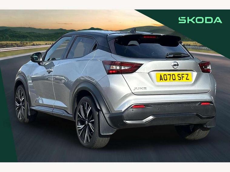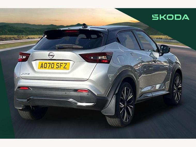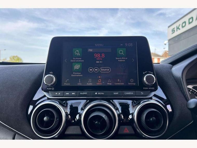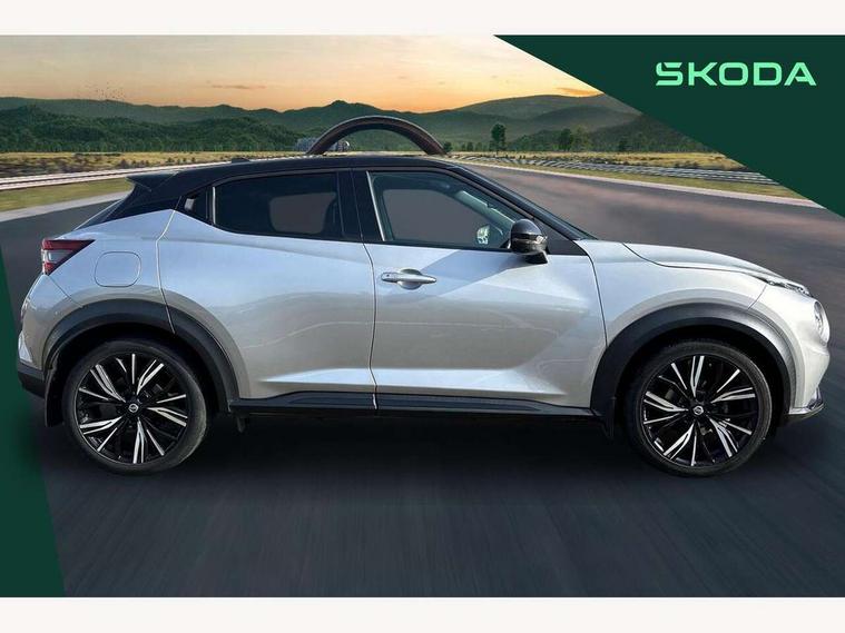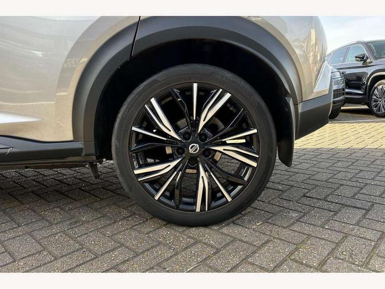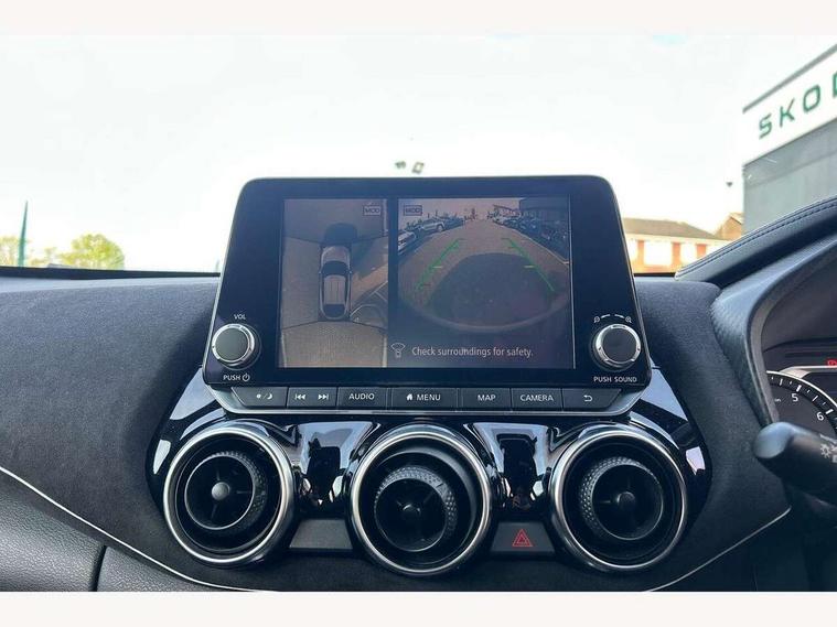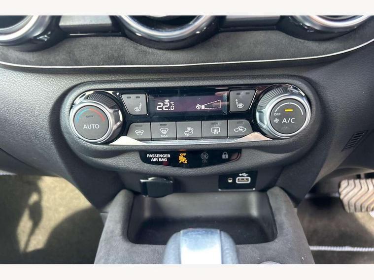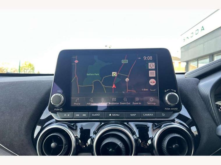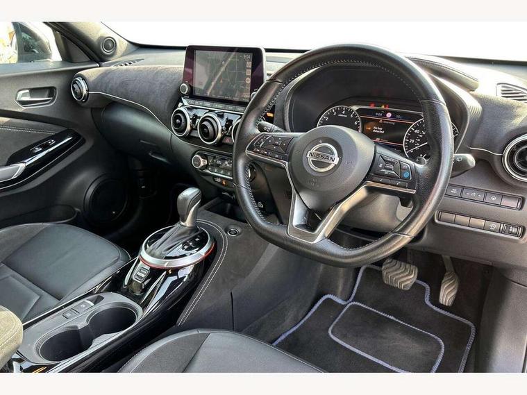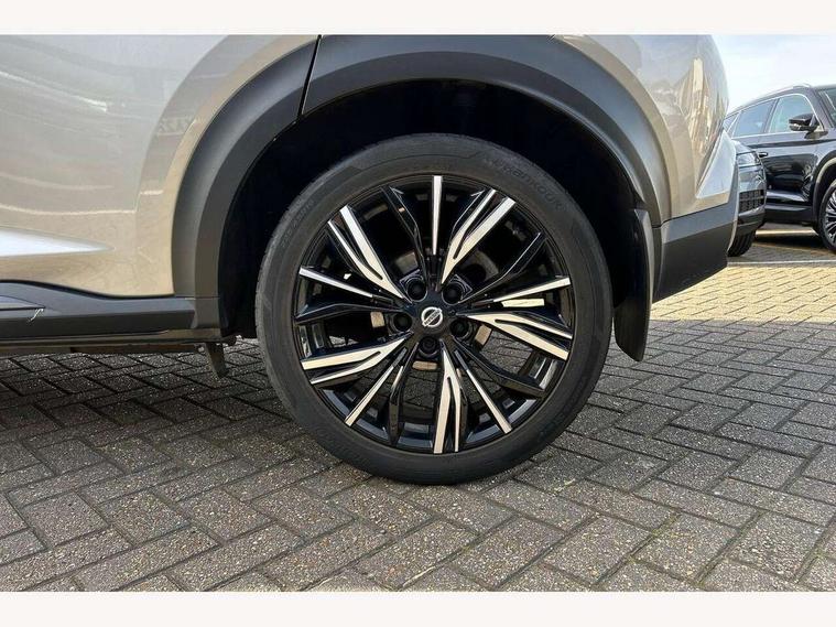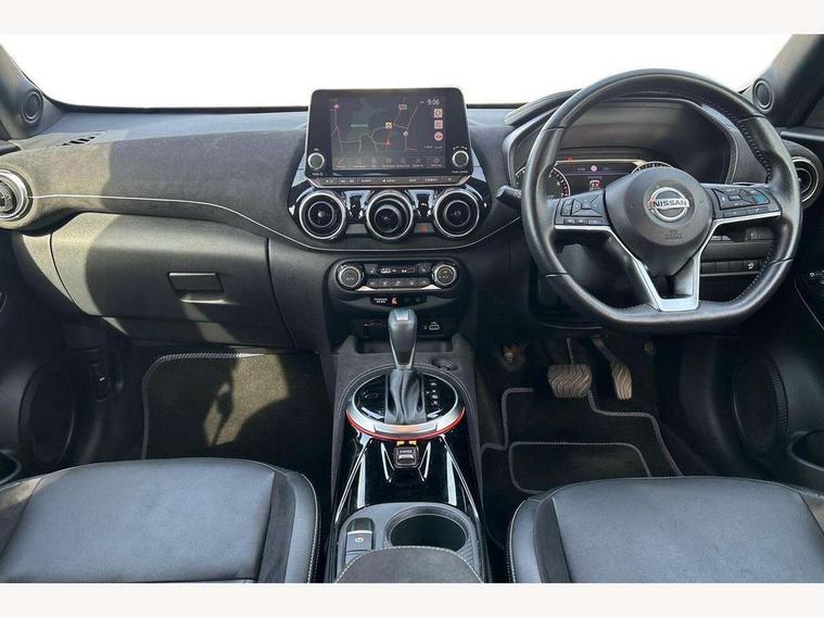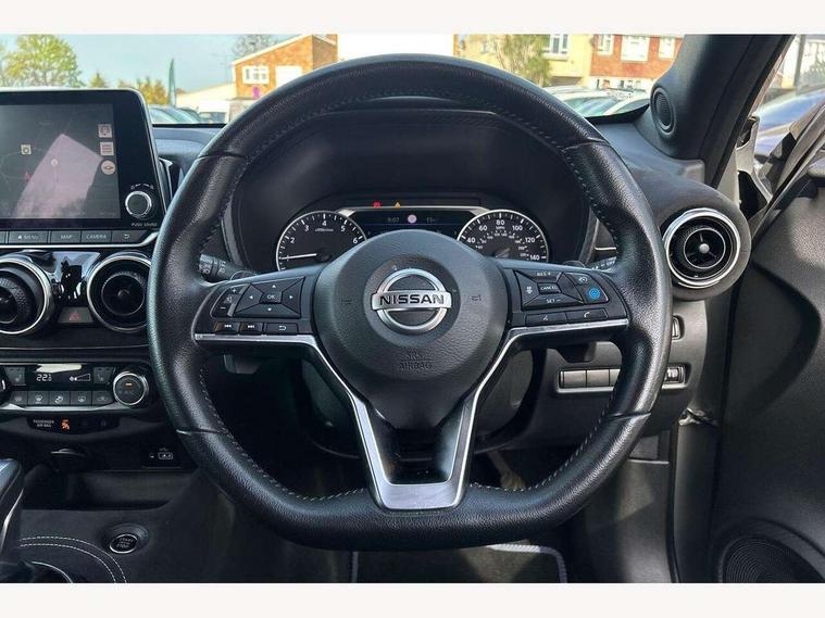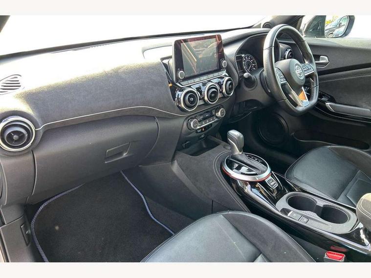 7" full colour TFT screen combimeter, 8" infotainment colour display with touch screen, Apple CarPlay and Google Android auto, Drive modes select (Eco, normal and sport), Emergency and breakdown call, Front parking sensor, Idle start/stop system, Intelligent lane intervention, Lane departure warning system, Nissan connect nav with TomTom traffic, Nissan connect services and Wifi connection, Outside temperature sensor, Power Steering, Rear parking sensor, Traffic sign recognition, Trip computer, Gasoline particulate filter, Bluetooth system, USB, Aux-in and 12V socket, Bose personal plus audio system with 8 speakers(4 speakers and 2 headrest speaker for driver and passenger seats), Bose personal sound stage control, DAB Digital radio, Front lower bumper painted in silver finisher, Rear console USB port, Auto dimming interior rear view mirror, Automatic hazard signal with emergency stop signal, Body colour bumpers, Body colour door handles, Electrically adjustable door mirrors with integrated indicators, Follow me home headlights, Front and rear electric window with one touch driver and passenger window, Heated and auto folding door mirrors, High beam assist, LED daytime running lights, LED front fog lights, LED headlamps, LED rear fog lamp, LED rear lamps, Rain sensor windscreen wipers, Rear privacy glass, Rear spoiler, Rear wiper, Thermaclear heated windscreen, Three blink turn signal, 3 height adjustable rear headrests, 60/40 split folding rear seat, Automatic climate control, Card holder on driver sunvisor, Door ambient lighting, Driver and passenger sliding and reclining seats, Driver seat back pocket, Driver side rear coat hanger, Driver/passenger sunvisors and illuminated vanity mirrors, Front and rear cabin lighting, Front armrest, Front door pockets with bottle holders, Front head restraints, Front passenger isofix child seat anchorage point, Front/rear passenger grab handles, Gear console ambient circle lighting, Grey synthetic leather kneepad, Heated front seats, Height adjustable driver's seat, Height adjustable passenger seat, Internal chrome door handles, Leather gearshift knob, Leather steering wheel, Luggage board, Luggage space lighting, Monoform sporty seats, Multifunction steering wheel, Passenger seat back pocket, Rear door bottle holders, Steering wheel mounted gearshift paddles, Telescopic steering wheel adjustment, Two cupholders in front centre console, Two rear isofix child seat anchorage points with top tether, Voice recognition switch on steering wheel, Welcome light and console tray ambient lighting, ProPilot pack - Juke, ABS with EBD and brake assist, Active ride control, Active Trace Control, Driver and passenger airbags, Driver and passenger side airbags, Electric handbrake with auto hold function, Electronic Stability Programme (ESP), Front and rear curtain airbags, Height adjustable seatbelts, Hill start assist, Intelligent emergency braking with pedestrian and cyclist recognition, Seatbelt reminder for driver/front passenger and rear seats, Single tone horn, Three 3 point rear seatbelts, Traction control, Tyre pressure monitoring system, VDC Dynamic Vehicle Control, Ventilated rear brake discs, Alarm, Immobiliser, Intelligent Key with push button starter, Remote central locking, 19" Akari alloy wheels,