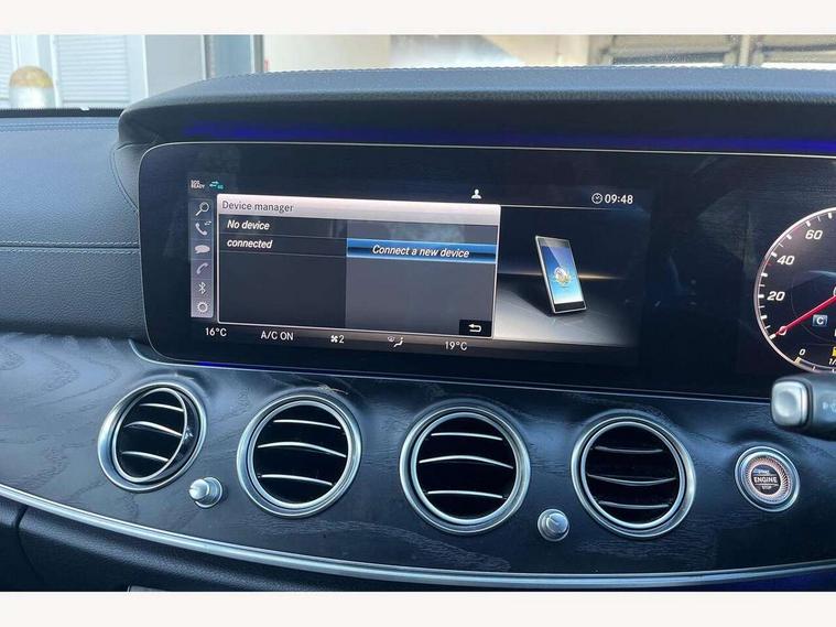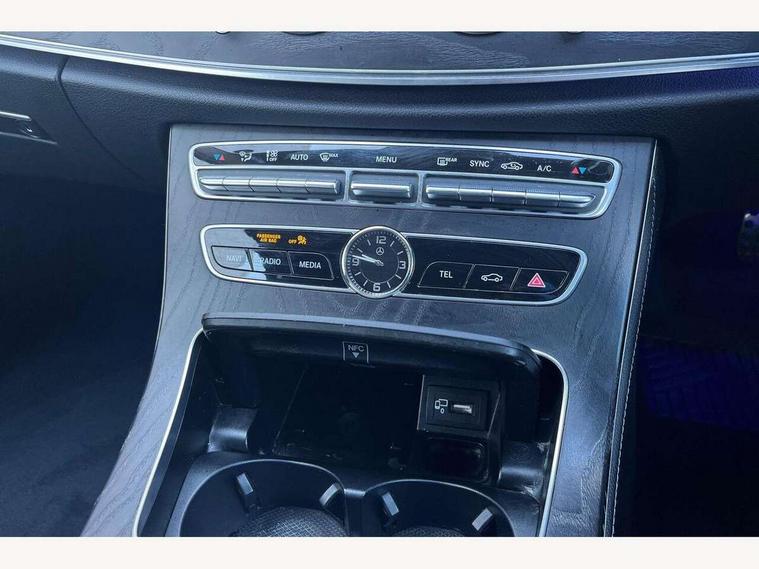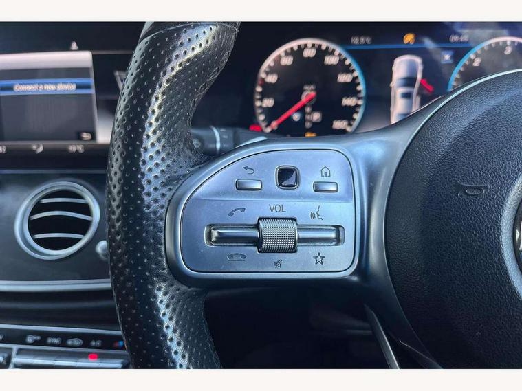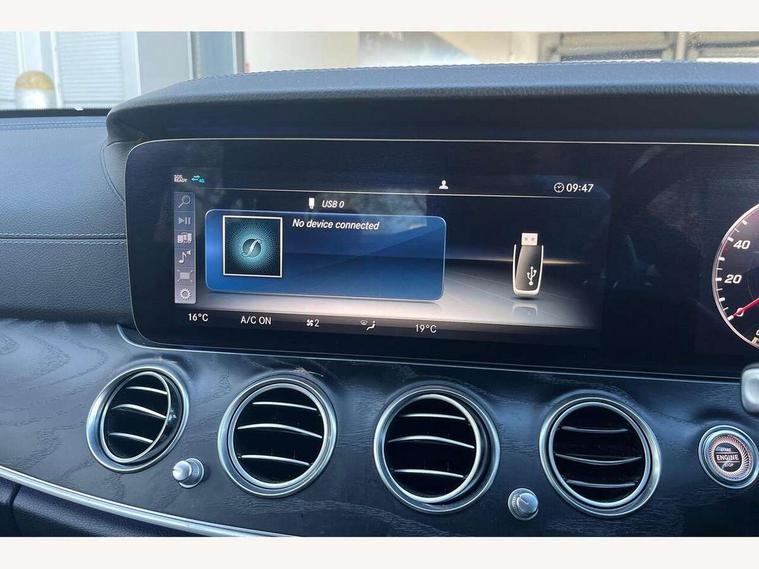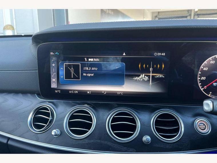 Active parking assist and 360 camera, Analogue clock, Attention assist, Blind spot assist, Boot release from drivers seat, Brake wear warning light, Cockpit display 12.3" widescreen digital instrument cluster, COMAND online HDD navigation with media interface with 12.3 inch colour display, WLAN/Wi-Fi hotspot, Car-to-X Communication, Cruise control with variable speed limiter, Direct steer speed sensitive steering, DYNAMIC SELECT with a choice of driving modes (ECO, Comfort, Sport, Sport+ and Individual), Mercedes connect me, Multi function trip computer, Outside temperature display, Remote boot release, Service indicator (ASSYST), Smartphone integration via Android Auto/Apple CarPlay, Media Interface, USB and Bluetooth interface, Status display for rear seat belts in instrument cluster, Stop/start system, Touchpad with control wheel, Traffic sign assist, Wireless charging, 25 litre AdBlue tank, 66 litre fuel tank, Agility control sports suspension with selective damping system and lowered by 15mm, Diesel particulate filter, Incorrect fuelling protection, 2 USB ports in centre console, 2 USB ports in the rear, Aerial integrated in rear window, Audio 20 with USB, control wheel and Media Interface with Bluetooth interface and hands-free function, DAB Digital radio, Adaptive brake lights, AMG bodystyling front and rear aprons and side skirts in polished aluminium, Body colour bumpers, Body colour door handles, Body colour door mirrors, Electric windows with one touch opening/closing and obstruction sensors, Electrically adjustable and heated door mirrors, Front LED fog lights with cornering function, LED rear lights, MULTIBEAM Intelligent Light System with Adaptive Highbeam Assist, Polished aluminium waistline, Pre-installation for roof rail systems, Privacy glass (rear side windows and rear screen), Radiator grille with integral star and 2 louvres in matt iridium silver with chrome trim, Rain sensor windscreen wipers, Rear wiper, Top surround of side windows in polished aluminium, Visible twin exhaust tailpipe in bumper, 3 spoke flat bottom AMG steering wheel with trimmed in black nappa leather, 40:20:40 split folding rear bench seat, AMG sports pedals with brushed stainless steel surfaces and black rubber studs, Auto dual-zone climate control system, Auto Mercedes-Benz child seat recognition sensor, Black roof lining, Chrome door pins, Courtesy lights in rear grab handles with reading light functionality, Electric height/reach adjustable steering column, Four way partially front electric seat adjustment, Front and rear door pockets, Front centre armrest with storage compartment, Front door sills with illuminated Mercedes lettering, Glasses compartment in overhead control panel, Head restraints for driver and front passenger (four-way adjustability)and in rear (two-way), Heated front seats, Interior lighting - 64 colour Ambient lighting, Interior rear light/integral reading lights, ISOFIX child seat attachment points two outer rear seats, Leather upholstery, Lockable/illuminated air conditioned glovebox, Steering column electrically adjustable for height and reach, Steering wheel multifunction with gearshift paddles, Steering wheel touch control buttons for audio and onboard settings, Storage compartment with 12V socket in centre console, Sunvisors with illuminated vanity mirrors, Velour floor mats, Velour floor mats with AMG lettering, Memory pack - E Class, Mirror pack - E Class, Parking package including 360 degree camera - E Class, Seat comfort pack - E Class, Stowage pack - E Class, 3x3 point rear seatbelts, Active bonnet, Active brake assist, Adaptive brake system with HOLD function and brake drying in the wet, Anti-lock braking system (ABS), Black seat belts, Childproof locks manually operated for rear doors and electrically operated for rear power windows, Driver and passenger side/thorax airbags, Driver/front passenger airbag, Drivers knee airbag, Electronic parking brake, Electronic Stability Programme, Hill hold assist, Hill start assist, Perforated front brake discs with "Mercedes-Benz" lettering, Pre-Safe anticipatory safety system, Seat occupancy sensor, Seatbelt warning, Tyre pressure monitoring system, Warning triangle and first aid kit, Window airbags, Alarm system/interior protection/immobiliser, Central locking with interior switch, automatic locking and crash sensor with emergency opening function, Chrome surround electric key, Keyless Start, Black open pore ash wood dashboard and door trim + Centre console in black open pored ash wood, 19" AMG 10 spoke light alloy wheels painted in titanium grey - RRD, Run flat tyres,