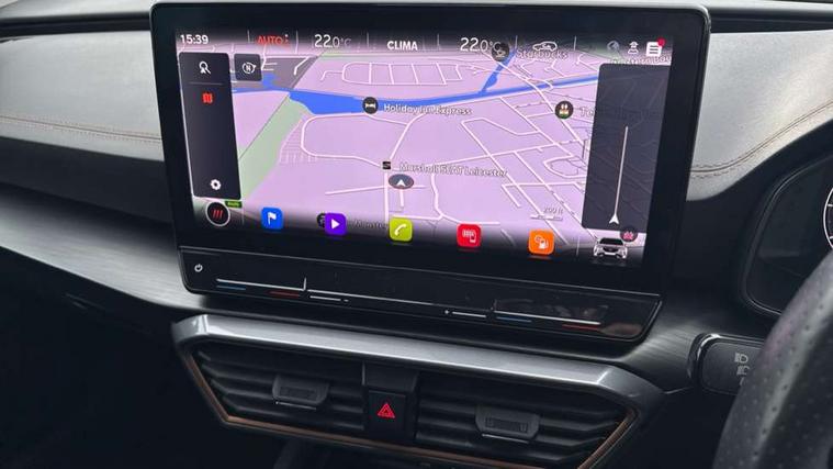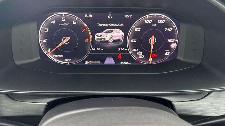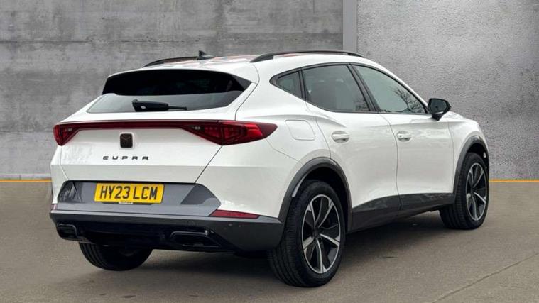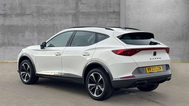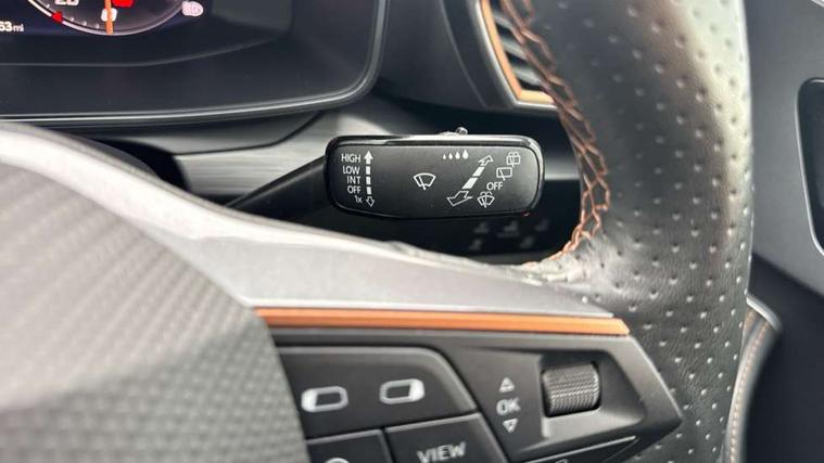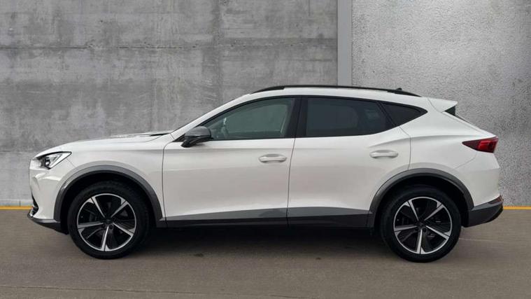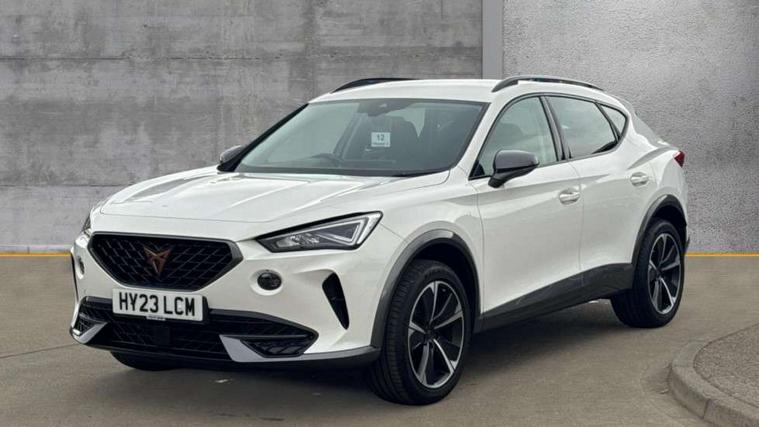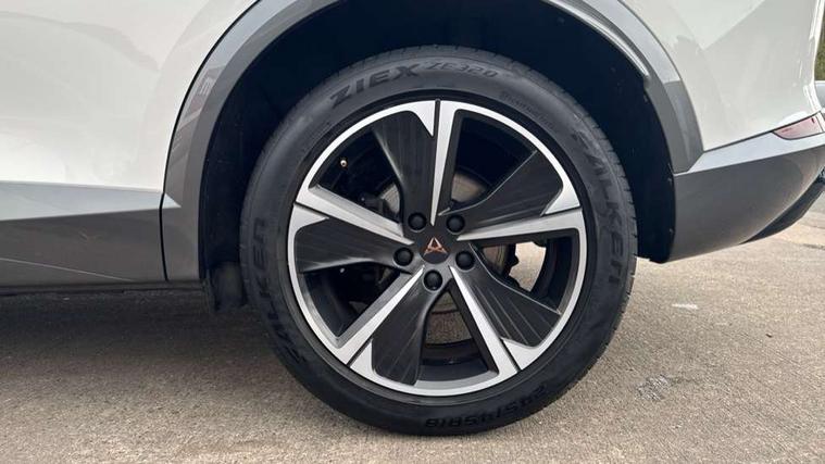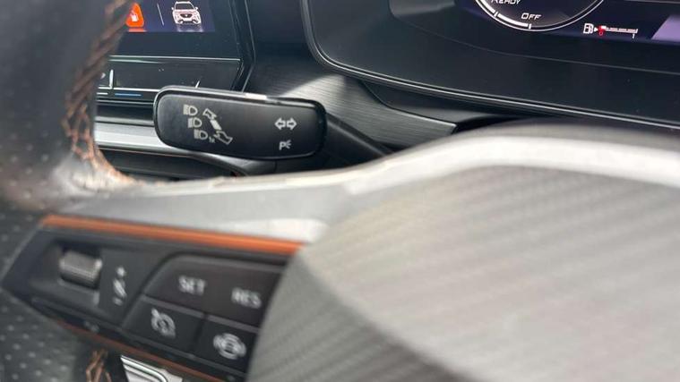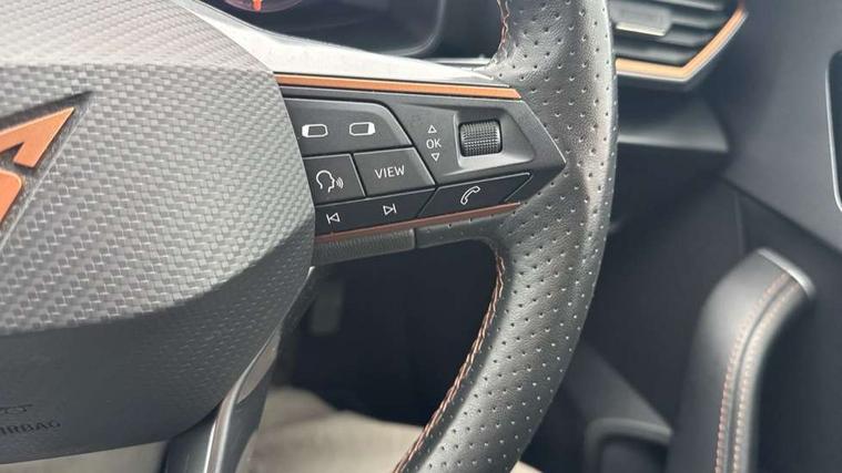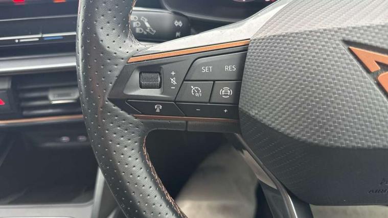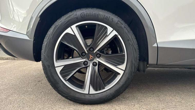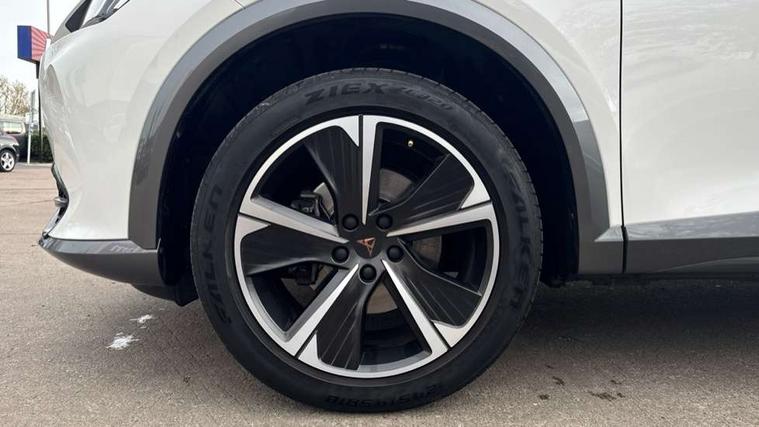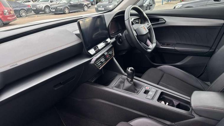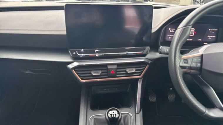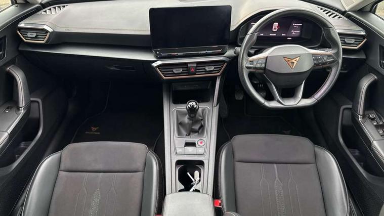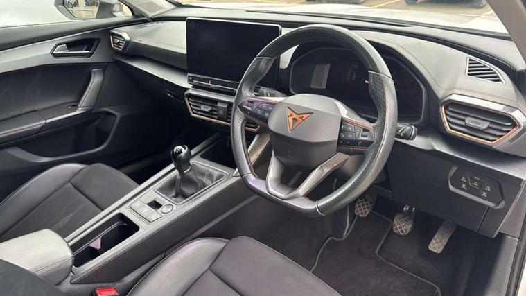 Digital cockpit and configurable dashboard, Driver alert system, Driving profile selection, Forward collision warning with automatic braking, Lane assist, Navigation system with 12'' Touchscreen Display, PAS, Predictive adaptive cruise control with speed limiter, Rear parking sensors, RPM, trip computer, outside temp gauge, instrument light brightness, low fuel warning light, lights on reminder, gearshift indicator, Service interval indicator, Start/stop system with regenerative braking, Voice control system, Wireless apple carplay, Wireless phone charger, Electronic locking differential and dynamic traction support, Standard suspension, 2 front and 2 rear USB type C sockets, Auxiliary input socket, DAB radio, Auto dimming rear view mirror, Body colour door handles, Body coloured bumpers, Dark grey wing mirror, Daytime running light with automatic headlight control and coming home feature, Dynamic headlight range control, Electric front/rear windows, Electrically adjustable, heated and folding door mirrors, Front fog lamps with cornering function, Gloss black roof rails and window surrounds, LED Headlights, LED Taillights with dynamic indicator, Rain sensing wipers, Rear diffuser with black simulated exhaust pipes, Rear side wing doors, Rear wash/wipe, Third brake light, Tinted rear windows, Welcome lights, 12v power supply in centre console, 12V socket, 12v socket in loadspace, 2 front and 2 rear reading lights, 230V socket, 3 seat bench in 2nd row, 60/40 split rear bench seat with armrest and mechanical seat release, Dust/pollen filter, Front and rear head restraints, Front centre armrest, Height/reach adjust steering wheel, Illuminated interior front door sills, Illuminated sunvisor with mirror, Interior ambient lighting, Isofix, Leather multi function steering wheel, Luggage tie-down hooks, Manually adjustable height and lumbar support for front seats, PVC/Cloth upholstery with copper stitching + Sport seats, Single front passenger seat, Three zone climate control with control panel in rear, Variable luggage/load compartment floor, Safety and driving pack (M) - Formentor, 3 point seatbelts on all rear seats, ABS, Brake control system - ESC and brake booster, Child proof door locks, Driver and front passenger airbags with front passenger airbag de-activation, Electronic parking brake, Front and rear disc brakes, Front side curtain airbags, Hill hold control, Public e-call, Seat belt reminder for front and rear seats, Tyre pressure monitoring system, Anti theft alarm system, Keyless entry and start system (KESSY), Locking wheel bolts, Copper and aluminium interior detailing,