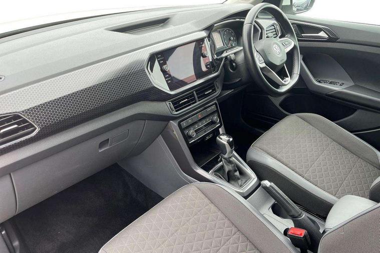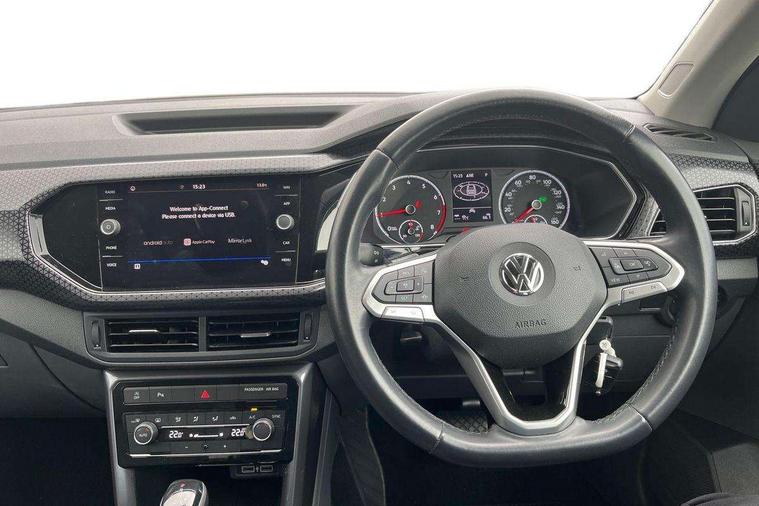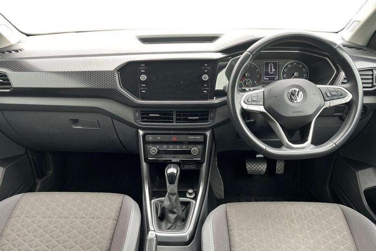 'Lights On' Reminder warning buzzer, Adaptive cruise control including front assist, forward collision warning, autonomous emergency braking, speed limiter, Discover media navigation system with 8" display including streaming and internet, Driver alert system, eCall emergency call system, Lane assist, Multifunction computer with visual gear change recommendation for fuel consumption, Power assisted speed sensitive steering, Speedo, rev counter, electronic odometer, trip, service interval display, exterior temperature and fuel gauge, Stop/start system, Warning sound and light for doors and tailgate open, Warning sound and light for front seatbelts unfastened, We Connect Go Dongle, Wireless Car net app connect with Apple CarPlay, combined functionality of Apple CarPlay/Android Auto and MirrorLink, Battery regeneration during braking, Misfuel prevention device, 2x USB connection with USB charging sockets and in rear centre console, Diversity antenna for FM reception, Premium USB cable for Apple or Android smartphone compatibility, Automatic dimming interior rear view mirror, Automatic hazard lights activation under emergency braking, Body colour door handles, Body coloured bumpers, Dusk sensor + automatic driving lights, Front and rear electric windows, Front fog lights with static cornering function, Galvanised body, Heated rear window, High level 3rd brake light, LED dipped and main beam headlights with automatic range adjustment including separate unique signature LED daytime running lights, Lower door sills and door pillars in black, Manual coming/automatic leaving home lighting function, Radiator grille with high gloss surface and chrome strip, Rain sensor, Rear lights incorporating LED technology, Rear window aerial, Rear windscreen washer and wiper with interval delay, Reflectors in all doors, Silver roof rails, Tailgate with integrated roof spoiler, Windscreen wipers/ intermittent wipe + 4 position delay, 12V Accessory socket in centre console, 2 Front and rear reading lights incorporating LED technology, 2 Zone electronic climate control with automatic air recirculation, 3 rear head restraints and 3 rear three point seat belts with ECE label, 60/40 split folding rear seat backrest, Drawer under drivers seat, Driver and front passenger sunvisor with vanity mirror, Driver's sunvisor with ticket holder, Dust and pollen filter, Front + rear carpet mats, Front centre armrest with storage compartment, Front seat back storage pockets, Glovebox, Heating and fresh air system with 4 stage blower, Height/reach adjust steering wheel, Instrument lighting white adjustable panel illumination, Interior light with delay, Isofix child seat preparation for 2 rear child seats, Luggage compartment cover, Luggage compartment lighting, Moveable and foldable Rear bench seat, Storage compartment in drivers and front passengers door, Variable boot floor, Composition Media infotainment system pack - T cross, Anti-lock Braking System (ABS) with Hydraulic Brake Assist (HBA), Automatic post collision braking system, Driver and front passenger safety-optimised head restraints, Drivers and Front Passengers airbags with front passengers airbag deactivation switch, ESC with EDL, ASR, EDTC and trailer stabilisation function, Extended and proactive pedestrian protection, Front and rear curtain airbags, Front seat side impact airbags, Height adjustable 3 point automatic front seatbelts with pretensioners, Hill start assist, Pre crash preventive occupant protection, Rigid safety cell with front and rear crumple zones, Tyre pressure loss indicator, Volkswagen roadside assistance, Alarm with interior protection and deactivation via infotainment system, Child security locks in rear doors, Remote tailgate unlocking using key fob,