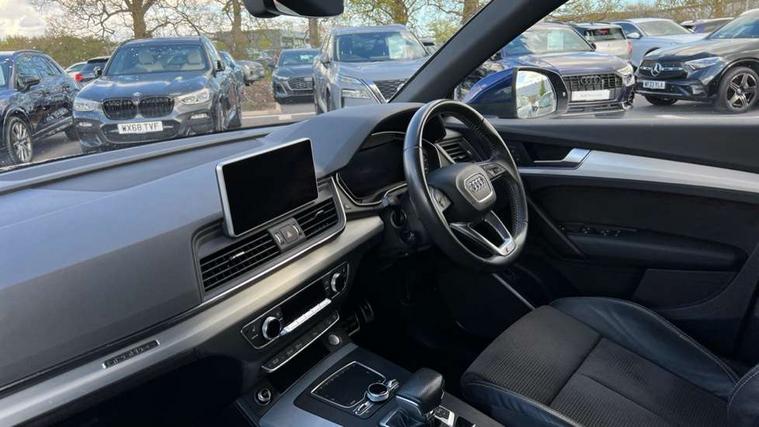 Audi connect, Audi drive select, Audi Pre sense collision avoidance, Audi smartphone interface, Driver information centre with colour display in instrument panel, Electric power steering, Power tailgate, SD card based MMI navigation, Service interval indicator, Voice control system, Diesel particulate filter, 2 USB ports, Auxiliary input socket, CD player, DAB Digital radio, MMI radio plus with 7" colour MMI screen and MMI controller, Acoustic windscreen, Aluminium roof rails, Aluminium sill plates, Auto dimming rear view mirror, Black high gloss front air inlet in matt aluminium effect, Body colour bumpers, Body colour door mirrors, Body colour rear diffuser insert, Chrome exhaust tailpipe, Electric headlight adjustment, Electrically adjustable and heated door mirrors, Front and rear electric windows, Front fog lights, Headlight range control, Headlight washers, Honeycomb side air inlet in titan black, Light and rain sensor for auto activation of lights and windscreen wipers, Loading sill protector in stainless steel, Privacy glass with front acoustic glazing, Rear diffuser strip in matt aluminium silver, Rear spoiler, Rear wiper, S Line side skirts, Selenite silver underbody guard, Twilight grey matt radiator grille with matt aluminium horizontal chrome struts, 3 rear headrests, 3 zone climate control, 4 way electric lumbar support for driver and front passenger, 40:20:40 split folding rear bench seat, Black cloth headlining, Front centre armrest with 12v socket, Front sports seats, Front/rear floor mats, Height adjustable driver's seat, Height adjustable front head restraints, Illuminated door sills, Isofix front passenger and rear seat preparation, Jack and tool kit, Load compartment cover, Luggage compartment carpet, Matt selenite silver door inserts, Perforated leather gearknob, Reach + rake adjustable steering column, Removable luggage compartment floor, Removable net partition, Roller blind loadspace cover, Stainless steel pedals, Sunvisors with vanity mirrors, Non Smokers pack, 3 point seatbelts on all seats, ABS, Curtain airbags, Driver and passenger airbags, Driver and passenger side airbags, Electromechanical parking brake, ESC with ASR, ESP, First aid kit, Front passenger airbag deactivation, Hill descent control, Seat belt force limiter, Seatbelt warning lamp, Traction control, Tyre pressure monitor, Warning triangle, Locking wheel bolts, Remote central locking, Thatcham category 1 alarm + immobiliser, Contrast stitching,