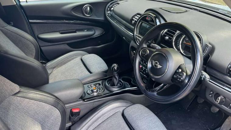 Brake pad wear indicator warning light, Central display with LED ring and 6.5" colour touch screen, DTC - Dynamic traction control, Exterior temperature gauge, Intelligent emergency call, Mini Ecall, MINI TeleServices, Navigation system, On board computer, Personal Profile, Service interval indicator, Servotronic speed sensitive power steering, Electronic differential lock, Auxiliary input socket, DAB digital radio module, MINI Connected, MP3 compatible radio/single CD player, Radio visual boost, Anti dazzle rear view mirror, Body coloured bumpers, Bonnet Stripes - Black, Chrome door handles, Chrome exhaust tailpipe, Chrome headlight surround, Chrome plated radiator grille, Electric front windows + one touch + anti-pinch, Electrically adjustable door mirrors, Follow me home headlights, Front intermittent wipers, Heated door mirrors/heated windscreen washers, Heated rear window with timer, Metal look door sill finishers, Rain sensor including auto headlights activation, Rear wiper, Roof spoiler, White indicator lights, 12V power point front, 4 lashing points to secure luggage, 60/40 split folding rear seat, Centre console storage box, Chrome interior door handles, Driver/passenger sunvisors, Easy entry seats, Front and rear cupholders, Front and rear Isofix child seat preparation, Front and rear velour floor mats, Front centre armrest with storage compartment, Front headrests, Front interior light, Front passenger grab handle, Front seat backrest storage nets, Heater with recirculation function, Height/reach adjust steering wheel, Luggage compartment lighting, Multifunction steering wheel, Outer passenger rear headrests, Rear armrest with storage, Rear grab handles, Storage compartments in doors, Toolkit in luggage compartment, Interior lights pack - Mini Clubman, 3 point automatic seatbelts, 3 point seatbelts on all rear seats, ABS, Automatic Stability Control (ASC), CBC - (Cornering brake control), Crash Sensor - activates hazard/interior lighting + unlocks doors, Driver and passenger airbags, Driver and passenger side airbags, DSC - Dynamic Stability Control, Electronic brake force distribution, Electronic parking brake, Front curtain airbags, Front passenger airbag deactivation, Fuel cut off safety device, Hill start assist, Pyrotechnically pre-tensioned front seatbelts, Traction control, Twin horns, Tyre pressure warning, Drive away door locking, Keyless Start, Locking wheel bolts, RF remote control central locking, Second remote key, Thatcham category 1 alarm + immobiliser,