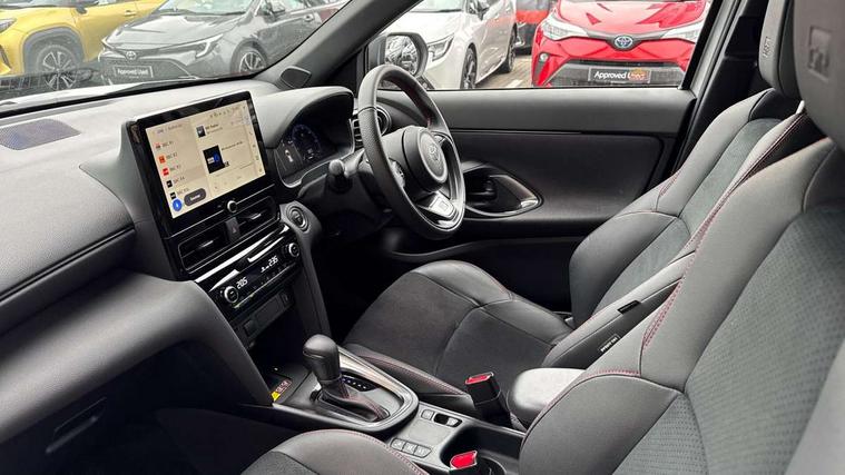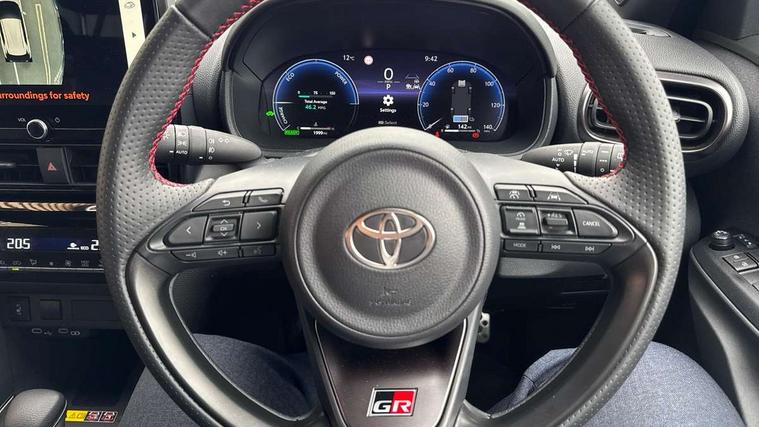 10.5" Multimedia display screen, 10.5" Toyota smart connect+ with navi multimedia system with wireless Smartphone integration incl Apple CarPlay, 12.3" Multi information display screen, Adaptive cruise control, multi info switches on steering wheel, Adjustable speed limiter, Bluetooth connectivity, Color multi-information display, Digital speedometer, Digital tachometer, Drive mode selector, Driver attention alert system, eCall emergency system, Electric power steering, Emergency driving stop system, Full range intelligent adaptive cruise control, Hybrid system indicator, Intersection turn assist, Key reminder warning, Lane trace assist, My T Connected services, Pre-collision system enhanced with emergency steering assist, Reversing camera, Road sign assist - RSA, Static guide lines on reversing camera, Tailgate, Telephone switch on steering wheel, Wireless Mobile Phone Charger, Steering assisted vehicle stability control, 6 speakers, DAB Digital radio, Front USB Type-C connector, Front USB-C device charger, Acoustic windscreen glass, Anti-jam protection on power windows, Auto dimming rear view mirror, Auto high beam [AHB] with on/off switch, Auto intermittent windscreen wipers, Automatic headlights, Automatic headlights cut-off, Automatically retractable door mirrors, Black door moulding, Black lower front grille, Black protection moulding on side doors, Black rear bumper with diffuser, Black rear under run, Black roof rails, Black wheel arch mouldings, Body colour door handles, Body colour front bumper, Electric adjustable heated door mirrors, Follow me home headlights, Front and rear electric windows with auto up/down function, Gloss black upper front grille, GR Sport meshed lower front grille, GR Sport meshed upper front grille, GR sport scuff plates, Headlight cut off reminder, Indicators integrated on door mirrors, Intermittent rear wiper, LED 3rd brake light, LED daytime running lights guide, LED front fog lights, LED front light guide, LED Indicators, LED projector headlights, LED rear lights with sequential indicators, Manual headlight levelling, Noise reduction layer on windscreen, Pre wiring for towing hook, Privacy glass, Rain sensor, Rear roof spoiler, Rear side wing doors, Rear window defogger, Shark fin antenna, 12v power outlet - front, 12V power point in boot, 2x Rear coat hooks, 3 seat bench in 2nd row, 3 Spoke GR Sport leather steering wheel, 40/60 split deckboard, 40:20:40 split folding rear bench seat, Adjustable rear headrests, Adjustable speed limiter switch on steering wheel, Black roof lining, Boot light, Driver and front passenger personal lights, Driver and front passenger Whiplash injury Lesseing seats, Driver and passenger seatback pockets, Dual zone automatic air conditioning, Fabric door trim, Front console box, Front cup holders, Front door pockets, Front head restraints, Front sport seats, Front/rear assist grips, Gear shift indicator, GR sport floor mats, Heated driver and passenger seats, Height adjustable driver's seat, Height adjustable front passenger seat, Hooks for luggage holding belts, ISOFIX child restraint system, Lane departure alert switch on steering control, Leather gearshift, LED centre room light, Light on driver and passenger sun visor, Manual telescopic and tilting steering wheel, Mirror on driver and passenger sun visor, Nanoe-X air purifier, Pollen air filter, Power adjustable lumbar support on driver seat, Rear cup holders, Rear door pockets, Rear head restraints, Remote air-conditioning system, Single compartment glovebox, Single front passenger seat, Soft tonneau cover, Storage box under boot floor, Ultra suede cloth upholstery, Voice recognition switch on steering wheel, White ambient lighting in centre console, White ambient lighting in footwell, White ambient lighting on front doors, 3x3 point rear seat belts, ABS+EBD+Brake assist, Driver and passenger central airbags, Driver and passenger front airbags, Driver and passenger side airbags, Electronic parking brake, Emergency brake light system (EBS), Front seat belt reminder, Hill start assist control (HAC), Passenger airbag on/off switch, Pre-collision system with pedestrian and cyclist detection, Rear door child safety locks, Rear passenger side airbags, Rear seat belt reminder, Traction control, Tyre pressure warning system, Immobiliser, Intrusion alarm, Keyless smart entry with push button start, Power door locks, Power passenger window lock, Remote door lock, Tyre repair kit,