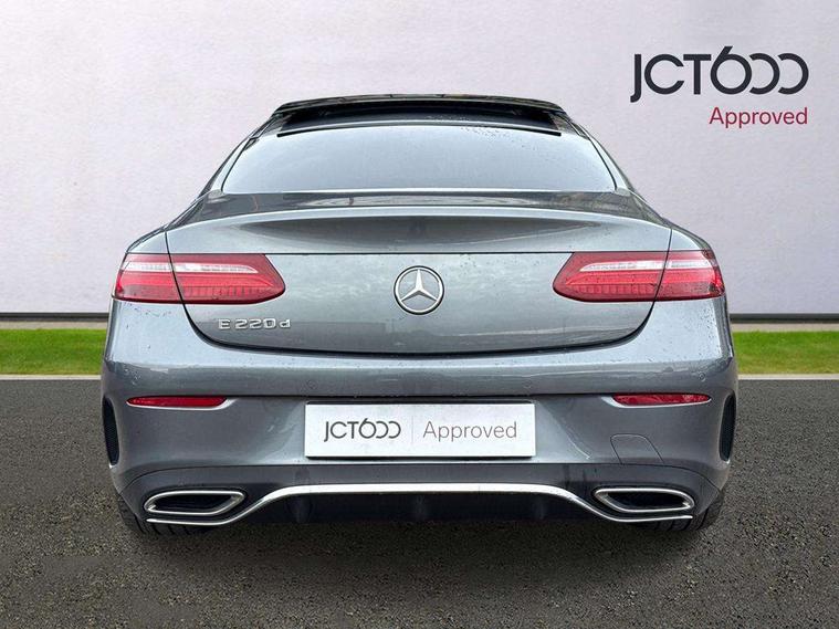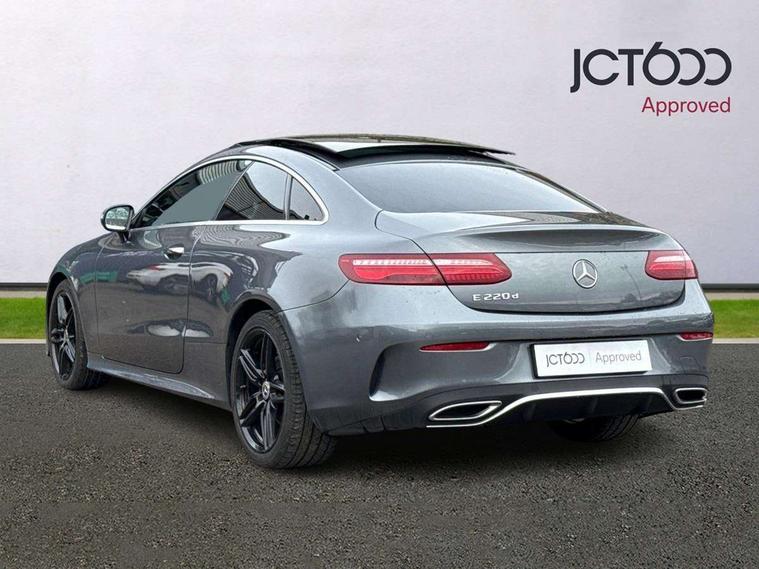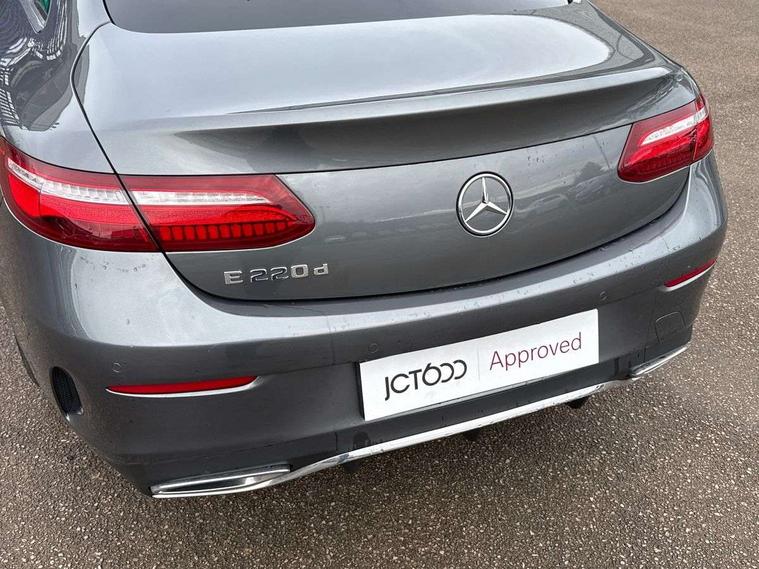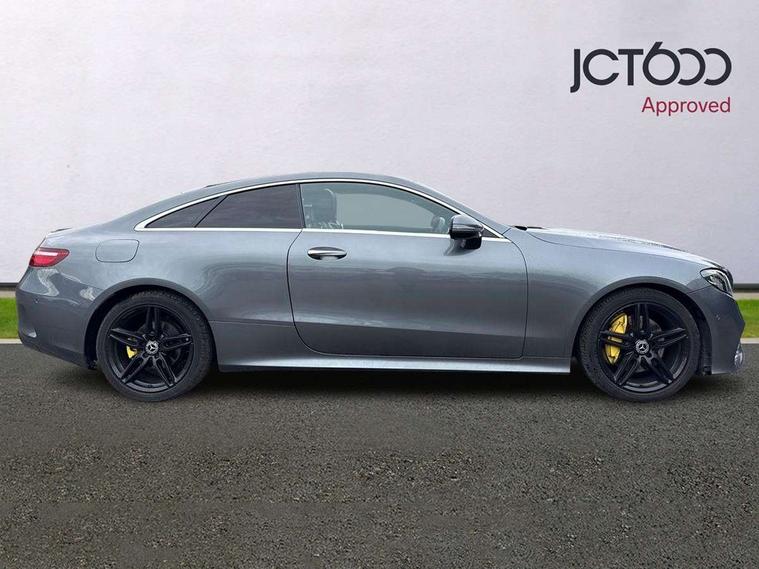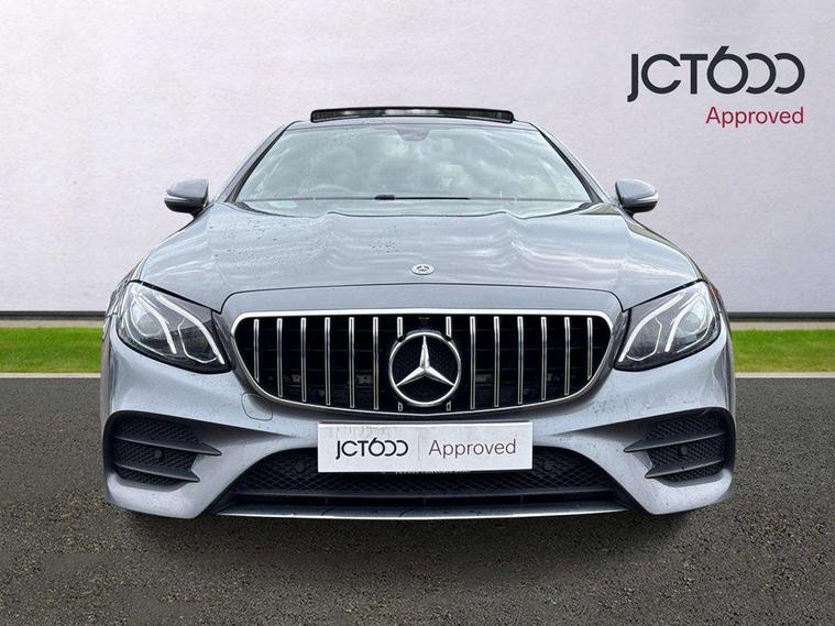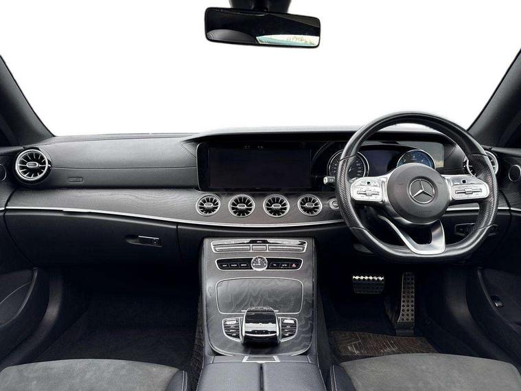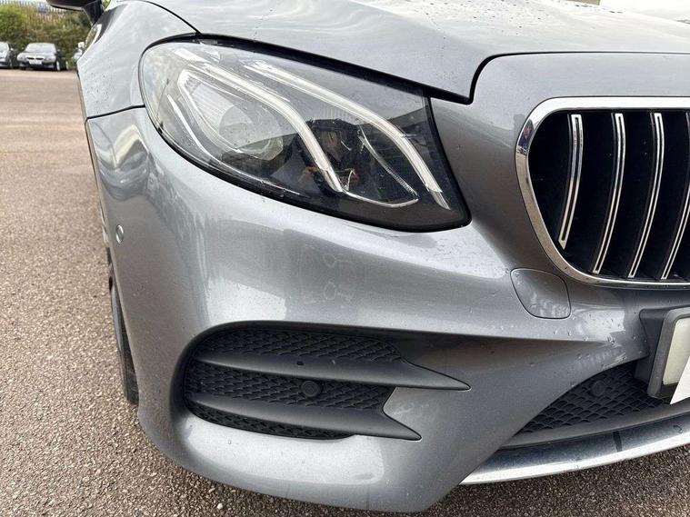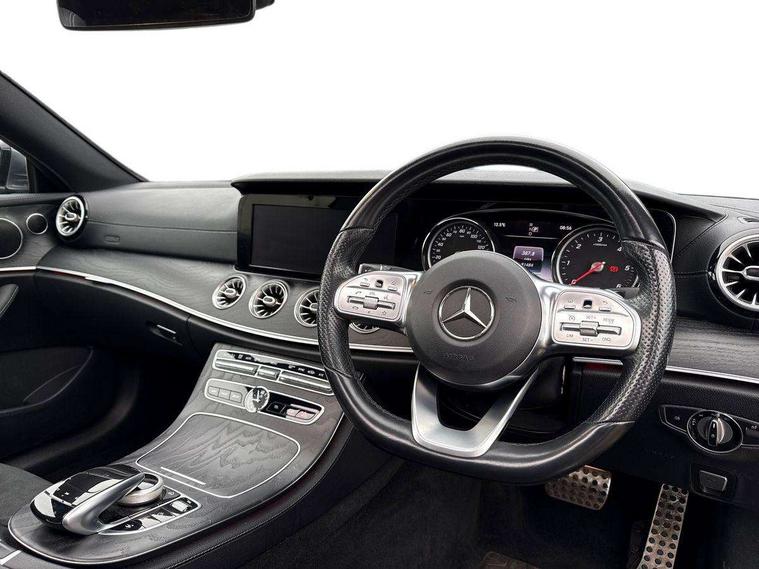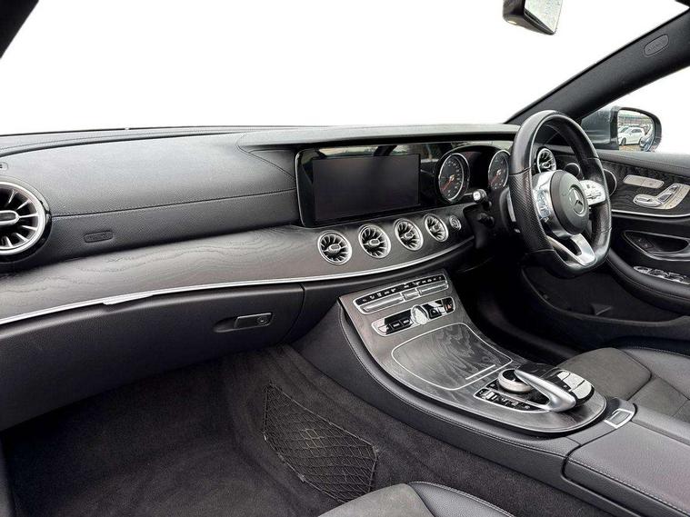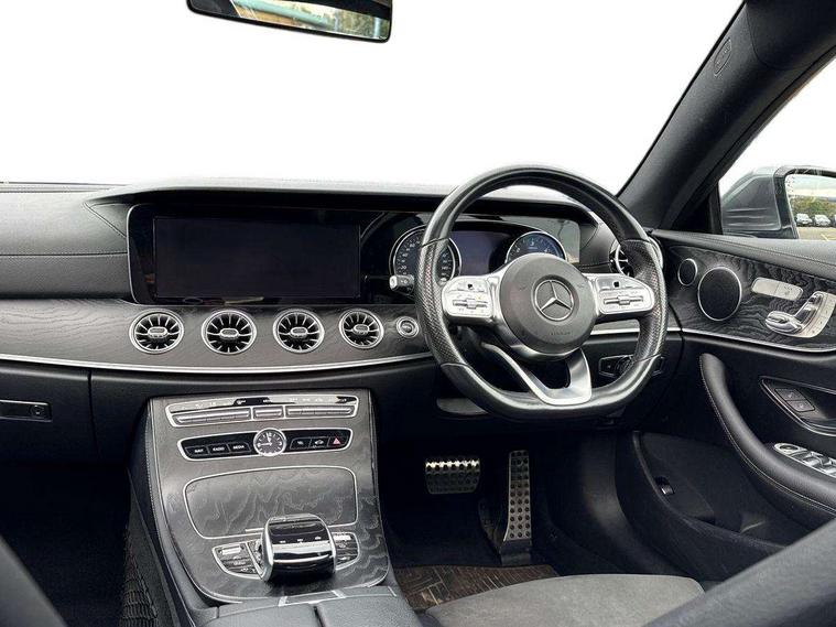 360 degree parking camera, Active parking assist including front and rear parking sensors, Analogue clock, Attention assist, Blind spot assist, Bluetooth interface for hands free telephone, Brake wear warning display, Cockpit display 12.3" widescreen digital instrument cluster, Collision prevention assist plus, COMAND online HDD navigation with Radio/Media interface, linguatronic + smartphone integration/Apple CarPlay/Android Auto and 12.3" Cockpit display, Direct steer speed sensitive steering, Direct steering, DYNAMIC SELECT with a choice of driving modes (ECO, Comfort, Sport, Sport+ and Individual), ECO start/stop function, Engine start/stop button, Mercedes connect me, Multi function trip computer, Outside temperature display, Remote boot release, Service indicator (ASSYST), Status display for rear seat belts in instrument cluster, Touchpad with control wheel, Wireless charging, 25 litre AdBlue tank, 66 litre fuel tank, Diesel particulate filter, Incorrect fuelling protection, 2 USB ports in centre console, Audio 20 with USB, touchpad and control wheel with Media Interface with Bluetooth interface and hands-free function, DAB Digital radio, Adaptive brake lights, AMG bodystyling front and rear aprons, side skirts, AMG boot lid spoiler in body colour, AMG front, rear apron and side skirts, Body colour door handles, Body coloured bumpers, Electric windows with one touch opening/closing and obstruction sensors, Exterior mirrors heated and electronically adjustable, Illuminated front door sill panels with Mercedes-Benz lettering, Magic Vision Control heated windscreen wiper system, Multibeam LED Intelligent Light System with Adaptive Highbeam Assist, Pre-installation for roof rail systems, Privacy glass Includes rear side windows and rear windscreen, Rain sensing windscreen wipers, Rear LED lights, Top surround of side windows in polished aluminium, Visible twin pipe exhaust system integrated into bumper, 3-spoke flat bottom multifunction AMG steering wheel with Touch Control buttons, trimmed in black nappa leather, 4 way adjustable front head restraints and 2 way rear head restraints, 40:20:40 split folding rear seats, Artico man-made leather upper dashboard and beltlines with contrast stitching, Automatic child seat recognition sensor, Automatic two zone climate control, Bag hook in luggage compartment, Belt feeder driver and front passenger seat belt automatically positioned within easier reach, Black roof lining, Central stowage compartment with 12 V socket in centre console, Centre armrest and door handle illumination, Chrome door pins, Easy entry seats, Floor mats with AMG lettering, Front and rear door pockets, Front centre armrest with stowage compartment, Front footwell lights, Glasses compartment in overhead control panel, Glove compartment - lockable, air conditioned and illuminated, Heated front seats, Interior lighting - 64 colour Ambient lighting, Interior rear light/integral reading lights, Isofix rear child seat fastenings, Multi contour front sports seats, Multi function steering wheel, Rear centre armrest with 2 cupholders + storage, Seat occupancy sensor for front passenger seat, Sports pedals in brushed stainless steel with black rubber studs, Steering column manually adjustable for height and reach, Steering wheel gearshift paddles, Steering wheel touch control buttons for audio and onboard settings, Storage net in luggage compartment, Sunvisors with illuminated vanity mirrors, Twin front cupholders, Memory pack - E Class, Mirror pack - E Class, Stowage pack - E Class, Active bonnet, Active brake assist, Adaptive brake system, Adaptive driver and front passenger airbags, Anti-lock braking system (ABS), Crash sensor (auto door unlocking), Drivers knee airbag, Electric parking brake, Electronic Stability Programme, Front and rear window airbags, Front seatbelt pretensioners, Front side airbags, Head airbags, Hill hold function, Perforated front brake discs with "Mercedes-Benz" lettering, Seatbelt warning, Three point rear seat belts, Tyre pressure monitoring system, Warning triangle and first aid kit, Alarm system/interior protection/immobiliser, Central locking with interior switch, automatic locking and crash sensor with emergency opening function, Chrome surround in electric key, Keyless entry go starting function, Black open pore ash wood, Open pore black ash wood centre console, Run flat tyres,