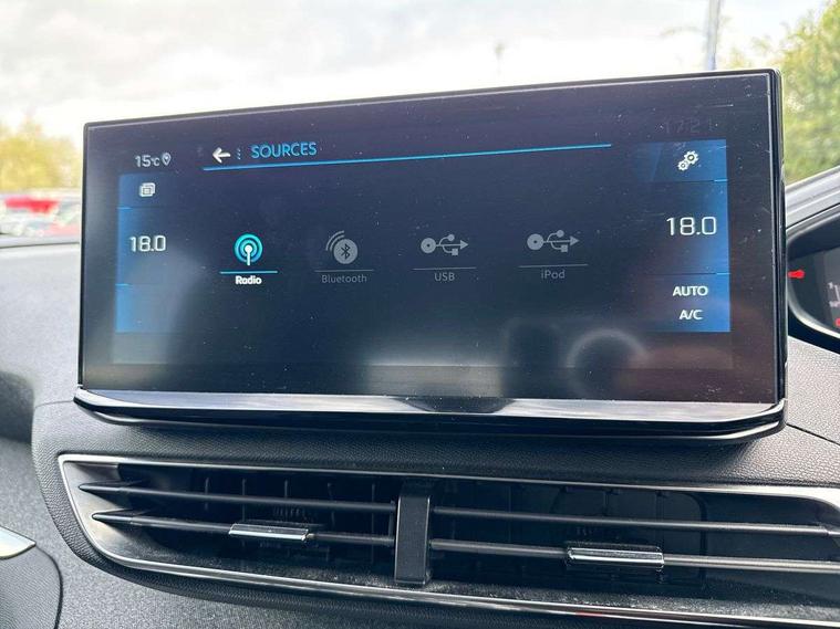 3D connected navigation with 10" HD touchscreen + voice recognition system, Apple car play and Android auto, Bluetooth telephone facility, Drive modes select (Eco, normal and sport), Driving Time Warning (DAA1), Emergency services call system, Extended traffic sign recognition, Exterior temperature indicator with ice warning, Front and rear parking sensors, Lane departure warning system, Mirror screen with mirror link, apple carplay and android auto, Multi function trip computer, Peugeot i-cockpit with compact multi-function sports steering wheel, PEUGEOT i-Cockpit with configurable 12.3" Head-up digital instrument panel, Speed limit recognition and recommendation, Dynamic stability control and electronic anti-skid system, Stop/start function, 6 speakers radio with mp3 compatible, DAB Digital radio, USB socket, Aluminium front door sills, Aluminium longitudinal roof bars, Automatic hazard light activation upon heavy brake application, Automatic triggered rear windscreen wiper in reverse gear, Black diamond roof, Black rubber side window trim, Black with chrome detailed front wing trim, Body colour door handles, Body colour rear roof spoiler with stainless steel edging trim, Body protectors (bottom of front and rear bumpers + wheel arches + protection at bottom of doors) in black, Chrome frameless 'Classic' grille, Chrome rear bumper facia, Dark tinted rear side windows + tailgate window, Diamond Black door mirror shells, Door mirror mounted LED courtesy floor lighting, Eco LED headlights, Electric folding door mirrors with exterior courtesy LED lighting, Electric operated/heated door mirrors, Front and rear door and sill protectors with polished stainless steel insert, Front bumper lower trim in Silver, Front windscreen wiper with magic wash cleaning system, Gloss black B and C pillar and aerodynamic deflector trim, Gloss black front bumper air scoops, Gloss black rear cluster connecting strip, Gloss black windscreen trim, Headlights left on audible warning, Heated rear windscreen with integrated antenna, LED daytime running lights, LED front indicator, LED rear number plate lighting, LED side indicator lights integrated into door mirrors, LED third brake light, One touch electric front/rear windows with pinch protection, Rear LED Peugeot signature 'Claw Effect' lights, Rear side wing doors, Stainless steel door sill scuff plates, Stainless steel roof arches, 1/3 to 2/3 split folding rear seats, 12V Sockets in dashboard, rear cabin and load area, 2 cupholders in front centre console, 2 cupholders in rear armrest, 2 x Rear reading spotlights, 2x Rear coat hooks, 3x Isofix child seat fittings in the front passenger and outer rear seats, 4 Grab handles retractable and damped, Aluminium pedals, Blue ambient lighting for connecting zone, Blue ambient lighting to front door panels, Blue ambient lighting to headup instrument panel, Brumeo fabric trimmed door armrests, Centre front armrest with butterfly wing opening and illuminated storage compartment, Driver seat lumbar adjustment, Driver seat manual adjustment (longitudinal and back rest angle), Dual zone automatic climate control, e-Toggle compact gear selector, Electric power steering with reach and rake adjustable steering column, Flocked glovebox interior, Foldable front passenger seat with picnic table, Footwell illumination, Front interior light with 2 reading spotlights and rear interior light with timer, Front passenger seat manual adjustment (longitudinal and back rest angle), Front seat back map pockets, Gear shift indicator, Height adjustable front seats, Illuminated glovebox, Individual left and right controls in boot for seat folding, Leather steering wheel with detail stitch, LED interior lighting in storage spaces and load area, LED roof interior lighting, Rear bench seat with central armrest and ski hatch, Rear centre console ventilation system, Roof lining - Mistral black, Satin chrome dashboard trim, Satin chrome digital instrument panel and touchscreen trim, Satin chrome front door panel recess trim, Satin chrome interior door handles, Satin chrome scorpion's tail and toggle switch trim, Seatbelt not fastened audible and visual alert for front seats, Seatbelt unfastened on the move audible and visual alert for front and rear seats, Sunvisors with illuminated vanity mirrors, Two position boot floor, Safety Plus Pack - 3008, Visibility pack - 3008, 3x Rear three-point retractable seatbelts with force limiters in the outer rear seats, ABS (Anti-lock Braking System) with EBD (Electronic Brakeforce Distribution) and EBA (Emergency Braking Assistance), Adaptive driver and front passenger airbags with passenger airbag deactivation function, Driver and front passenger side airbags, Electric child locking functionality on rear windows and doors, Electric parking brake, Front and rear curtain airbags, Front optimised safety headrests and 3 x rear retractable headrests with height adjustable, Front three point retractable seatbelts with pre tensioners and force limiters, Front ventilated disc brakes and rear disc brakes, Hill start assist, Two tone horn, Automatic door locking when moving off, Electronic immobiliser, key operated exterior door lock from the left hand door, Perimetric and volumetric alarm with lift and tilt sensor, Peugeot Open and Go System, Remote control central locking with two plip keys, Brumeo fabric Dashboard, front and rear door panel finish, Michelin e-primacy 225/55 R18 102V class A+ tyres, Puncture repair kit including compressor, sealant cartridge and towing eye,