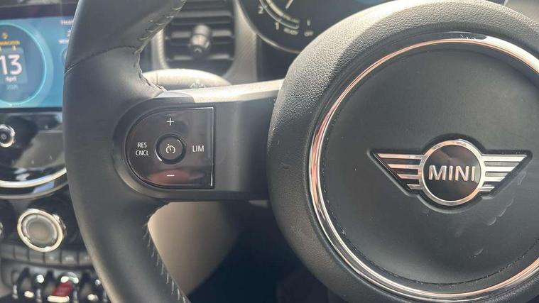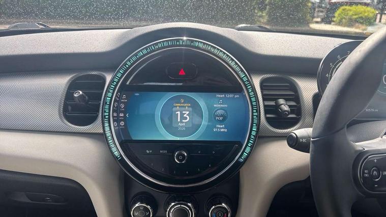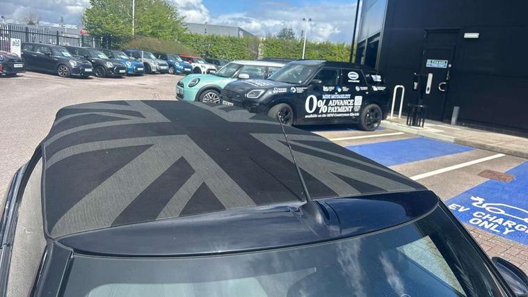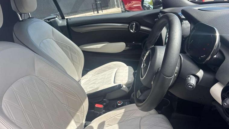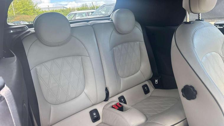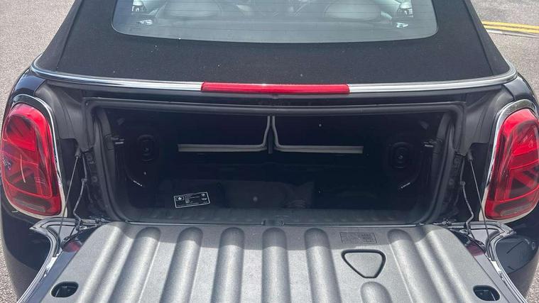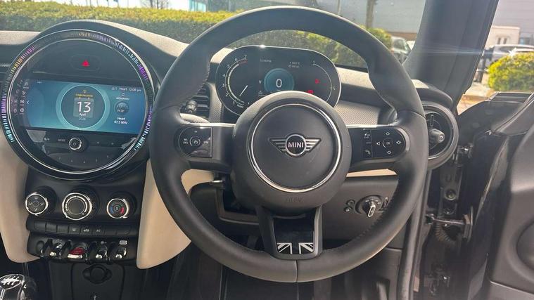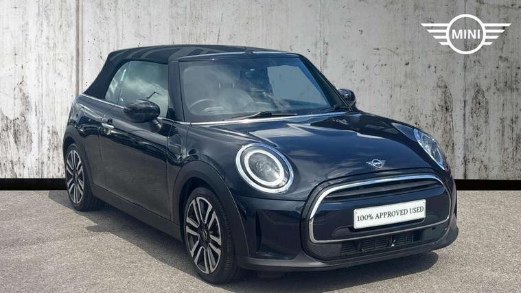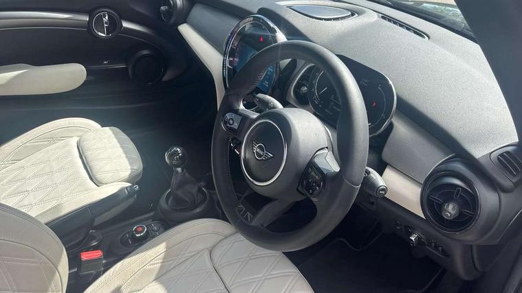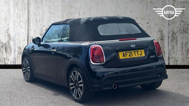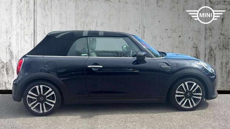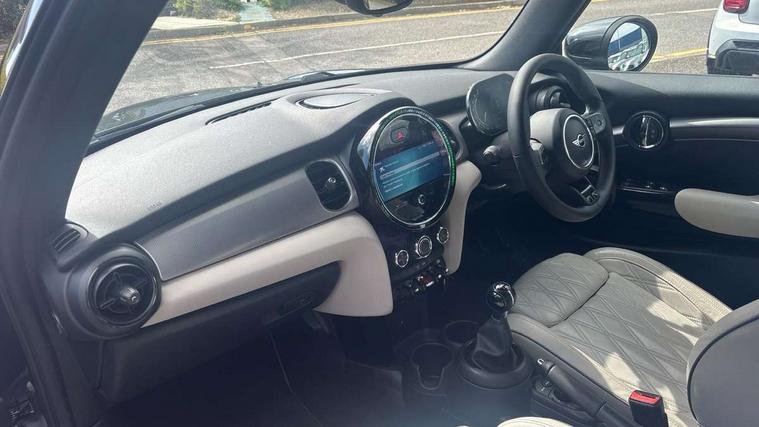 Automatic start/stop function with brake energy recuperation, Compatible mobile phone bluetooth with audio streaming, Cruise control with brake assist, Digital instrument cluster, Electro-mechanical speed dependant steering assistance, MINI Driving Modes - centre toggle switch to control driving setting (sport, mid and green), Mini E-call, MINI TeleServices, On board computer, Rear park distance control, Service interval indicator, 6 Speed manual transmission including gear change indicator display, Double Vanos system, Fully variable valve control, High precision injection, Performance Control, 8.8" touchscreen with LED ring, FM tuner and DAB digital radio, Automatic headlight activation switch, Body colour fuel filler cap, Dynamic brake lights, Electric windows, Fully electric black softtop with integrated sunroof functionality, Heated rear window, Heated windscreen washer jets, LED headlight with closed ring and daytime driving lights, Left exhaust tailpipe with chrome finisher, Metal door sill strips with MINI imprint, Mini Yours soft top - Black/Union Jack, Model logo Cooper on right of tailgate, Radiator grille bars, tailgate handle, lower front grille grating, rear central fog light in chrome, Rain sensor window wipers, Rear fog lights, Rear LED lights with union jack design, Side scuttle panel with integrated indicator, Sun/heat protection glass, White indicator lenses, 12V Accessory socket in centre console, 4 lashing eyes in luggage compartment, 50/50 split folding rear seats, Chrome interior highlights, Colour line - Carbon black, Cupholders, Easy Load boot handles, Front and rear head restraints, Front and rear isofix with front passenger airbag deactivation, Glove compartment, Height and length steering column adjustment, Interior lighting with 12 basic colours selectable via toggle switch in roof, Leather gearshift lever and handbrake gaiters, LED reading lights, vanity mirror lights, front foot well light and spotlight on front seats, Manual air conditioning, Mechanical seat adjustment, driver seat height adjust, forward/back and front seats backrest, MINI Yours walk nappa leather steering wheel with grey seam and MINI Yours badge on piano black lower steering wheel spoke, Multifunction steering wheel, Storage compartments in doors, Sunvisors with vanity mirrors, Tool kit, Velour floor mats, Convertible pack with comfort access - Mini Convertible, 3 point seatbelts on all four seats, 6 Airbags - front, side and seat belt tensioners, Active rollover protection, Anti-lock braking system (ABS), DSC - Dynamic Stability Control, Front and rear disc brakes, Hill start assist, Single tone fanfare horn, Tyre pressure monitoring system, Alarm system with tilt sensor, monitoring doors, bonnet interior and tailgate, Electronic vehicle immobiliser, Keyless Go,