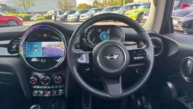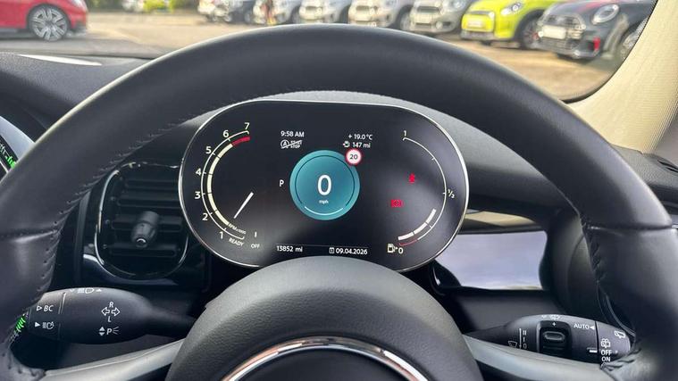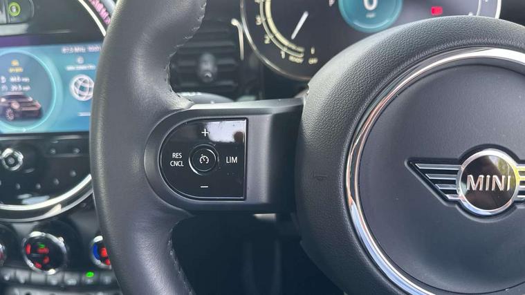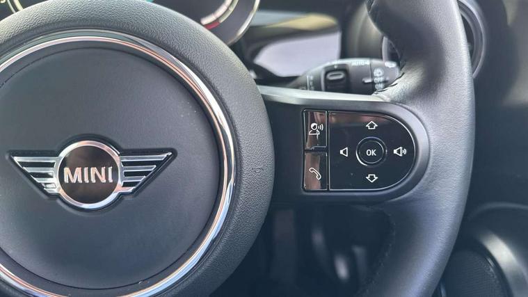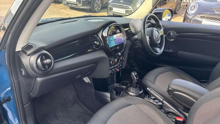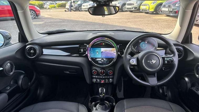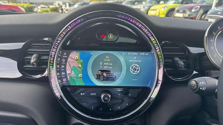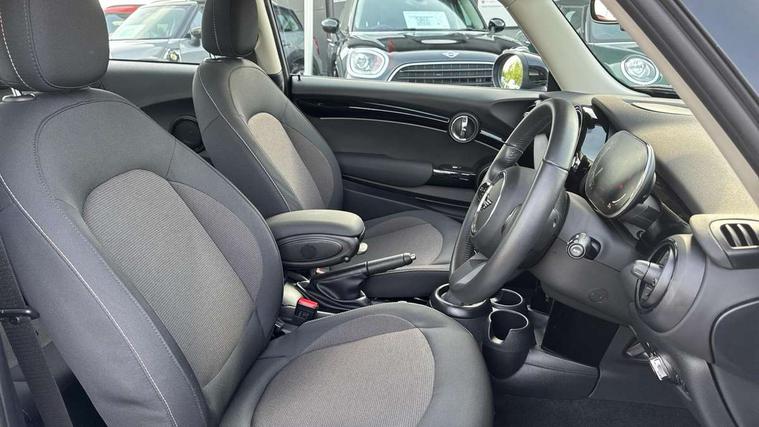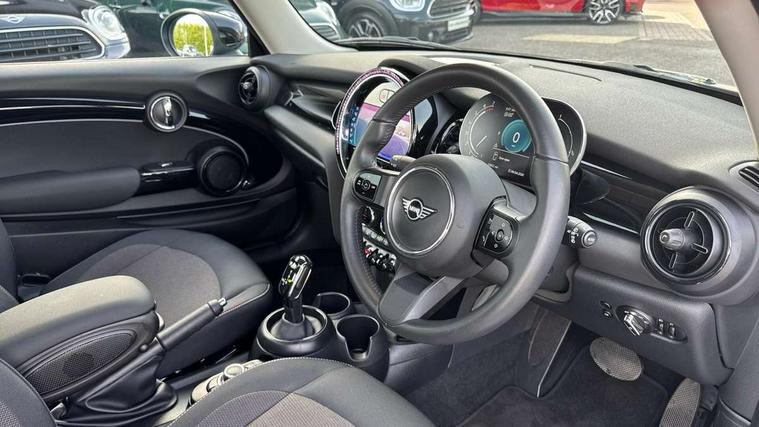 Apple CarPlay, Automatic start/stop function with brake energy recuperation, Compatible mobile phone bluetooth with audio streaming, Cruise control with brake assist, Electro-mechanical speed dependant steering assistance, Flexible car sharing preparation, Instrument cluster, Mini E-call, MINI TeleServices, On board computer, Service interval indicator, Double Vanos system, Fully variable valve control, High precision injection, Performance Control, Steptronic transmission with double clutch, 8.8" touchscreen with LED ring, FM tuner and DAB digital radio, 3rd brake light, Automatic headlight activation switch, Body colour fuel filler cap, Chrome border high gloss black slats radiator grille, Dynamic brake lights, Electric front windows, Exhaust tailpipe on left with chrome finisher, Heated rear window, Heated windscreen washer jets, LED headlight with closed ring and daytime driving lights, Metal door sill strips with MINI imprint, Model logo Cooper on right of tailgate, Rain sensor window wipers, Rear fog lights, Rear LED lights with union jack design, Rear window wiper, Side scuttle panel with integrated indicator, Sun/heat protection glass, White indicator lenses, 12V Accessory socket in centre console, 2 seat bench in 2nd row, 4 lashing eyes in luggage compartment, 60/40 split folding rear seat, Ambient lighting, Carbon black colour line - Knee roll and door armrest, Chrome interior highlights, Cupholders, Front and rear head restraints, Front and rear isofix with front passenger airbag deactivation, Front floor mats in velour, Glove compartment, Height and length steering column adjustment, Interior lighting with 12 different colours across the dashboard, underneath door bezel with illuminated laser-engraved design on central display, Leatherette gearshift lever and handbrake gaiters, LED reading lights, vanity mirror lights, front foot well light and spotlight on front seats, Manual air conditioning, Mechanical seat adjustment - forward/back & backrest for front seats and driver seat height adjust, Multifunction steering wheel, Passenger seat height adjuster, Satellite grey headlining including grab handles and clothes hooks, Single front passenger seat, Sport leather steering wheel with speed limiter and audio/communication controls, Storage compartments in doors, Sunvisors with vanity mirrors, 3 point seatbelts on all four seats, 6 Airbags - front, side, head and seat belt tensioners, Anti-lock braking system (ABS), DSC - Dynamic Stability Control, Front and rear disc brakes, Single tone fanfare horn, Tyre pressure monitoring system, Alarm system with tilt sensor, monitoring doors, bonnet interior and tailgate, Electronic vehicle immobiliser, Start/stop toggle with keyless go, Piano black interior trim, Tool kit, Tyre repair kit,