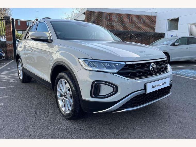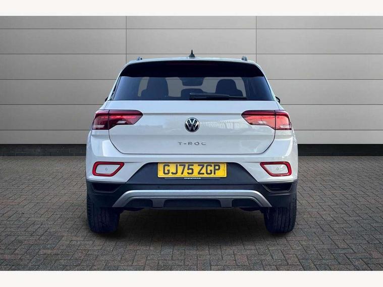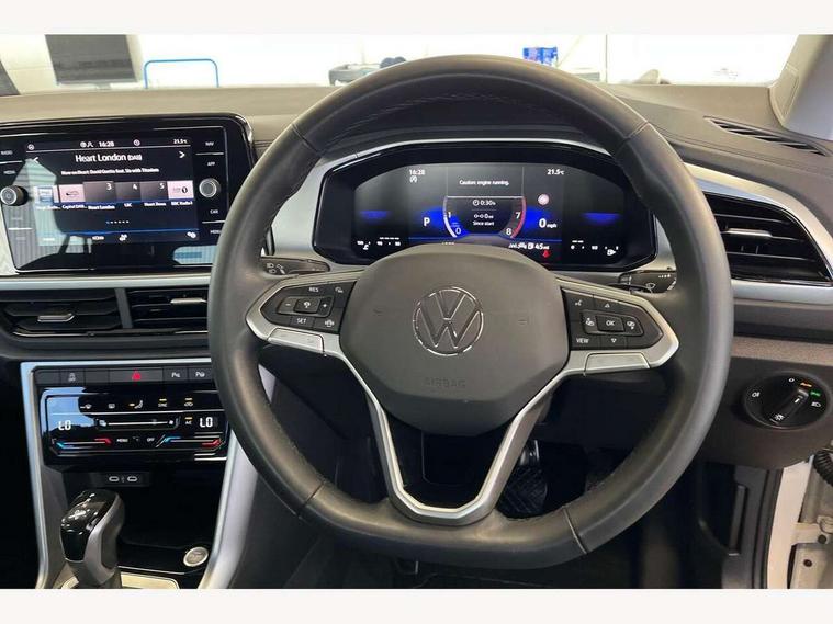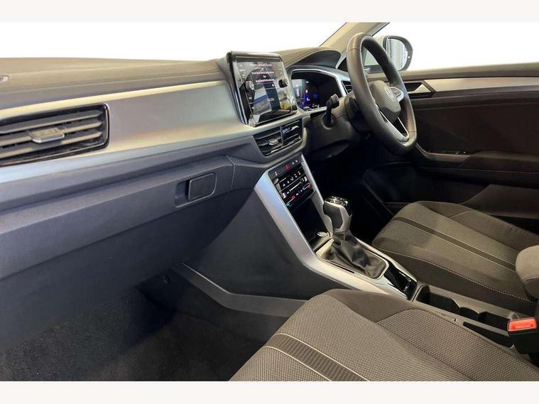Advanced driver attention and drowsiness monitor, Dynamic road sign display, Emergency call service, Lane keeping system Lane Assist, Mobile phone interface, Modified key software - reduce switch off time for key status change to Long no motion, Online services, Park assist including front and rear parking sensors, Power assisted speed sensitive steering, Rear view camera, Service interval indicator, Tailgate/trunk lid release from outside, Think blue trainer driver tips and journey analysis, Warning sound and light for front seatbelts unfastened, Wireless app connect, Battery regeneration during braking, Front shock absorption, Rear shock absorption chassis with increased ride height, Start/stop function with battery regeneration, DAB Digital radio, Diversity antenna for FM reception, Music playback - MP3, WMA and AAC files, SD card slot, Simultaneous pairing of 2 compatible mobile devices, Title and cover art display, We Connect and We Connect Plus functionality, Auto dimming interior rear view mirror, Automatic hazard lights activation under emergency braking, Automatic headlight control with LED separate daytime running lights with coming/leaving home function, Black roof rails, Body coloured bumpers and radiator grille with chrome trim and front fog lamps with chrome bezel, Body coloured exterior mirror housings and door handles, Electrically adjustable and heated door mirrors, Extended roof spoiler, Exterior mirrors aspherical on driver side, convex on front passenger side, External USB type C socket and charging sockets, Front windscreen wiper with intermittent wipe and 4 position delay, Heated rear window, LED 3rd brake light, LED rear combination lamps, LED rear number plate lights, Power windows with comfort operation and circuit breaker, Privacy glass for rear side windows and rear window, Rain sensor, Rear exhaust tailpipe, Rear fog light on one side and reversing lights on both sides, Rear side wing doors, Rear wash/wipe with intermittent wipe setting, Remote electrically foldable door mirrors, puddle lights and reverse activated passenger's door mirror, 12V power socket in centre console, 3 rear head restraints, 3 seat bench in 2nd row, 4 load lashing points in luggage compartment, Air care climatronic air conditoning system with active combination filter and 2-zone temperature control, Black stitching for floor mats, Ceramique roof liner, Cloth upholstery, Door and side trim panel in cloth, Drawer under drivers seat, Driver/front passenger seat height adjustment, Front centre armrest, Front comfort sports seats, Front cupholders x 2, Front reading light, Front seat back storage pockets, Glove compartment door with light, Instrument lighting, white adjustable panel illumination, Interior ambient lighting and surround lighting, Interior light delay, Isofix child seat preparation, Leather gearshift handle, Load-through provision with cup holder when folded down ('Unsplit rear seat bench, split folding backrest, with centre armrest), Luggage compartment lighting, Lumbar support for driver's and front passengers seat, Non-folding front passenger seat backrest, Single front passenger seat, Storage compartment in left and right luggage area, Storage compartment in rear doors, Storage compartments in driver and front passenger doors, Sunvisors with illuminated vanity mirrors, Variable boot floor, height adjustable and removable, Driver assistance pack without proactive passenger protection - T-Roc Life/Match, 3 point height adj front seatbelts + pretensioners, 3 point seatbelts in outer rear with ECE label, ABS, Child locks on rear doors, City emergency braking and pedestrian monitoring, Driver and front passenger airbag with front passenger airbag deactivation, Driver and front passenger safety-optimised head restraints, Drivers seatbelt reminder, Electronic parking brake, Electronic Stability Control (ESC) inc EDL (Electronic Differential Lock) and ASR (Traction Control), Front and rear passengers curtain airbag system including front side airbags, Front disc brakes, Hill start assist, Predictive pedestrian protection, Rear disc brakes, Two tone horn, Tyre pressure loss indicator, Volkswagen roadside assistance, Alarm with interior protection, Keyless locking and starting system keyless access with safelock, Pewter matt decorative inserts for intrument panel, centre console and door panels at the front, Trims for alloy wheels,