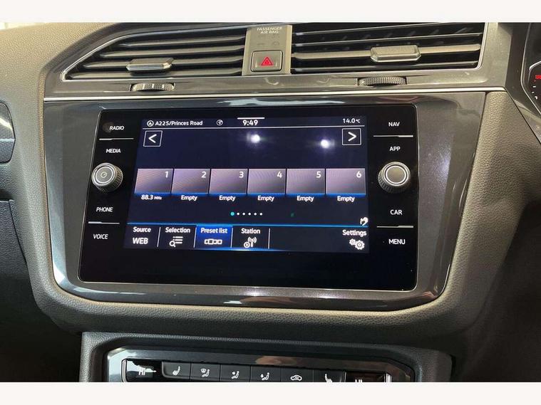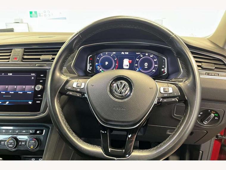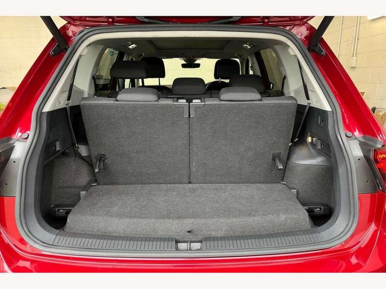 2D/3D map view, Active information display, Adaptive cruise control, App-Connect, Bluetooth phone integration system, Car information display, Driver alert system with fatigue detection, Front assist, radar sensor controlled distance monitor, city emergency braking + predictive pedestrian protection, Instrument cluster, Keyless entry/keyless start and full electric tailgate operation, Lane assist, Lights on warning, Low washer fluid warning light, Outside temperature display, Service interval indicator, Speed limiter, Start/Stop function, Warning sound and light for doors and tailgate open, Battery regeneration during braking, DAB Digital radio, Dynamic navigation based on TMC+, Music playback - MP3, WMA and AAC files, Premium USB cable in choice of either Apple or Android smartphone compatibility, SD card slot, Simultaneous pairing of 2 compatible mobile devices, SMS functionality - read, compose and send SMS messages using touch-screen display, Three route options - Fast, Short, Eco, Title and cover art display, USB connection, USB charging socket and volkswagen media control, 3D effect cherry red LED rear tail lights, Auto dimming interior mirror, Automatic activation of hazard warning lights, Black grained lower door protectors with chrome inserts, Body colour door handles, Body colour door mirrors, Body coloured bumpers, Chrome side body trim, Chrome side window surrounds, Chrome trimmed radiator grille, Coming/leaving home lighting function, Dusk sensor + auto driving lights, Electric panoramic sunroof with sunblind, Electrically heated and foldable door mirrors, door mirror puddle lights and reverse activated kerb view adjustment on passenger's door mirror, Front air intake with chrome strip, Front and rear electric windows, Heated rear window, High level 3rd brake light, LED headlights with dynamic light assist daytime running lights and cornering front fog lights, LED rear number plate lights, Left and right chrome effect trapezoid dummy exhaust tailpipe surrounds, Rain sensor windscreen wipers, Rear tinted glass from B-pillar backwards approx 65% tinted, Rear windscreen washer and wiper with interval delay, Silver anodised roof rails, Windscreen wipers/ intermittent wipe + 4 position delay, 12V socket in centre console storage area, 12V socket in luggage compartment, 12V socket on rear of front centre armrest, 2 cup holders in front, 2 head restraints in 3rd row, 2 individual 3rd row seats, 3 head restraints in 2nd row, 3 single seats foldable in 2nd row, 3 zone climate control, 4 load lashing points, 40:20:40 split folding rear bench seat, Bag hook in luggage compartment, Driver and front passenger under seat drawer, Foldable front passenger seat backrest, Front + rear carpet mats, Front centre armrest with storage compartment, longitudinal and height adjustable and two rear air vents, Front seat back storage pockets, Front seatback folding tables, Height/reach adjust steering wheel, Illuminated driver/passenger vanity mirrors, Illuminated scuff plates, Instrument lighting white adjustable panel illumination, Interior light with delay, Isofix Preparation 2 Rear child seats, Load through provision with 2 cupholders when folded, Lockable cooled glovebox, Luggage compartment lighting, Luggage compartment side storage, Passenger seat height adjuster, Rear cupholders, Removable luggage cover, Sliding/reclining rear seats, Split folding rear bench seat, Storage compartment in drivers and front passengers door, Storage compartment in rear doors, Storage tray on dashboard, Sunglasses storage, Variable boot floor, height adjustable and removable, Ambient lighting pack - Tiguan Allspace, 3 point seatbelts on all seats, ABS+EBD+Brake assist, Active bonnet, Active pedestrian safety system, Curtain airbags, Driver/Front Passenger airbags, Driver/Passenger whiplash optimised head restraints, Drivers knee airbag, Electronic parking brake with auto hold, ESC with EDL, ASR, EDTC and trailer stabilisation function, First aid kit, Front seat side impact airbags, Front side airbags, Front ventilated disc brakes and rear disc brakes, Head airbag system, Height adjustable front 3 point seatbelts + pretensioners, Hill hold control, Passenger airbag deactivate switch, Passenger knee airbag, Pre crash system, Rear side airbags, Rigid safety cell with front and rear crumple zones, Seatbelt warning lamp and buzzer, Two tone horn, Volkswagen roadside assistance, Warning sound and light for front seat belts if unfastened, Warning triangle, Alarm with interior protection, Electronic engine immobiliser, Remote central locking with 2 remote folding keys, Chrome door trim inserts, Dark grey decorative inserts in dash and door panel, Piano black decorative inserts in centre console, Piano black interior trim, Tyre repair kit,
