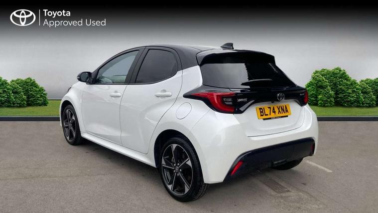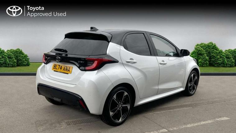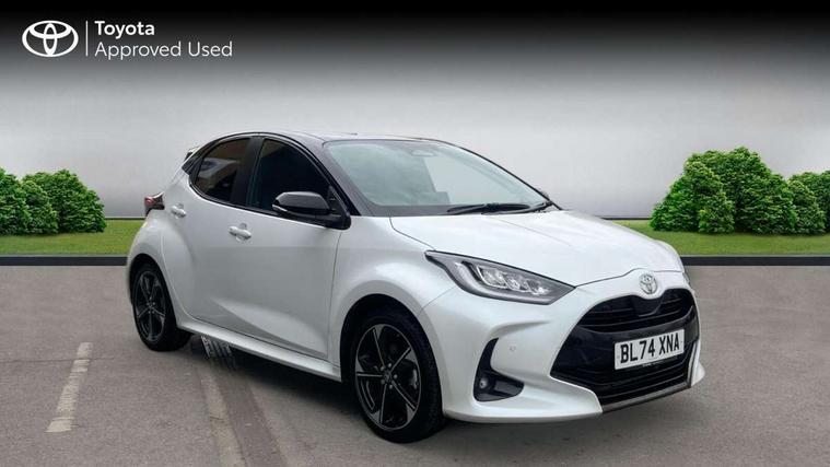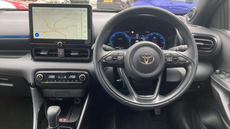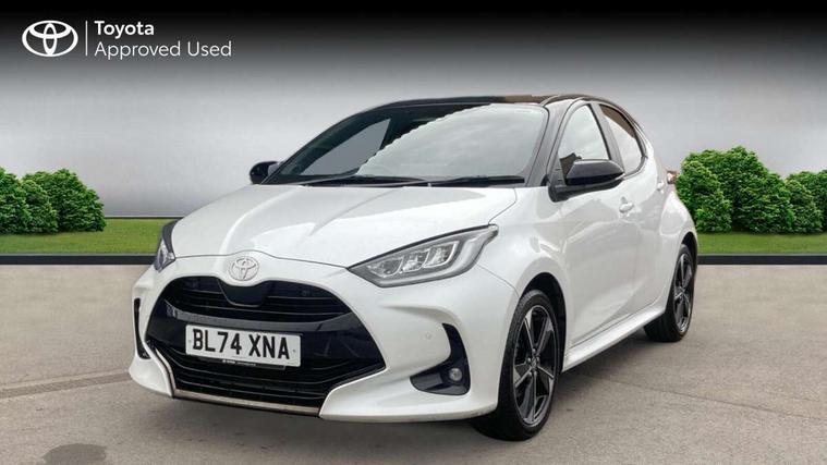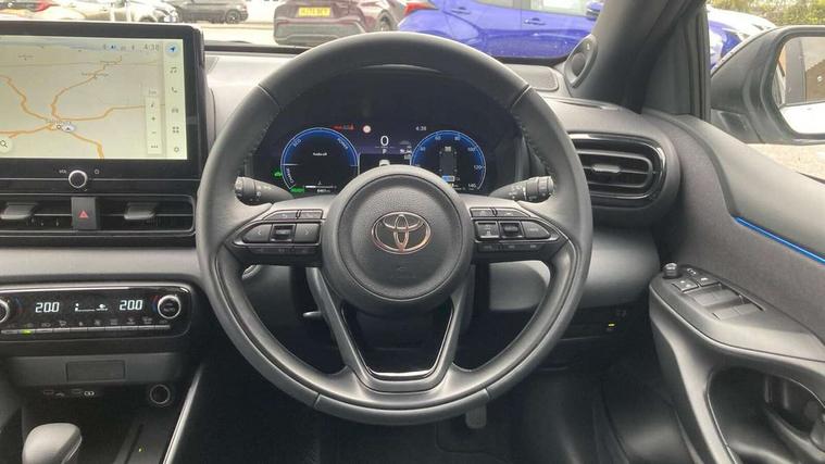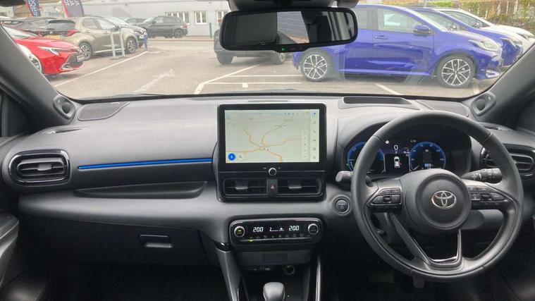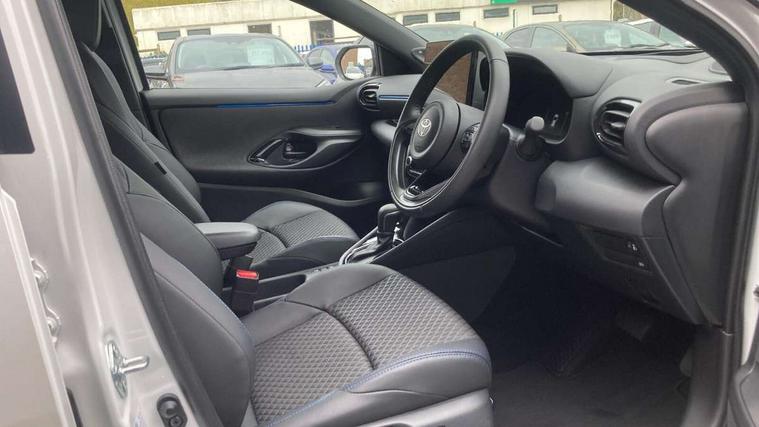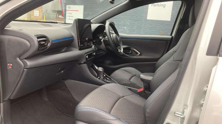 12.3" Digital Combimeter, Adaptive cruise control, Adjustable speed limit with speed warning, Bluetooth connectivity, Colour binocular inspired displays with digital speedometer, E-call, Electric power steering, Head up Display, Hybrid energy display, Multi information display switches on steering wheel, Reversing camera, Tailgate, Voice recognition, Wireless charger, Vehicle Stability Control (VSC), 10.5" Toyota smart connect multimedia with wireless smartphone integration incl apple car play and cloud Navigation, 6 speakers, 8 Speakers, JBL speaker system, Toyota Touch 3 system with DAB radio, USB connection, Acoustic windscreen glass, Auto windscreen wipers, Automatic headlights, Body coloured door mirrors, Dark chrome lower meshed front grille, Electric adjustable heated door mirrors, Follow me home headlights, Front auto power windows with anti jam protection, Full LED rear lights, LED daytime running lights, LED front fog lights, LED front light guide, LED Headlights, LED High mounted stop lamp, LED Indicators, LED rear light guide, Manual headlight levelling, Painted chequered front grille with hot stamp in mesh design, Rain sensor, Rear auto power windows with anti jam protection, Rear privacy glass, Rear side wing doors, Rear spoiler, Rear wiper, Shark fin antenna, Turning signal integrated indicators in door mirrors, Variable front intermittent wipers, 3 adjustable rear headrests, 3 seat bench in 2nd row, 3 spoke leather steering wheel, 60/40 split folding rear seat, Active headrests, Adjustable boot height, Black roof lining, Coat hooks in rear grab handles, Cup holders (2 front & door), Data Communication Module (DCM) connected services, Dual zone automatic air conditioning, Front armrest, Front sport seats, Glovebox, Height adjustable driver's seat, Height adjustable passenger seat, Isofix seat fixing, Leather gearshift, Map pockets on the backs of the front seats, Nanoe-X air purifier, Partial leather upholstery, Pollen filter, Shopping bag hooks, Single front passenger seat, Tilt/telescopic steering column, Safety pack - Yaris, 3 point seatbelts on all rear seats, ABS+EBD+Brake assist, Electronic parking brake, Emergency brake light system (EBS), Front passenger airbag on/off switch, Front seatbelt reminder, Hill start assist control (HAC), Rear child proof door locks, Rear seat belt reminder, Supplemental Restraint System (SRS) 8 airbags: Driver & passenger's airbags, dual side curtain airbags, side impact airbags, front centre airbag, Toyota Safety Sense 3 with over the air updates, Tyre pressure warning system, 2x Master key, Alarm/immobiliser, Keyless smart entry with push button start, Remote AC via MyT, Remote locking via MyT, Remote powered central double locking doors, Smart digital key, Piano black interior trim, Soft touch instrument panel, 17" Black Machined-face, 5 double spoke alloys wheels, Space saver spare wheel,