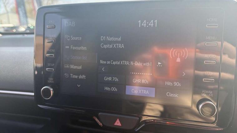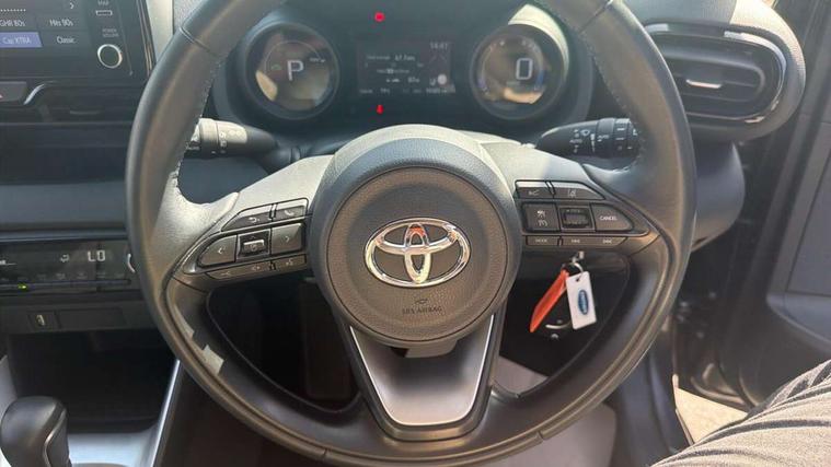 7" Digital Combimeter, Adaptive cruise control, Adjustable speed limit with speed warning, Bluetooth connectivity, Colour binocular inspired displays with digital speedometer, E-call, Electric power steering, Hybrid energy display, Multi information display switches on steering wheel, Reversing camera, Smartphone integration with Apple CarPlay and Android auto, Tailgate, Voice recognition, Vehicle Stability Control (VSC), 4 speakers, 9" Multimedia touch display, Toyota Touch 3 system with DAB radio, USB connection, Acoustic windscreen glass, Auto windscreen wipers, Automatic headlights, Body coloured door mirrors, Electric adjustable heated door mirrors, Follow me home headlights, Front auto power windows with anti jam protection, Full LED rear lights, LED daytime running lights, LED front fog lights, LED front light guide, LED Headlights, LED High mounted stop lamp, LED Indicators, LED rear light guide, Manual headlight levelling, Painted chequered front grille, Rain sensor, Rear auto power windows with anti jam protection, Rear privacy glass, Rear side wing doors, Rear spoiler, Rear wiper, Shark fin antenna, Turning signal integrated indicators in door mirrors, Variable front intermittent wipers, 3 adjustable rear headrests, 3 seat bench in 2nd row, 3 spoke leather steering wheel, 60/40 split folding rear seat, Active headrests, Adjustable boot height, Auto air conditioning, Coat hooks in rear grab handles, Cup holders (2 front & door), Data Communication Module (DCM) connected services, Fabric upholstery, Front armrest, Glovebox, Grey roof lining, Height adjustable driver's seat, Isofix seat fixing, Leather gearshift, Pollen filter, Shopping bag hooks, Single front passenger seat, Tilt/telescopic steering column, 3 point seatbelts on all rear seats, ABS+EBD+Brake assist, Electronic parking brake, Emergency brake light system (EBS), Front passenger airbag on/off switch, Front seatbelt reminder, Hill start assist control (HAC), Rear child proof door locks, Rear seat belt reminder, Supplemental Restraint System (SRS) 8 airbags: Driver & passenger's airbags, dual side curtain airbags, side impact airbags, front centre airbag, Toyota Safety Sense 3 with over the air updates, Tyre pressure warning system, 2x Master key, Alarm/immobiliser, Remote powered central double locking doors, Soft touch instrument panel, Space saver spare wheel,
