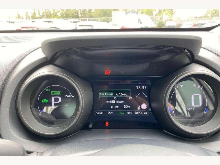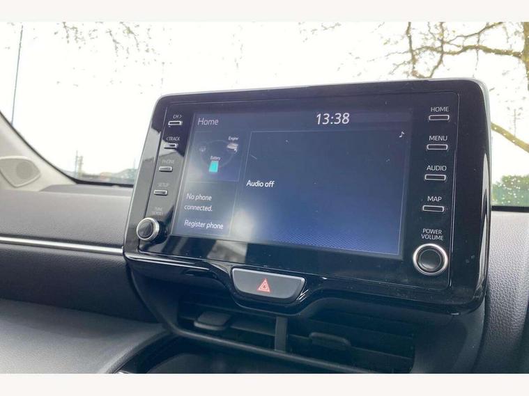 4.2" multi information display, 8" Toyota touch 2 multimedia system with Smartphone integration with Apple CarPlay and Android auto, Adjustable speed limiter, Bluetooth connectivity, Digital speedometer, Driver attention alert system, eCall emergency system, Electric power steering, Full range intelligent adaptive cruise control, Hybrid system indicator, Key reminder warning, Lane trace assist, Multimedia, audio, telephone and voice recognition switches on steering wheel, My T Connected services, Pre-collision system enhanced with emergency steering assist, Reversing camera, Road sign assist - RSA, Steering assisted vehicle stability control, 6 speakers, DAB Digital radio, USB connection, 3rd brake light, Acoustic windscreen glass, Anti-jam protection on power windows, Auto high beam [AHB] with on/off switch, Automatic headlights, Black lower front grille, Black Shark-fin antenna, Black upper front grille, Black wheel arch mouldings, Body colour door handles, Body colour front bumper, Body colour rear bumper, Electric adjustable heated door mirrors, Follow me home headlights, Front and rear electric windows with auto up/down function, Front intermittent wipers, Halogen projector headlights, Headlight cut off reminder, Indicators integrated on door mirrors, Intermittent rear wiper, LED daytime running lights, LED Indicators, Manual headlight levelling, Manually retractable door mirrors, Noise reduction layer on windscreen, Rain sensor, Rear side wing doors, Rear spoiler, Rear window defogger, 12v power outlet - front, 2x Rear coat hooks, 3 seat bench in 2nd row, 3 spoke leather steering wheel, 60/40 split folding rear seat, Adjustable speed limiter switch on steering wheel, Auto air conditioning, Boot light, Central armrest, Driver and front passenger personal lights, Fabric door trim, Fabric upholstery, Front console box, Front cup holders, Front head restraints, Glovebox, Grey roof lining, Height adjustable driver's seat, Height adjustable front passenger seat, ISOFIX child restraint system, Lane departure alert switch on steering control, Leather gearshift, Manual telescopic and tilting steering wheel, Mirror on driver and passenger sun visor, Pollen air filter, Rear head restraints, Single front passenger seat, Soft tonneau cover, 3x3 point rear seat belts, ABS+EBD+Brake assist, Driver and passenger central airbags, Driver and passenger front airbags, Driver and passenger side airbags, Electronic parking brake, Emergency brake light system (EBS), Front seat belt reminder, Hill start assist control (HAC), Passenger airbag on/off switch, Pre-collision system with pedestrian and cyclist detection, Rear door child safety locks, Rear passenger side airbags, Rear seat belt reminder, Traction control, Tyre pressure warning system, Immobiliser, Intrusion alarm, Keyless smart entry with push button start, Power door locks, Power passenger window lock, Remote door lock, 16" 10 spoke alloy wheels, Tyre repair kit,