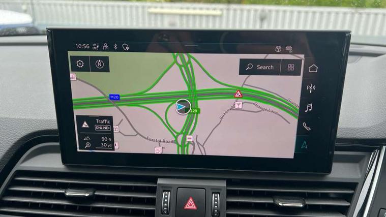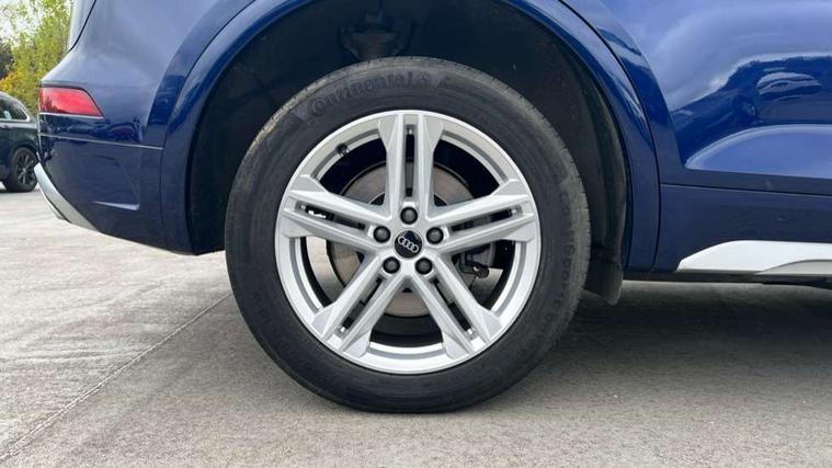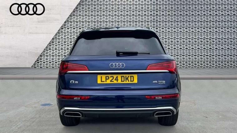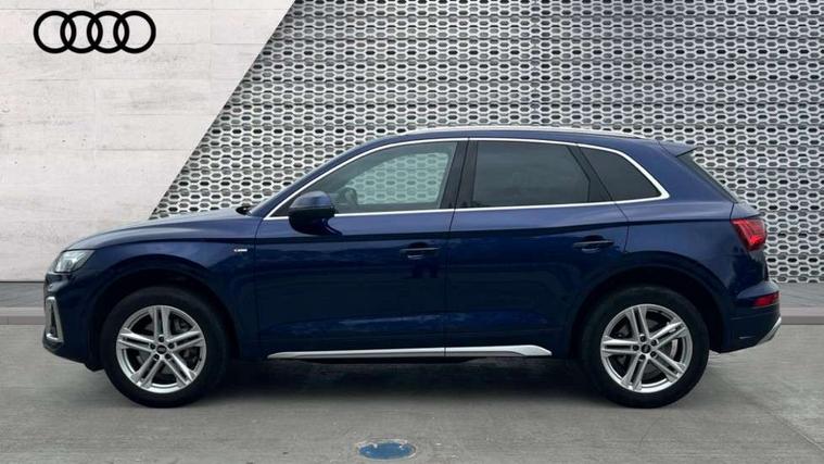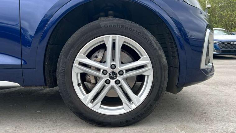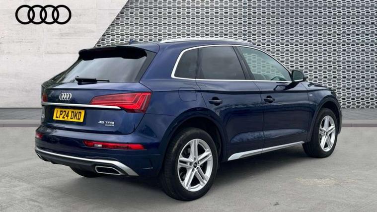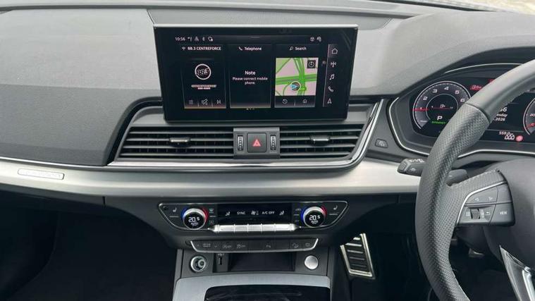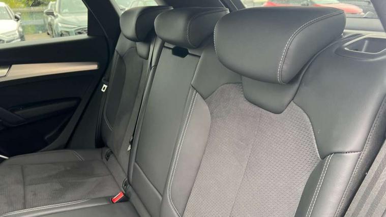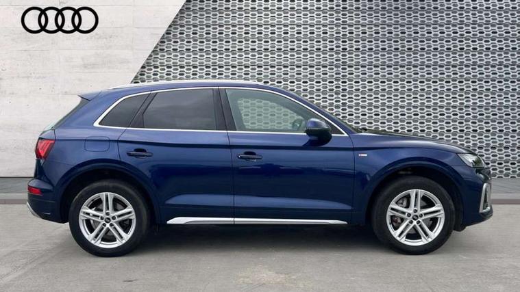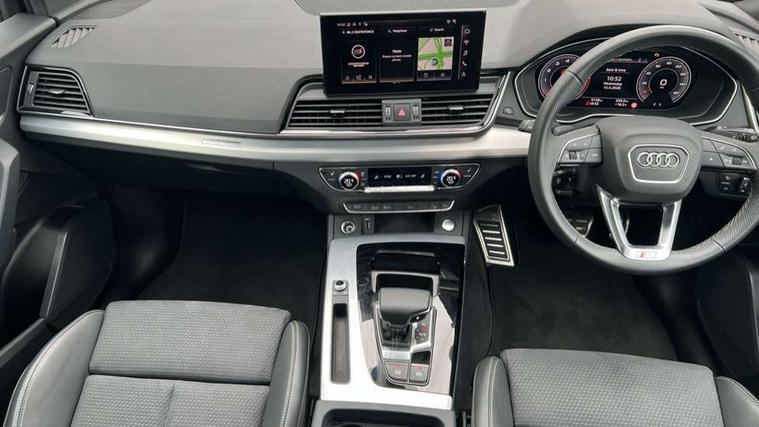 Acoustic front and rear parking sensor, Audi connect safety and service (e-call), Audi drive select, Audi virtual cockpit plus with 12.3" screen and three different layout designs, Audi wireless smartphone interface, Automatic start-stop system with coasting functionality and efficiency programme, Bluetooth interface, Camera based traffic sign recognition, Electro - mechanical power assisted steering, Lane departure warning, MMI navigation plus with 10.1" touch screen, Power tailgate, Reversing camera, Service interval indicator, Voice control system with Audi hotword activation "Hey Audi", Quattro on demand, S line sports suspension, 2 x USB charging port with aux input socket, 8 loudspeakers, DAB Digital radio, Acoustic windscreen, Aluminium roof rails, Auto dimming door mirrors, Auto dimming frameless rear view mirror, Automatic headlight adjustment, Automatic headlights and windscreen wipers, Body colour bumpers, Body colour door mirrors, Body colour rear diffuser with matt aluminium silver surrounds, Body colour underbody protection, Chrome plated exhaust trims, Daytime running lights, Door sills in Selenite silver, Electric adjustable/heated/folding door mirrors, Front air inlet surrounds in aluminium, Front and rear electric windows, Front radiator grille in honeycomb design, LED 3rd brake light, LED headlights and LED tail lights, Loading edge protection in stainless steel, Lower bumpers painted in contrast Manhattan grey, Rear chrome trim strip below lights, Rear privacy glass and rear side windows, Rear side wing doors, Rear wiper, Roof bars, S Line badges on the front wing panels, S Line front and rear bumpers, S Line rear spoiler, S Line side skirts, 3 rear headrests, 3 spoke leather multifunction steering wheel with S badging perforated leather grips, Black cloth headlining, Comfort front centre armrest, Contrast stitching on seats, steering wheel and gear lever gaiter, Deluxe 3 zone electronic climate control, Front head restraints, Front sport seats with S embossed logo, Front/rear floor mats, Gear lever in black leather, Heated front seats, Height/reach adjustable steering column, Illuminated door sill trims with S logo, Luggage compartment cover, Manual seat adjustment with 4-way electric lumbar support, Single front passenger seat, Stainless steel pedals, Sunvisors with vanity mirrors, Top surface of the rear centre armrest in artificial leather, High gloss pack - Q5, LED interior light pack - Q5, 3 point seatbelts on all seats, 6 airbags - Driver, front passenger, curtain and side airbags, Attention and drowsiness assist, Electrically operated child locks on rear doors, Electromechanical parking brake, Electronic stabilisation control including ABS, ASR and EDL, First aid kit with warning triangle and vests, Front passenger airbag deactivation, Hill descent control, Hill hold assist, ISOFIX child seat mounting for front passenger seat and ISOFIX child seat mounting with Top Tether for outer rear seats, Multi collision brake assist, Pop-up bonnet for pedestrian protection, Pre sense city, Seatbelt monitoring, Tyre pressure warning, Anti theft alarm, Anti-theft wheel bolts, Remote central locking, Remote control key with SAFELOCK and keyless go, Air vents inserts and centre console in gloss black, Matt brushed aluminium inlays, Tool kit, Tyre repair kit,