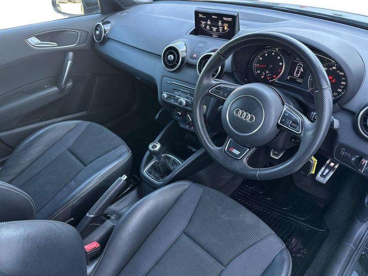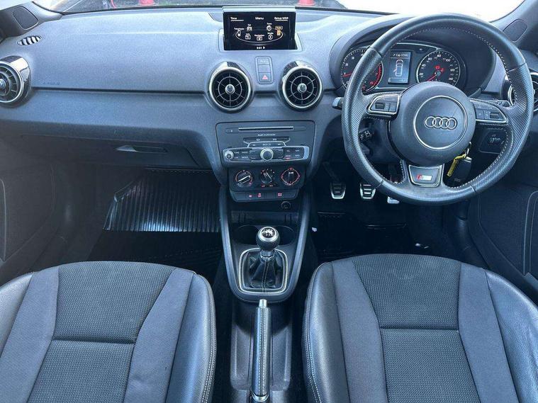 Audi drive select, Cruise control, Driver's information system, Electro-mechanical PAS, Low washer fluid indicator, Service interval indicator, Voice control system, Additional SD card reader, Audi music interface, Bluetooth audio streaming, DAB Digital radio, Adaptive brake lights, Body coloured bumpers, Body coloured door mirrors, Electric adjustable door mirrors, Electric front windows, Electric rear windows, Front fog lights, Heat insulating glass, Heated door mirrors, Heated rear windscreen, Rear diffuser, Rear wiper, Roof spoiler, S Line body styling, Xenon plus headlights including automatic headlights, LED daytime running lights, LED rear lights, dynamic range control and headlight washers, 12V Accessory socket in centre console, Adjustable rear head restraints, Black cloth headlining, Cupholders in centre console, Door sills trims with aluminium inlays, Front floor mats, Front head restraints, Height adjustable front seats, Illuminated glovebox, Isofix attachments on outer rear seats, Jack and tool kit, Leather handbrake, Lumbar adjustment for front seats, Rake/reach adjustable steering wheel, Split folding rear seats, Non smoking pack - A1, ABS/EBD, Brake assist function, Driver and passenger side airbags, Driver/Front Passenger airbags, EDL, ESP with ASR, First aid kit, Front and rear seatbelt reminder, Front passenger airbag deactivation, Head airbags, Height adjustable front seatbelts, Tyre pressure monitor, Warning triangle, Locking wheel bolts, Remote control central locking, Thatcham category 1 alarm + immobiliser, Tyre repair kit,
