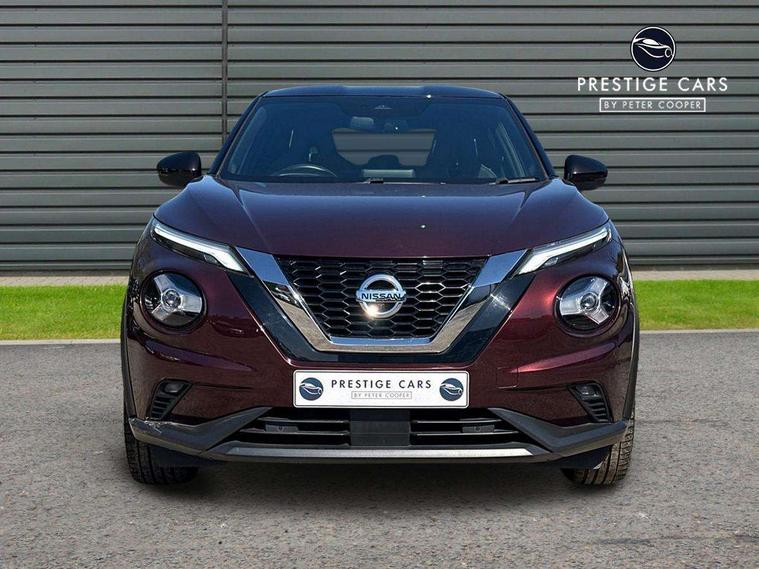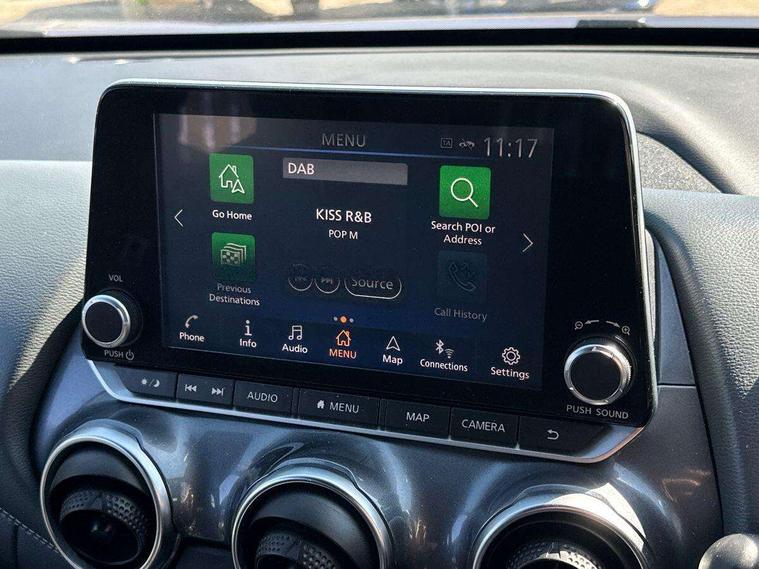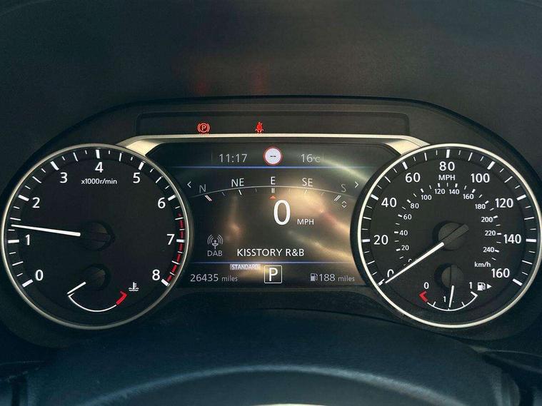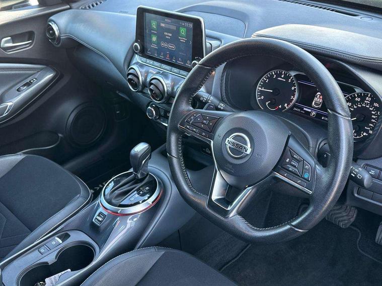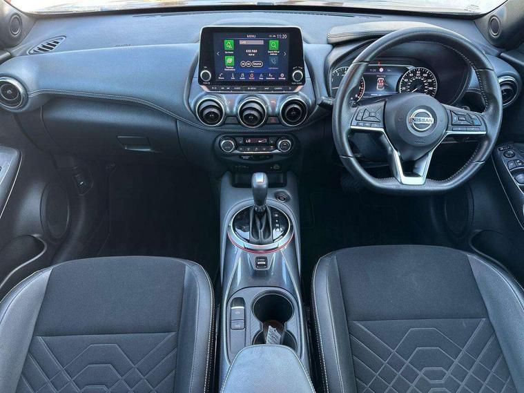 7" full colour TFT screen combimeter, 8" infotainment colour display with touch screen, Apple CarPlay and Google Android auto, Drive modes select (Eco, normal and sport), Emergency and breakdown call, Front parking sensor, Idle start/stop system, Intelligent lane intervention, Lane departure warning system, Nissan connect nav with TomTom traffic, Nissan connect services and Wifi connection, Outside temperature sensor, Power Steering, Rear parking sensor, Traffic sign recognition, Trip computer, Gasoline particulate filter, Bluetooth system, USB, Aux-in and 12V socket, Bose personal plus audio system with 8 speakers(4 speakers and 2 headrest speaker for driver and passenger seats), Bose personal sound stage control, DAB Digital radio, Rear console USB port, Auto dimming interior rear view mirror, Automatic hazard signal with emergency stop signal, Body colour bumpers, Body colour door handles, Electrically adjustable door mirrors with integrated indicators, Follow me home headlights, Front and rear electric window with one touch driver and passenger window, Heated and auto folding door mirrors, High beam assist, LED daytime running lights, LED front fog lights, LED headlamps, LED rear fog lamp, LED rear lamps, Rain sensor windscreen wipers, Rear privacy glass, Rear spoiler, Rear wiper, Thermaclear heated windscreen, Three blink turn signal, 3 height adjustable rear headrests, 60/40 split folding rear seat, Automatic climate control, Card holder on driver sunvisor, Cloth/Synthetic leather upholstery, Door ambient lighting, Driver and passenger sliding and reclining seats, Driver seat back pocket, Driver side rear coat hanger, Driver/passenger sunvisors and illuminated vanity mirrors, Front and rear cabin lights, Front armrest, Front door pockets with bottle holders, Front head restraints, Front passenger isofix child seat anchorage point, Front/rear passenger grab handles, Gear console ambient circle lighting, Grey synthetic leather kneepad, Heated front seats, Height adjustable driver's seat, Height adjustable passenger seat, Internal chrome door handles, Leather gearshift knob, Leather steering wheel, Luggage board, Luggage space lighting, Monoform sporty seats, Multifunction steering wheel, Passenger seat back pocket, Rear door bottle holders, Steering wheel mounted gearshift paddles, Telescopic steering wheel adjustment, Two cupholders in front centre console, Two rear isofix child seat anchorage points with top tether, Voice recognition switch on steering wheel, Welcome light and console tray ambient lighting, ProPilot pack - Juke, ABS with EBD and brake assist, Active ride control, Active Trace Control, Driver and passenger airbags, Driver and passenger side airbags, Electric handbrake with auto hold function, Electronic Stability Programme (ESP), Front and rear curtain airbags, Height adjustable seatbelts, Hill start assist, Intelligent emergency braking with pedestrian and cyclist recognition, Seatbelt reminder for driver/front passenger and rear seats, Single tone horn, Three 3 point rear seatbelts, Traction control, Tyre pressure monitoring system, VDC Dynamic Vehicle Control, Ventilated rear brake discs, Alarm, Immobiliser, Intelligent Key with push button starter, Remote central locking,