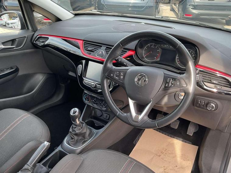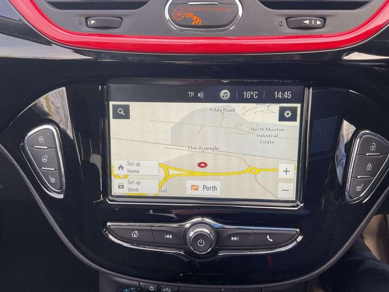 Apple car play/Android Auto, Bluetooth system, Central facia display, Cruise control + speed limiter, Digital fuel gauge with low fuel warning light, Digital water temperature gauge, Electric speed sensitive power steering, Exterior temperature gauge, Lights on audible warning, Navi 4.0 IntelliLink navigation with 7" touchscreen, traffic program, DAB , USB, Bluetooth audio streaming, Apple CarPlay/Android auto, and microphone, Rev counter, Service indicator, Speed warning indicator, Speedometer, Trip computer, White graphics on black background, Front anti roll bar, Sports suspension, Six speakers, Steering wheel mounted audio/cruise controls, Automatically dimming anti dazzle rear view mirror, Black door mirrors, Black foil on B-pillars, Black front grille logo bar, Black roof, Body colour bumpers, Body colour door handles, Chrome front grille, Dark tinted rear windows, Dipping rear view mirror, Door to door illumination, Electric adjustable/manual folding door mirrors (wide angle on driver's side), Electric headlight beam leveling, Electrically operated front windows with safety auto reverse/one touch facility, Front fog lights with black surround, Front fog lights with chrome surrounds, Griffin badges, Halogen headlights, Hazard warning lamps, Headlamp levelling, Heated rear window, Heated windscreen, High level LED centre brake light, Intermittent rear wash/wipe, Laminated windscreen, LED daytime running lights, Mineral black door mirror housings, Rain sensitive windscreen wipers, Rear fog lights, Rear wiper, Side window demist vents, Tinted windows, Two speed windscreen wipers with variable intermittent wipe, Welcome lighting, Windscreen demist vents, 12V electrical accessory socket in front, 3 spoke steering wheel, Air conditioning, Anti submarining ramps in all seats, Centre console with cupholders, Chrome gear knob, Chrome interior door handles, Comfort front seats, Driver's and front passenger's sunvisors, Driver's and front passenger's tiltable assist handles, Driver's and passenger's vanity mirrors with flip up cover, Driver's vanity mirror, Four adjustable facia vents, Front courtesy lights, Front door pockets, Front map reading lights, Front seat belt pre-tensioners with load limiters, Glovebox with lid, Grab handles, Griffin branded floor mats, Heated front seats, Height adjustable driver's seat, Height adjustable front headrests, Height adjustable rear head restraints with adjustable backrest, Illuminated luggage compartment, Instrument panel light dimmer, Interior tailgate handles, Isofix child seat mounting points on outer rear seats, Lace cloth trim, Load restraining lashing points, Luggage compartment cover, Multi function steering wheel, One piece folding rear seat, Pollen filter, Reach + rake adjustable steering column, Rear bottle holder, Rear courtesy lights, Rear reading lights, Reclining front seats, Sports front seats, Storage box on driver's side lower facia, Stowage facility for luggage compartment cover behind rear seats, Twin gas assisted tailgate struts, Two rear tiltable passenger assist handles, Sight and light Pack - Corsa, Winter pack - Corsa, Anti-lock braking system (ABS), Brake assist function, Electronic brake force distribution, Electronic Stability Programme, Energy absorbing steering column, Front and rear seatbelt reminder, Front and rear seatbelt unfastened audible warning and warning light, Front seatbelt force limiters, Gas pressure dampers, Height adjustable front seatbelts, Hill start assist, Manual passenger airbag deactivation function, Pedal release system, Rear child proof door locks, Reinforced passenger safety cell, Side impact protection beams, Six airbags - Driver's dual stage airbag/front passenger's dual stage airbag/front seat side impact airbags/full size curtain airbags, Three 3 point rear seatbelts, Three inertia reel lap/diagonal seatbelts, Traction control, Tyre pressure monitoring system, Electronically protected audio, Engine Immobiliser & Deadlocks, Key left in ignition audible warning, Locking wheel bolts, Remote control central locking, Visible vehicle identification number, Rhutenium facia with chrome effect inserts, 16" 4 twin spoke black alloy wheels, Tyre inflation kit,