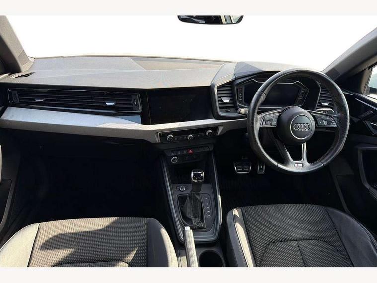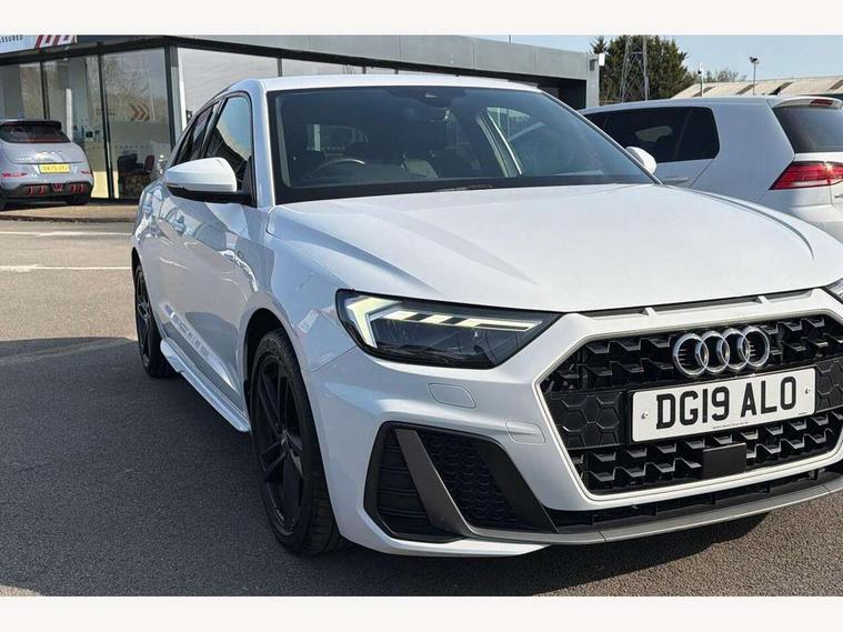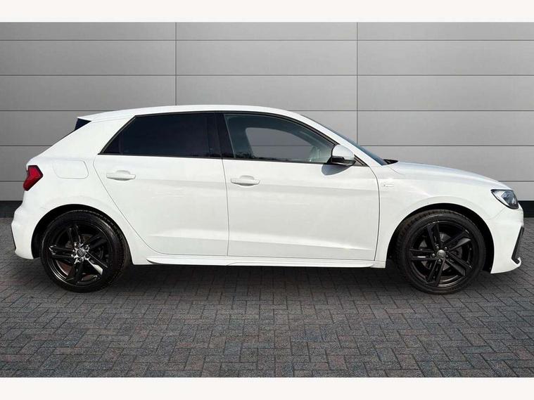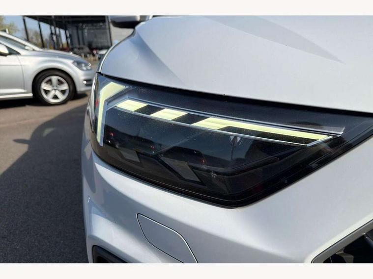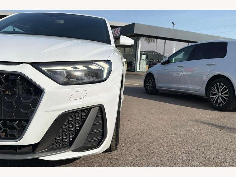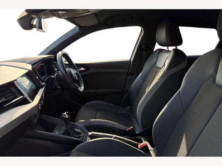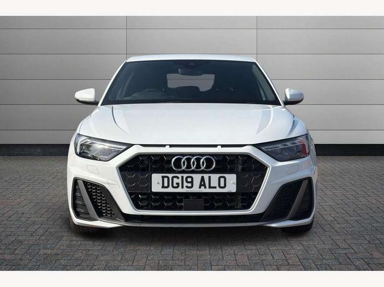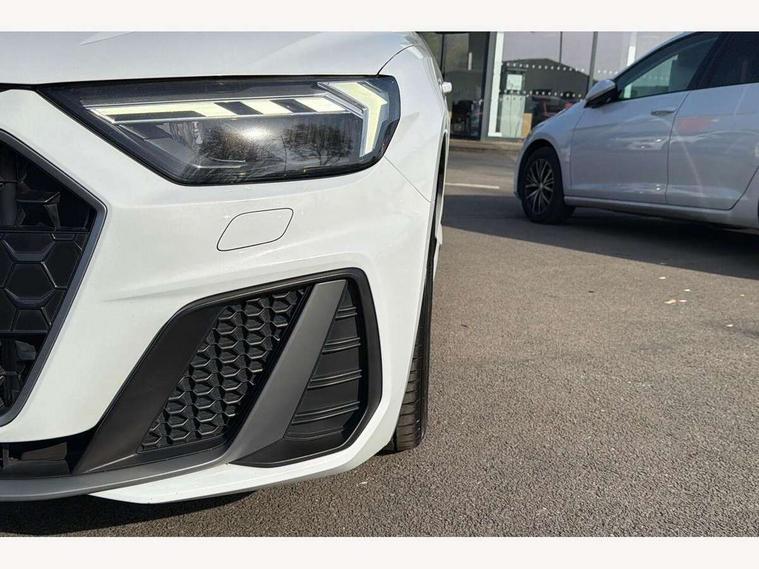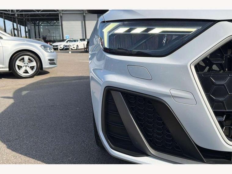 10.25" Digital instrument cluster display screen, Audi connect safety emergency and service including E-call, Audi drive select, Audi smartphone interface, Automatic start/stop system, Bluetooth interface, Driver's information system, Electromechanical power steering, Lane departure warning system, Service interval indicator, Speed limiter, Voice control system, Washer fluid level indicator, Sports suspension, 1 x SDXC card reader, 1 x USB type C and 1 USB type A charging points, Audi music interface, Bluetooth audio streaming, DAB Digital radio, MMI radio plus with 8.8" colour MMI display screen and MMI touch, Auto dimming rear view mirror, Body colour side sill mouldings, Body coloured bumpers, Body coloured door mirrors, Door sills with aluminium inlays and S Line logo, Electric front and rear windows, Front side air inlets in grained matt black and C frame in titanium black, Heat insulating glass windscreen and side windows, Heated rear windscreen, LED headlights with LED rear lights + dynamic rear indicators, Matt aluminium silver tailpipe trim, Matt black radiator grille frame, Matt platinum grey in front spoiler clip and rear diffuser clip, Rain and light sensors, Rear fog lights, Rear wiper, S line badges on front wings, S line exterior bumpers, S line roof spoiler, Side air inlet frames titanium black, Side front spoiler lips in grained matt black, 12V socket in centre console with two cup holders, 3 rear seats, Black cloth headlining, Driver and passenger seat with manual height adjust with forward and backwards adjustment, Front and rear black floor mats with contrast stitching in fine silver, Front head restraints, Height and reach adjustable steering wheel, ISOFIX child seat mounting in front passenger and rear outer seats, Leather gear knob with aluminium trim, Leatherette handbrake grip, Luggage compartment light with front and rear reading lights, Lumbar adjustment for front seats, Rear head restraints, Split folding rear seats, Stainless steel pedals, 3x3 point rear seatbelts, Audi pre-sense front with pedestrain and cyclist recognition, Brake assist function, Driver and front passenger airbag with front side and head airbags, Electronic Stability Control including ABS, EBD, ASR and EDL, Front and rear seatbelt reminder, Front passenger airbag deactivation switch, Hill hold assist, Seatbelt height adjustment for front seats, Seatbelt monitoring, Tyre pressure warning light, Warning triangle and first aid kit, Anti theft alarm, Anti theft wheel bolts and loose wheel warning, Immobiliser, Remote central locking with 2 remote folding keys, Aluminium trim for control switches, air vents and digital instrument cluster, Silver grey inlays polygon structure in diamond paint finish, Structured grey accent areas including air vents, door handle recesses and centre console in quartz paint finish,