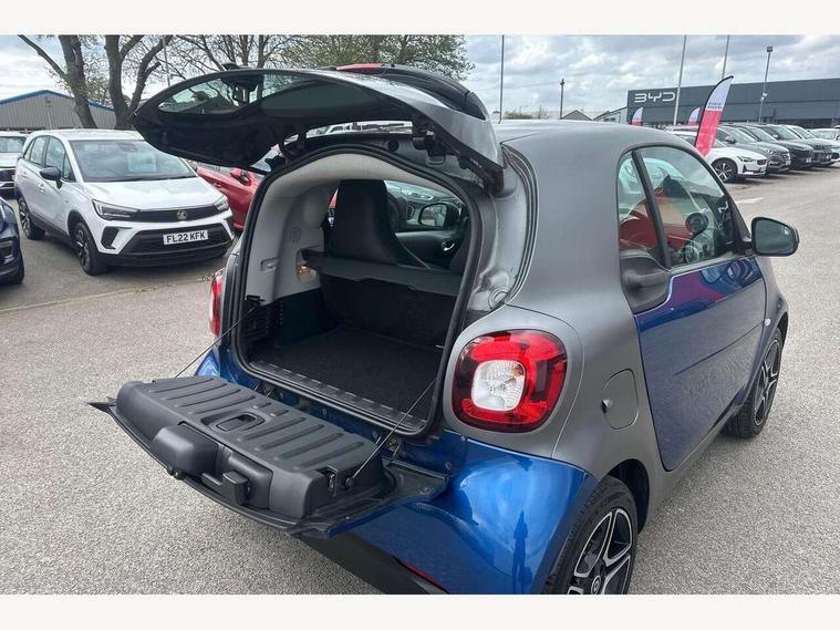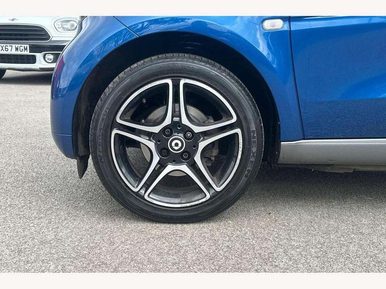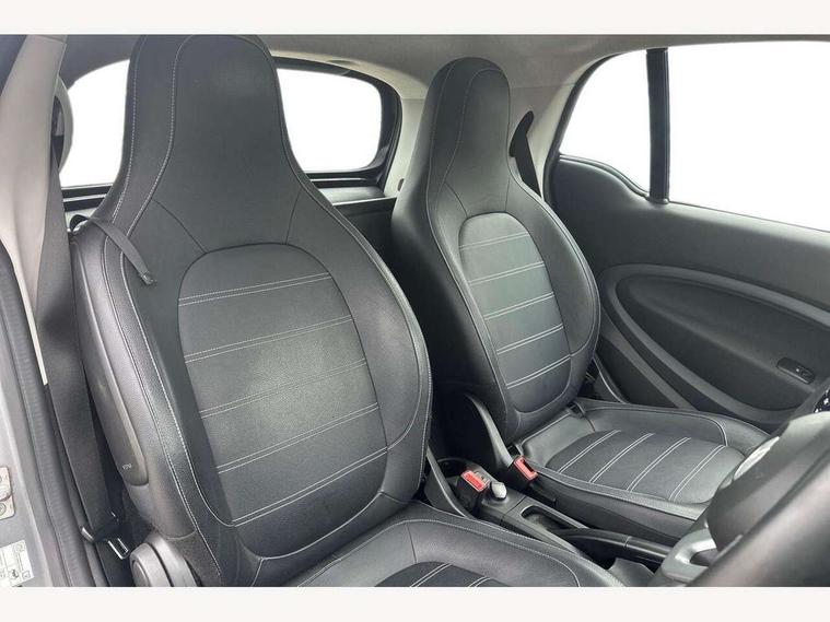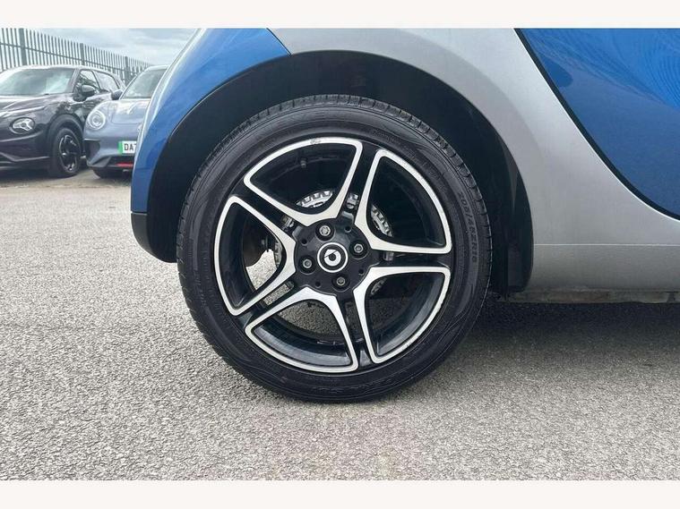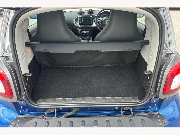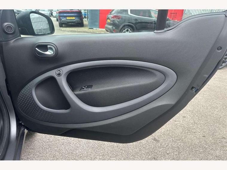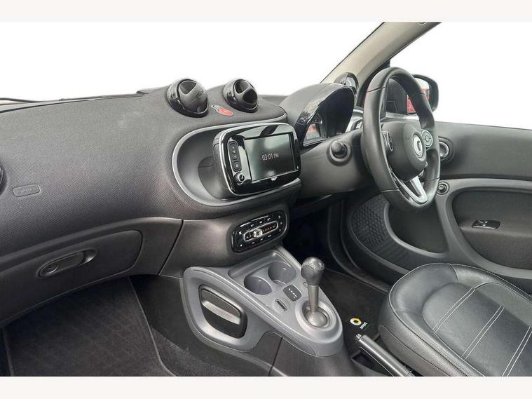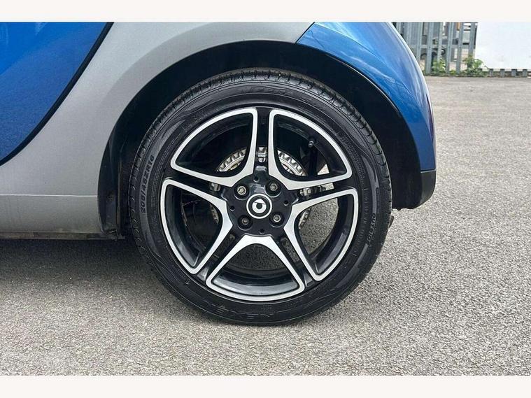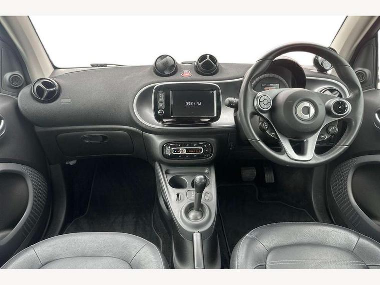 Bluetooth interface for hands free telephone, Cockpit clock and rev counter, Crosswind Assist, Cruise control with speedtronic variable speed limiter, Instrument cluster with display, Mirror link for smart media system, On board computer, Outside temperature display, Rear park assist, Service interval indicator, Smart media navigation with 7" touch screen, Speed sensitive variable PAS, Voice control system, Bluetooth audio streaming, Smart audio system with aux/USB interface, Body coloured bumpers, Driving mirrors in tridion colour, Electric front windows, Heated rear window with timer, LED daytime running lights, Panoramic glass roof with sunblind, Rear spoiler, Rear wash/wipe with intermittent wipe setting, White side indicators, 12V Accessory socket, 2 cupholders, 3 Spoke leather multi function steering wheel, Automatic climate control, Centre console storage tray, Dashboard and door centre panel in black fabric and grey highlights, Driver/passenger sunvisors with ticket holders + vanity mirrors, Front door storage bins, Front head restraints, Front passenger grab handle, Front seat and rear pockets, Heated front seats, Isofix child seat attachment, Leather gear knob, Leather upholstery, Load lashing points, Lockable glovebox, Luggage compartment cover, Luggage compartment lighting, Matt Chrome interior door handles, Reading lights, Storage compartment in tailgate, Sunglasses holder, Through load facility, Comfort pack - ForTwo with Heated door mirrors, 3 point seatbelts, ABS with Brake Assist, Crash sensor (auto switch - on of hazard warning lights/interior lighting), Driver and passenger airbags, Drivers knee airbag, ESP + Hill Start Assist, Front side airbags(head+thorax), Front side/curtain airbags, Seat belt force limiter, Seat belt tensioners, Seatbelt warning, Traction control, Tyre pressure monitoring system, Automatic door locking, Folding key, Immobiliser, Remote central locking, 15" 5 twin spoke alloy wheels painted in black with high sheen finish, Tyre repair kit,