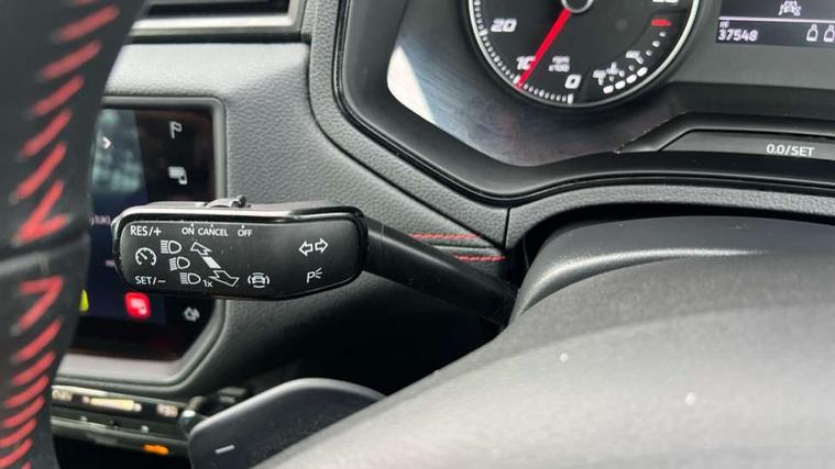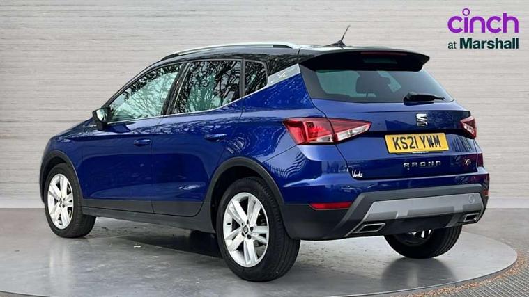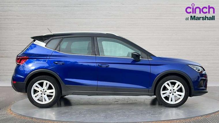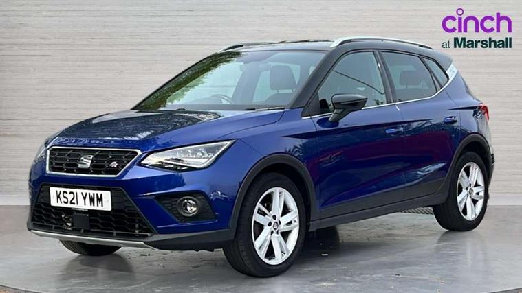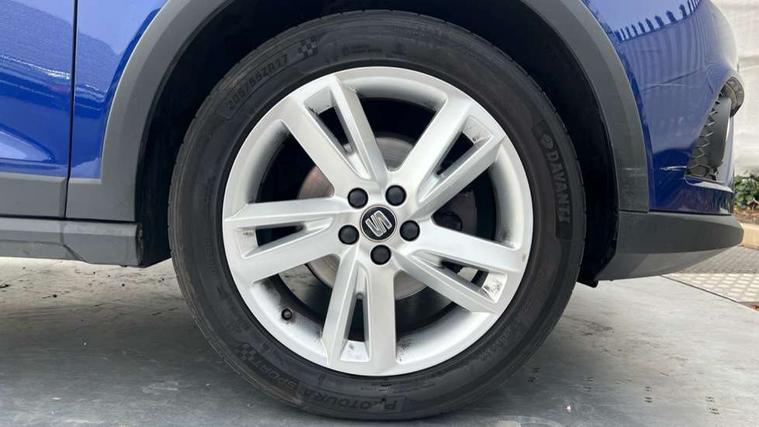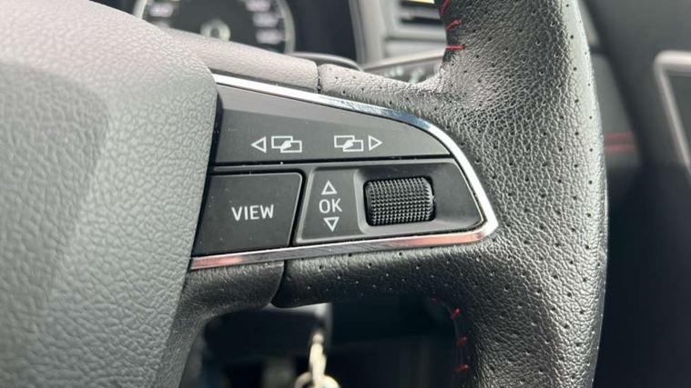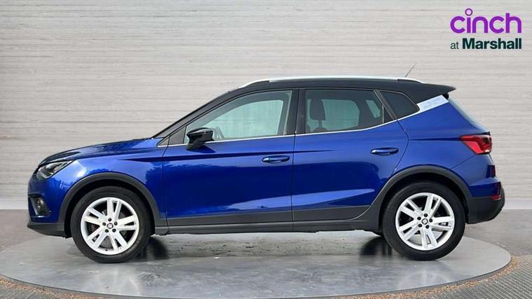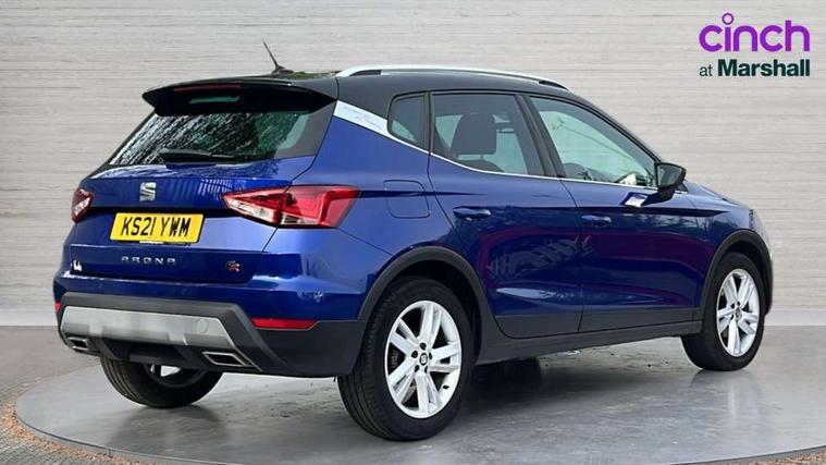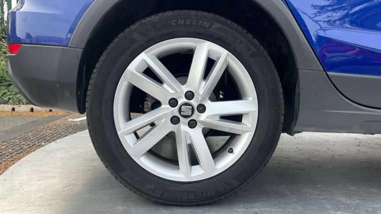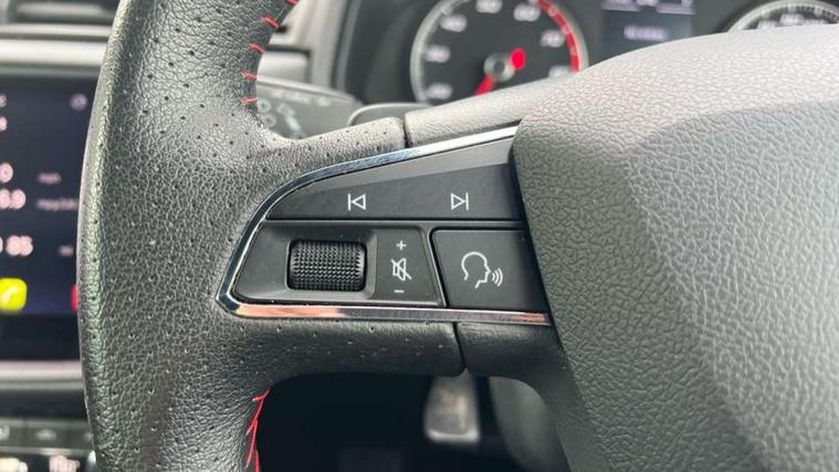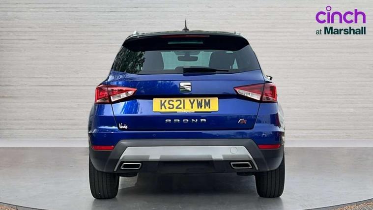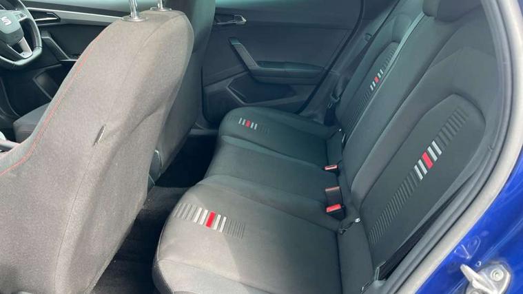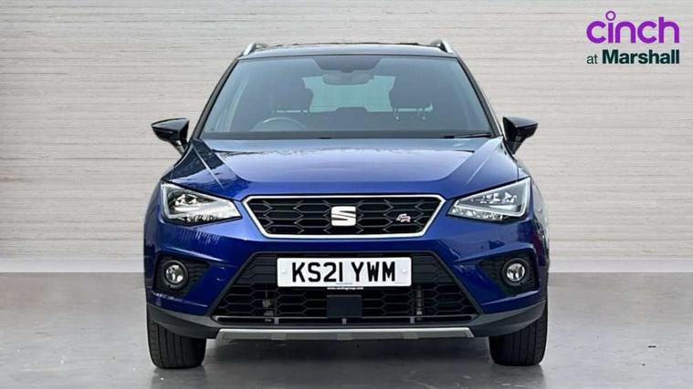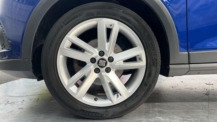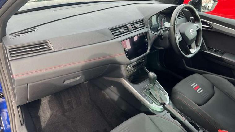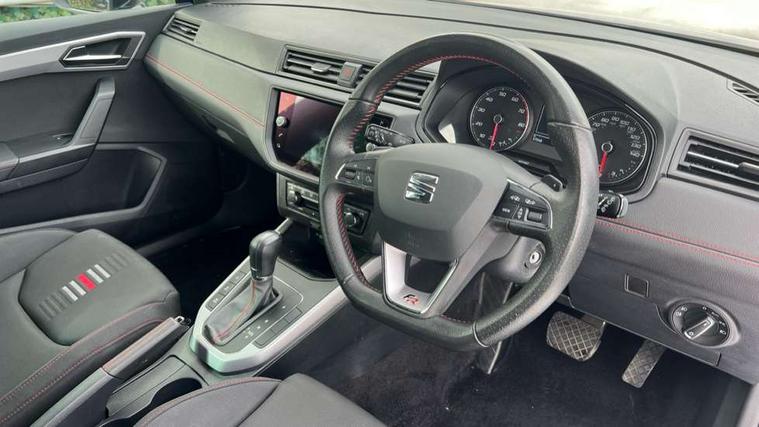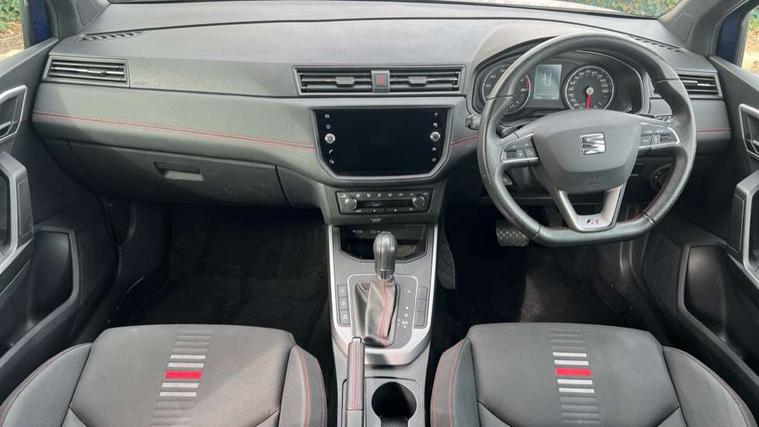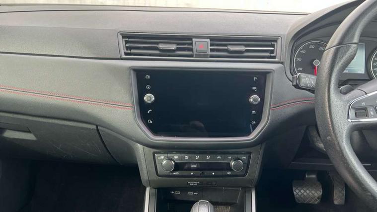 'Lights On' Reminder warning buzzer, Cruise control and speed limiter, Digital clock, Electric speed sensitive power steering, Full Link Smartphone Integration with Mirror Link, Apple Car Play, Google Android Auto with USB Type C cable for Apple and Android compatibility, Low fuel warning light, Outside temperature display, Rear parking sensor, RPM counter, Seat connect with safety, service, remote and online, SEAT Drive profile - Four different models normal-sport-eco-individual, steering response, throttle response and gear shifts mode, Trip computer, Sports suspension, 6 speakers, Bluetooth interface for hands free and audio streaming, DAB digital radio and AM/FM radio, Steering wheel mounted audio controls, Anti theft roof antenna, Auto dimming interior rear view mirror, Automatic activation of hazard warning lights, Automatic headlights, Body coloured bumpers, Body coloured door handle inserts, Chrome front grille frame, Chrome roof rails, Chrome window trim, Coming/leaving home lighting function, Dark tinted rear windows, Electric front/rear windows with one touch/auto up/down, Electrically adjustable, heated and folding door mirrors, Full LED headlights dipped and mainbeam + front and rear fog lights, LED daytime running lights, LED rear tail lights and licence plate lights, Protective side mouldings, Rain sensing wipers, Rear window wash/wipe, Roof colour door mirrors, Twin exhaust pipe styling hidden exhaust pipe, Visible VIN plate, Windshield wiper with intermittent control and potentiometer, 2 cupholders, 60/40 split folding rear seat, Aircare filter, Black interior roof, Double boot floor, Driver sunvisor with covered mirror + card holder, Dual zone climate control, Front courtesy light with front reading lights, Front sport seats, Gear shift indicator, Height adjustable front seats, Height/reach adjustable steering column, Illuminated boot, Instrument lighting with brightness control, Interior light in footwell, central console and door panel, ISOFIX points in outer rear seats with top tether anchorage points, Multi-colour ambient interior lighting, Nora cloth upholstery, Passenger sunvisor with vanity mirror, Perforated flat bottomed leather steering wheel/gear knob/handbrake with red stitching and FR logo, Steering wheel mounted gearshift paddles, Two front and three rear height adjustable headrests, Connectivity pack plus - Arona, Interior chrome pack - Arona, 3 point seatbelts on all rear seats, ABS, Active front headrests, Child locks on rear doors, Driver and front passenger airbags with front passenger airbag de activation, front side and curtain airbags, Electronic stability control, Emergency Brake Assist (EBA) and front assist, Front and rear seatbelt reminder, Hill hold control, Multi-Collision braking, Tiredness recognition system, Traction control, Tyre pressure monitoring system, 2 folding remote keys with window open/close function, Alarm with back-up horn, Electronic engine immobiliser, Locking wheel bolts, Remote central locking + deadlocks, Tow away protection, Interior chrome line trim, Leatherette dashboard, 17" Dynamic alloy wheels,