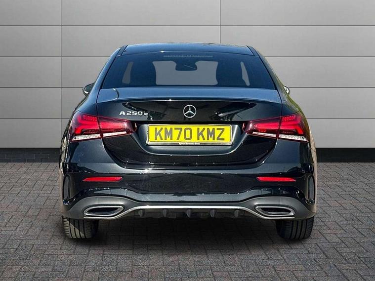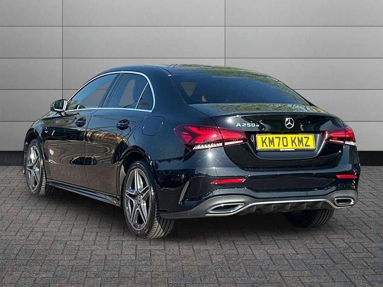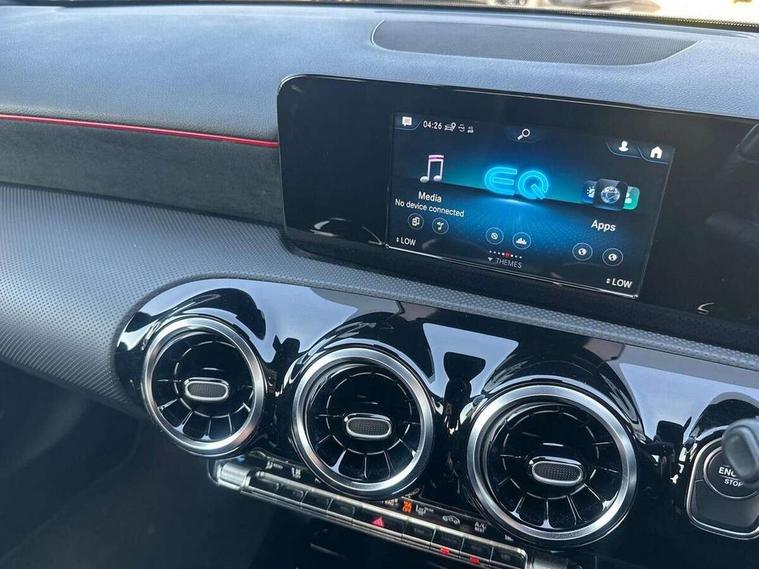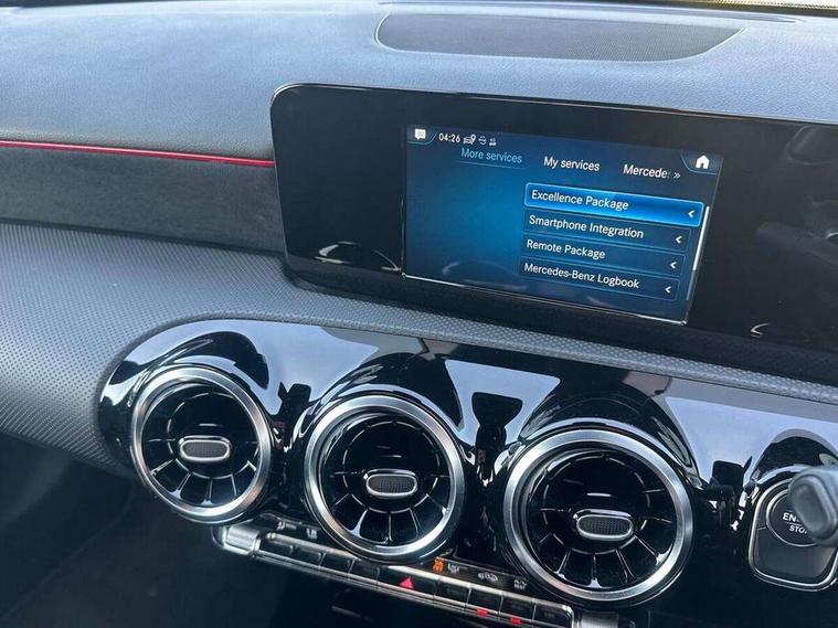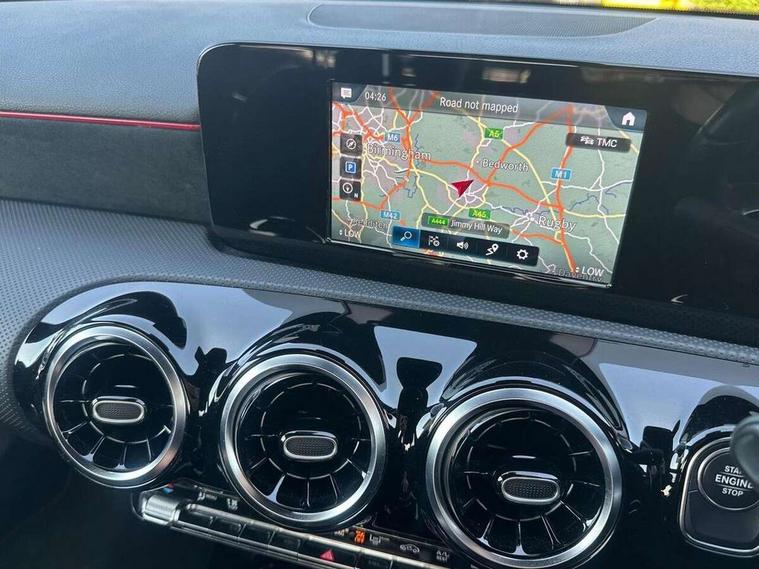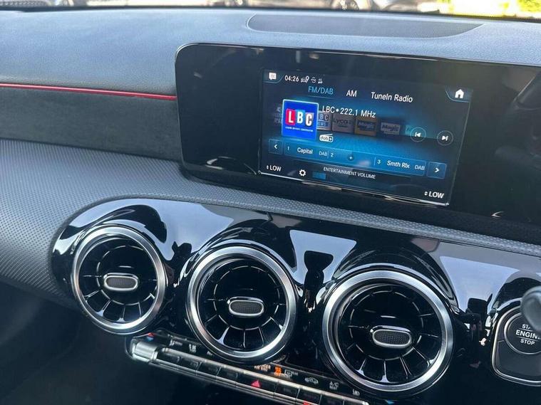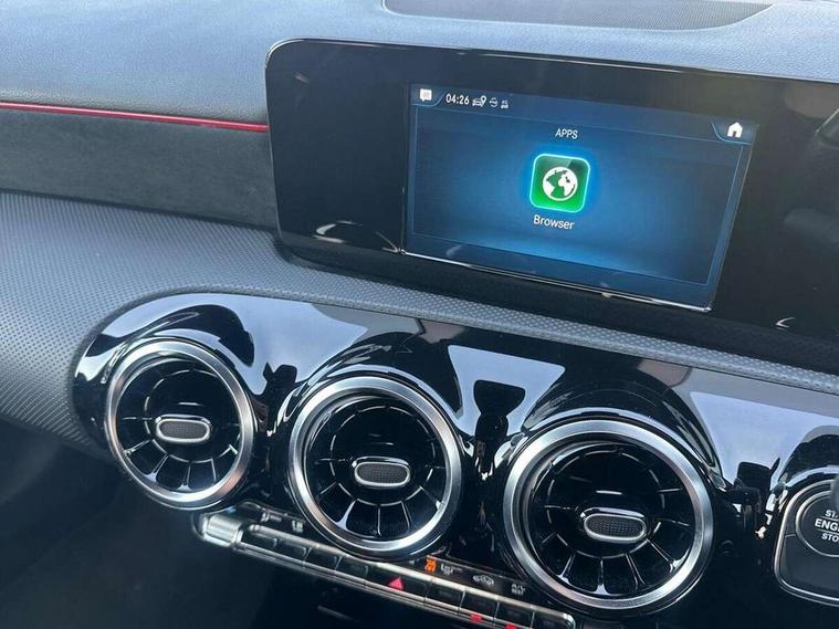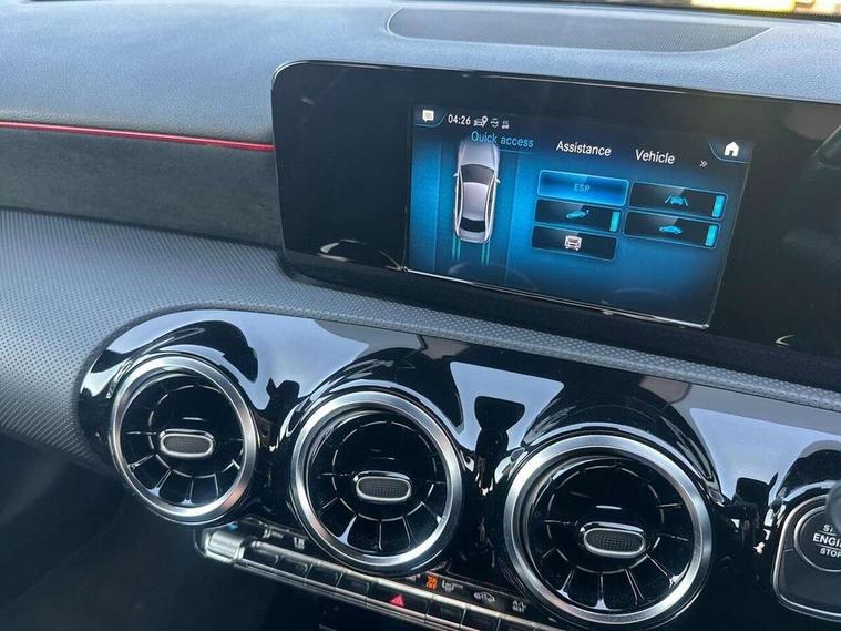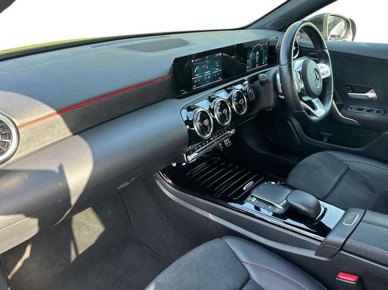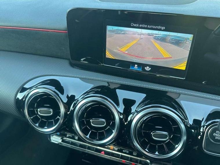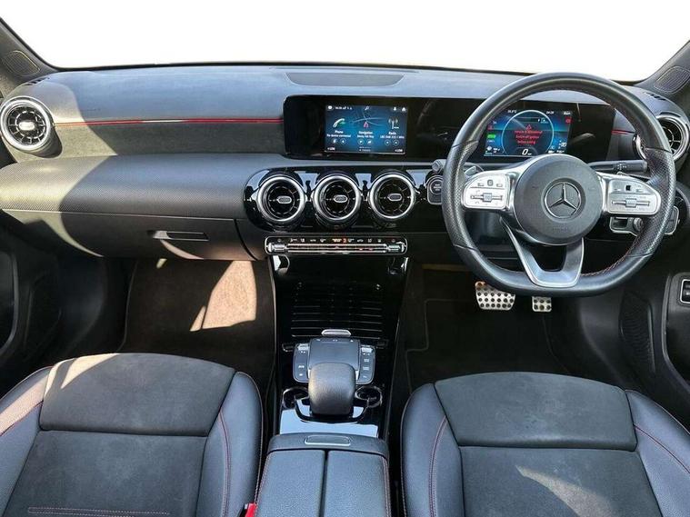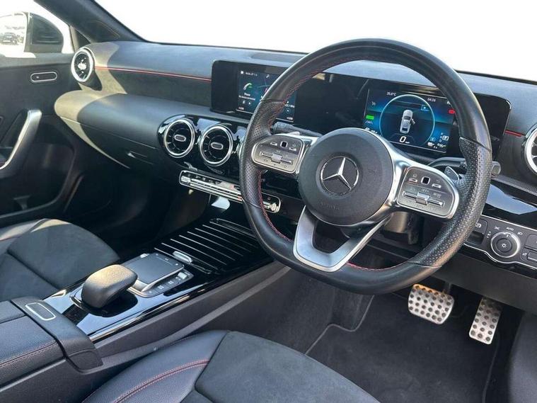 180 degree rear view camera with parking guidelines, 7" colour screen in instrument panel, 7" touchscreen media display, Acoustic ambient protection, Active lane keep assist, Attention assist, Brake pad wear indicator warning light, Car wash mode, Cruise control + speed limiter, Direct steering, Dual bluetooth interfaces, DYNAMIC SELECT with a choice of driving modes (ECO, Comfort, Sport and Individual), ECO start/stop function, Fluid level warning indicator for fuel, oil, coolant and washer fluid, Hard-disk navigation, Hey Mercedes Voice activation, Lamp failure indicator, Mercedes me connect including emergency call system, accident recovery, breakdown management and maintenance, Outside temperature gauge, Owners manual in English, Pre-installation for car sharing, Pre-installation for Vehicle Monitoring, Pre-installation for Vehicle Setup, Preinstallation for Mercedes Benz link, Service indicator (ASSYST), Speed sensitive power steering, Trip computer, 7.4 kW monophase on board charger, Comfort suspension, Mode 3 charging cable 11 kW, Rear axle multi-link, 2 USB ports (type C) in rear stowage compartment and one in front of center console, 6 speakers, DAB Digital radio, MBUX multimedia system with DAB digital radio and touchpad including satellite navigation, Mercedes-Benz sound system - 100W, 4 Electric Front and Rear windows, Adaptive brake lights, AMG bodystyling - Front apron with splitter in chrome, rear apron with chrome trim and chrome visible trim elements in tailpipe, Black weather strip, Body colour bumpers, Body colour door handles, Body colour side skirt, Body coloured door mirrors, Chrome beltline trim, Diamond radiator grille with chrome pins and silver louvre + chrome insert, Electric adjustable and heated door mirrors with integrated LED side indicators, EQ badging, Exhaust system - Twin visible tailpipes in polished stainless steel, Headlamp assist automatic headlamp activation, Heated glass rear windscreen + timer control, LED high performance headlamps with integrated LED daytime running lights, LED tail lamp, LED third brake light, Privacy glass, Radio aerial, Rain sensing windscreen wipers with two sensitivity settings, Rear fog lights, Window line trim strip in chrome, 3 pin charging cable plug, 3 Spoke flat bottom leather multi function steering wheel with perforated leather in grip area, 40:20:40 split folding rear seats, Artico man-made leather/Microfibre Dinamica upholstery with red contrast stitching, Auto Mercedes-Benz child seat recognition sensor, Black air vents with surround in silver chrome, Black roof lining, Brushed stainless steel sports pedals with rubber studs, Charging socket, Controller on centre console with chrome surround, Floor mats with stitched edging and AMG lettering, Front centre armrest with storage compartment, Front door sills with Mercedes Benz lettering, Front seat backs luggage nets, Front seat cushion length adjustment, Galvanished gear shift paddles on steering wheel, Heated front seats, Height/reach adjustable steering column, Interior mirror with reading lamps in black and frameless, ISOFIX and top tether child seat fixing points in two outer rear seats, Manual height adjustable front seats, Pre-entry climate control, Rear head restraints, Seat occupancy sensor for front passenger seat, Sports seats with adjustable head restraints, Stowage compartment in centre console with retractable cover, Sunvisors with illuminated vanity mirrors, Touchpad on center console, Twin front cupholders, Two zone thermotronic luxury automatic climate control, Light and sight pack - A Class, Seat comfort pack - A Class, 3 rear 3 point seatbelts, ABS with Brake Assist, Active bonnet, Active brake assist includes forward collision warning system with autonomous braking, Adaptive brake assist with hold function and hill start assist, Black seatbelts, Childproof locks manually operated for rear doors and electrically operated for rear power windows, Crash responsive emergency lighting, Driver and passenger head and side airbags, Drivers knee airbag, Dual stage driver/passenger airbags, Electronic parking brake, ESP curve dynamic assist, ESP with ASR, Front and rear seatbelt reminder, Front brake callipers with Mercedes Benz lettering, Perforated front brake discs, Radar based regeneration, Tyre pressure monitoring system, Warning triangle and first aid kit, Window airbags, Alarm system/interior protection/immobiliser, Keyless Go, Remote central locking and crash sensor with emergency opening function, Urban guard vehicle protection system with immobiliser and interior protection, Dinamica microfibre trim in black, 18" AMG 5 twin spoke light alloy wheels in titanium grey with highsheen finish, Summer tyres, Tirefit sealant kit,