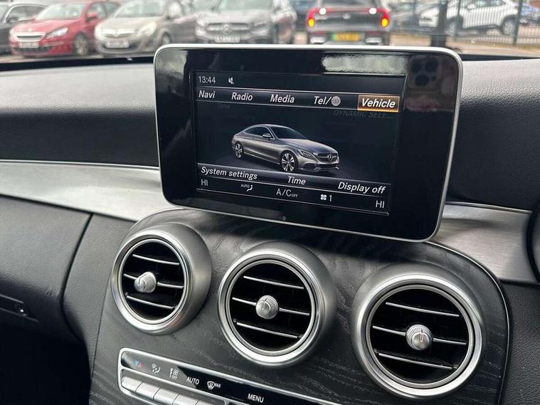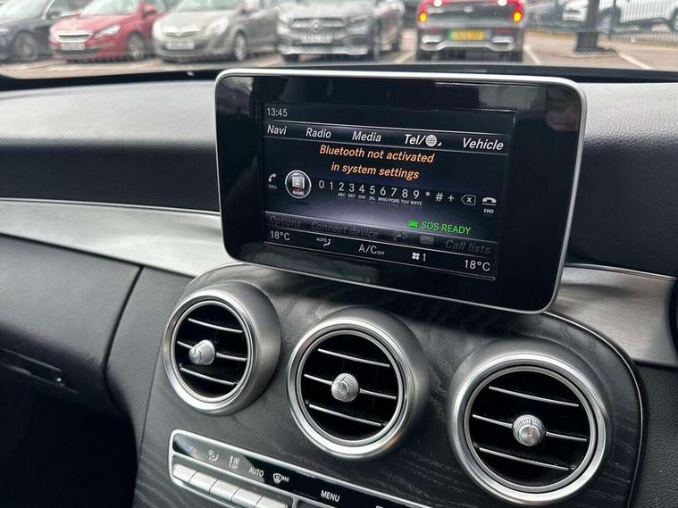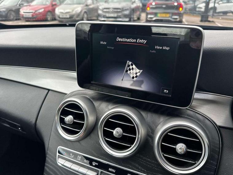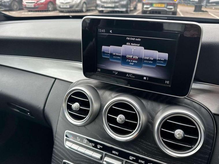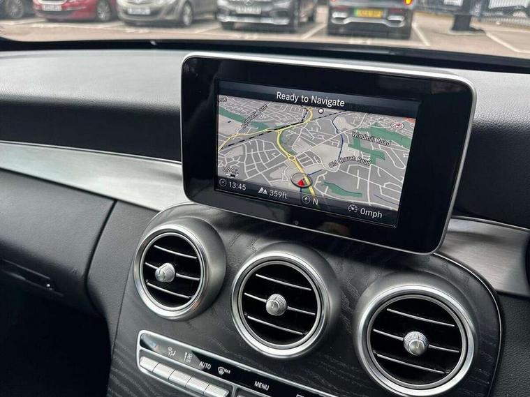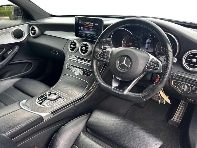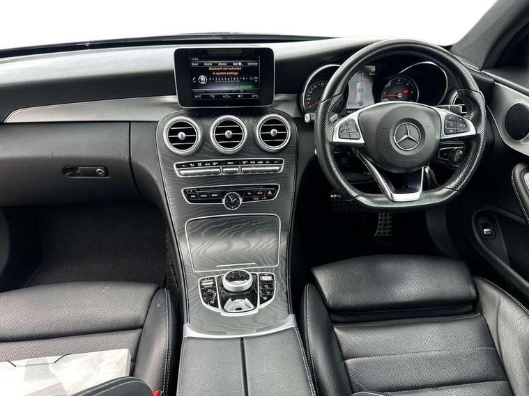 Active park assist with parktronic system, Attention assist, Bluetooth interface for hands free telephone, Collision prevention assist plus, DYNAMIC SELECT with a choice of driving modes (ECO, Comfort, Sport, Sport+ and Individual), Garmin Map Pilot navigation system with SD card, touchpad and voice control, Instrument cluster with 5.5-inch TFT multi-function display, Multi function trip computer, Outside temperature gauge, Remote boot release, Service indicator (ASSYST), Speed sensitive steering, Diesel particulate filter, 2 USB ports, Audio 20 radio/CD with 7" colour display with multi touch keypad, DAB digital radio module, Frontbass loudspeakers, Media interface, Steering column mounted multifunction controls, Adaptive brake lights, AMG front, rear apron and side skirts, Auto dimming driver's door mirror, Auto dimming rear view mirror, Body coloured bumpers, Chrome grille surround, Door sill plates with "Mercedes-Benz" lettering, Electric adjustable/heated/folding door mirrors, Electric windows one touch open/close, Green tinted glass, Heated windscreen washers, LED daytime running lights, LED tail lights, Radiator grille with integral star, Rain sensor windscreen wipers, Side windows surround in polished aluminium, Twin chrome exhaust tailpipes, 2 cupholders in front centre console, 2 rear head restraints, 3 spoke flat bottom multi-function leather AMG steering wheel, 4-way lumbar support for drivers seat, 4-way lumbar support for front passenger seat, 40:20:40 split folding rear seats, AMG floormats, Auto dual-zone climate control system, Auto Mercedes-Benz child seat recognition sensor, Door courtesy lamps, Electric front seats, Electric height adjustable front seats, Front centre armrest with storage compartment, Front footwell illumination, Heated front seats, Height/reach adjustable steering column, Illuminated front/rear door handle recesses, Illuminated glovebox, Isofix rear child seat fastenings, LED reading lights, Sports pedals with stainless steel surfaces and rubber studs, Sports seats with integrated headrests, Steering wheel gearshift paddles, Sunvisors with illuminated vanity mirrors, Seat comfort pack - C Class, Stowage space pack - C Class, 2 rear seatbelts, ABS + BAS, Active bonnet, Adaptive brake system, Brake calipers with Mercedes-Benz lettering + perforated brake discs, Drivers knee airbag, Drivers pelvis airbag, Dual stage driver/passenger airbags, Electronic parking brake, ESP with ASR, Front side airbags, Hill hold control, Hill start assist, Tyre pressure monitoring system, Warning triangle and first aid kit, Window airbags, Alarm system/interior protection/immobiliser, Chrome surround in electric key, Remote central locking, Tyre inflation kit,