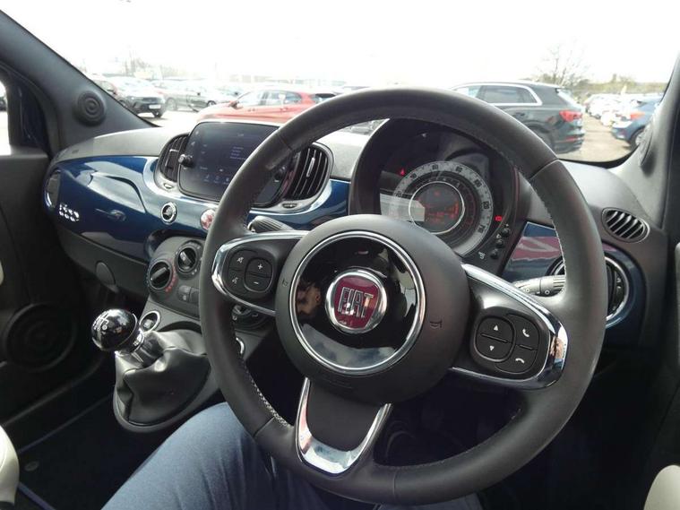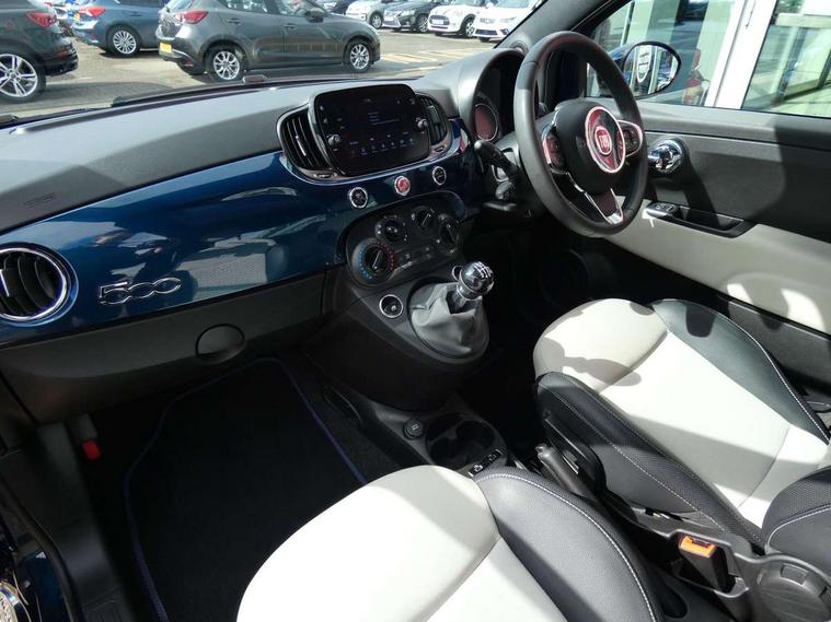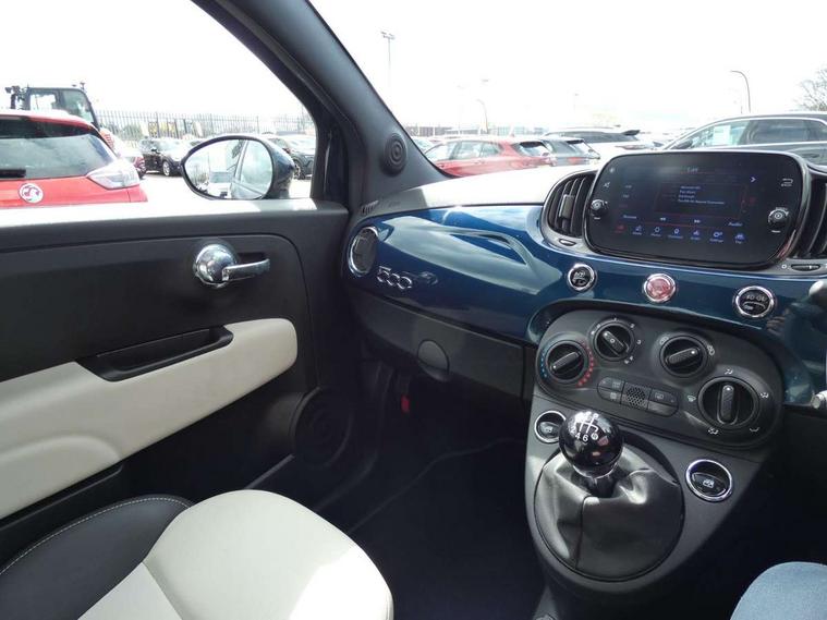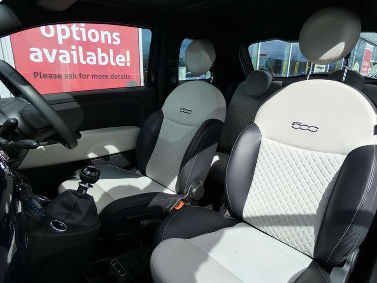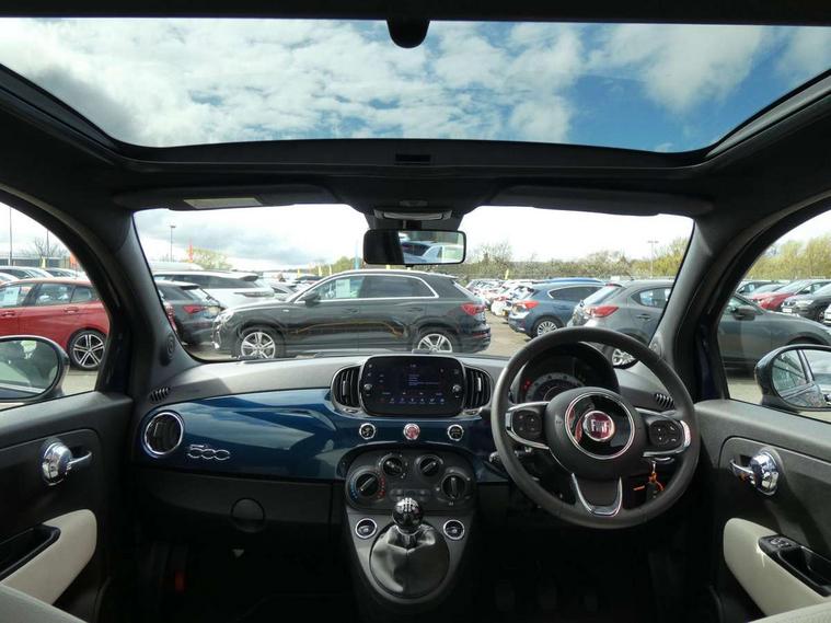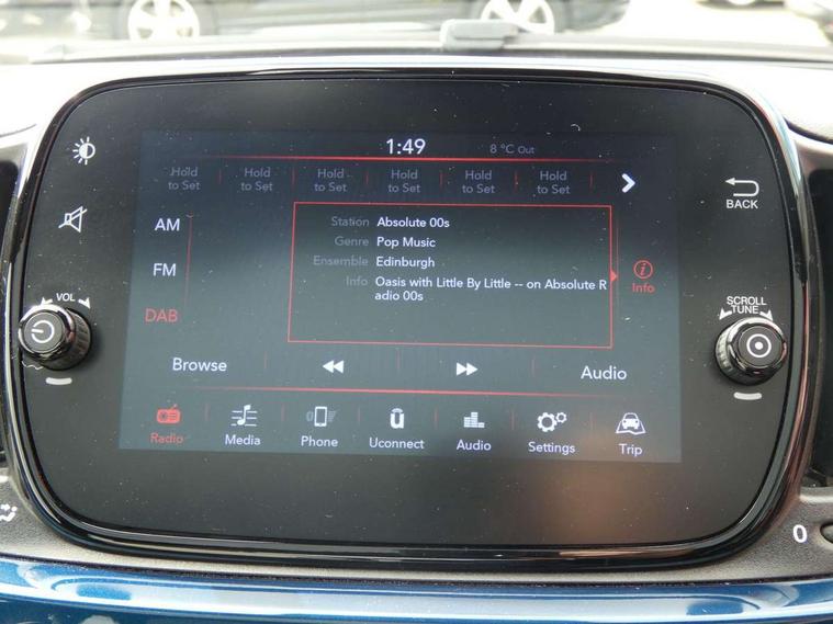 Apple car play/Android Auto, Cruise control, E-call, External temperature gauge, Power assist steering, Rear parking sensor, Speed limiter, Stop/start system, Trip computer, 4 speakers, 7" HD Touchscreen Radio, Bluetooth, USB and DAB, Rear speakers, 3rd brake light, Auto headlights, Body colour bumpers, Body coloured electrically adjustable door mirrors, Chrome plated exterior door handles, Dolcevita badge on fender, Dusk and rain sensors, Electric front windows, Fixed glass sunroof with sunblind, Front fog lights, Halogen headlamps, Heat insulated glass, Heated rear windows with wash wipe, LED daytime running lights, Rear side wing doors, Rear wiper, 1 passenger grab handle, 2 seat bench in second row, 50/50 split folding rear seats with height adjustable rear headrests, Air conditioning, Auxilliary 12V power socket, Chrome kit, Front headrests, Height adjustable drivers seat, Height adjustable steering wheel, Isofix child seat preparation, Single front passenger seat, Techno leather steering wheel with audio controls, 7 airbags - Driver, passenger, side, window and drivers knee airbags, ABS/EBD, ESC + ASR/MSR + HBA + Hill holder, Manual passenger airbag deactivation function, Traction control, Tyre pressure monitoring system, Automatic door locking, Immobiliser, Locking fuel filler cap, Remote central locking, 15" Alloy wheels,