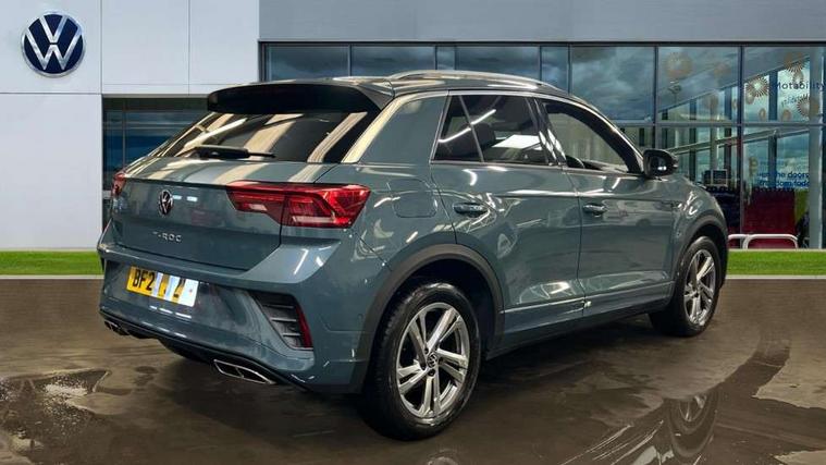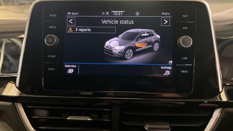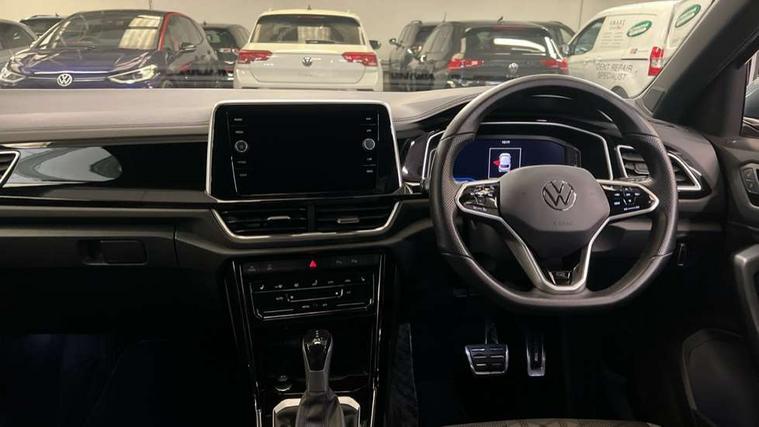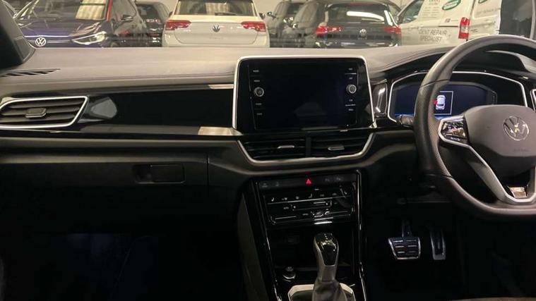 10.25" Digital cockpit pro, Bluetooth mobile phone interface, Driver alert system with fatigue detection, Driver tips and journey analysis, Emergency call service, Lane keeping system Lane Assist, Modified key software - reduce switch off time for key status change to Long no motion, Online services, Park assist including front and rear parking sensors, Service interval indicator, Tailgate/trunk lid release from outside, Think blue trainer driver tips and journey analysis, Warning sound and light for front seatbelts unfastened, Wireless app connect, Battery regeneration during braking, Start/stop function with battery regeneration, Diversity antenna for FM reception, Front and rear 6 speakers, Music playback - MP3, WMA and AAC files, Premium USB cable in choice of either Apple or Android smartphone compatibility, SD card slot, Simultaneous pairing of 2 compatible mobile devices, Title and cover art display, We Connect and We Connect Plus functionality, 3rd brake light, Auto dimming interior rear view mirror, Automatic hazard lights activation under emergency braking, Automatic headlight control with LED separate daytime running lights with coming/leaving home function, Extended roof spoiler, Exterior mirrors aspherical on driver side, convex on front passenger side, External USB type C socket and charging sockets, Front windscreen wiper with intermittent wipe and 4 position delay, Heated rear window, LED Plus headlamps, LED rear combination lamps, LED rear number plate lights, LED tail lamp rear comination lamps, Power windows with comfort operation and circuit breaker, R-Line design body coloured bumpers, Rain sensor, Rear exhaust tailpipe, Rear fog light on one side and reversing lights on both sides, Rear side wing doors, Rear wash/wipe with intermittent wipe setting, Remote electrically foldable door mirrors, puddle lights and reverse activated passenger's door mirror, 12V power socket in centre console, 3 rear head restraints, 3 seat bench in 2nd row, 4 load lashing points in luggage compartment, Air care climatronic air conditoning system with active combination filter and 2-zone temperature control, Black roof lining, Chrome plated radiator grille inserts, air vent surrounds and light switch surrounds, Door and side trim panel with leatherette insert, Drawer under drivers seat, Front + rear carpet mats, Front centre armrest, Front cupholders x 2, Front footwell illumination, Front reading light, Front scuff plates with R logo, Instrument lighting, white adjustable panel illumination, Interior ambient lighting and surround lighting, Interior light delay, Isofix child seat preparation, Leather gearshift handle, Load-through provision with cup holder when folded down ('Unsplit rear seat bench, split folding backrest, with centre armrest), Luggage compartment lighting, Single front passenger seat, Stainless steel pedals, Storage compartment in left and right luggage area, Storage compartment in rear doors, Storage compartments in driver and front passenger doors, Sunvisors with illuminated vanity mirrors, Variable boot floor, height adjustable and removable, Driver assistance pack without proactive passenger protection - T-Roc, 3 point height adj front seatbelts + pretensioners, 3 point seatbelts in outer rear with ECE label, ABS, Child locks on rear doors, Driver and front passenger airbag with front passenger airbag deactivation, Driver and front passenger safety-optimised head restraints, Drivers seatbelt reminder, Electronic parking brake, Electronic Stability Control (ESC) inc EDL (Electronic Differential Lock) and ASR (Traction Control), Front and rear passengers curtain airbag system including front side airbags, Front assist with city emergency braking and pedestrian monitoring, Front seat side impact airbags, Hill start assist, Predictive pedestrian protection, Rear disc brakes, Single tone horn, Tyre pressure loss indicator, Volkswagen roadside assistance, Alarm with interior protection, Anti-theft alarm system with interior monitoring, backup horn, and towing protection, Remote central locking with SAFELOCK, radio remote control with 2 remote control folding keys, Trims for alloy wheels,