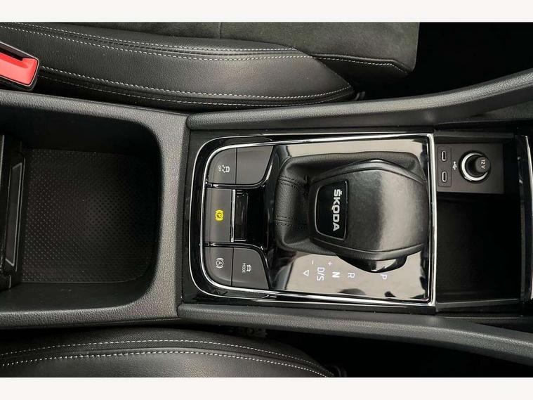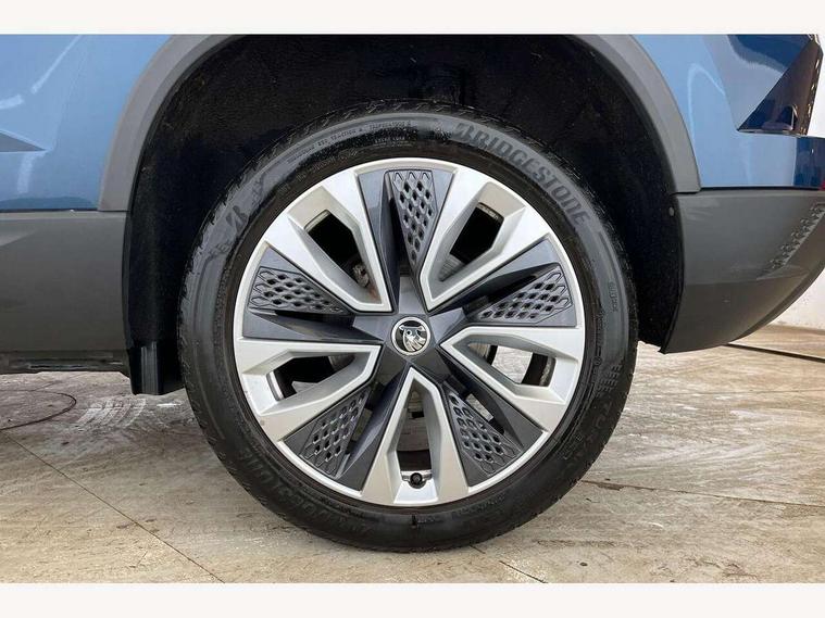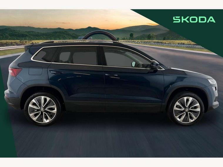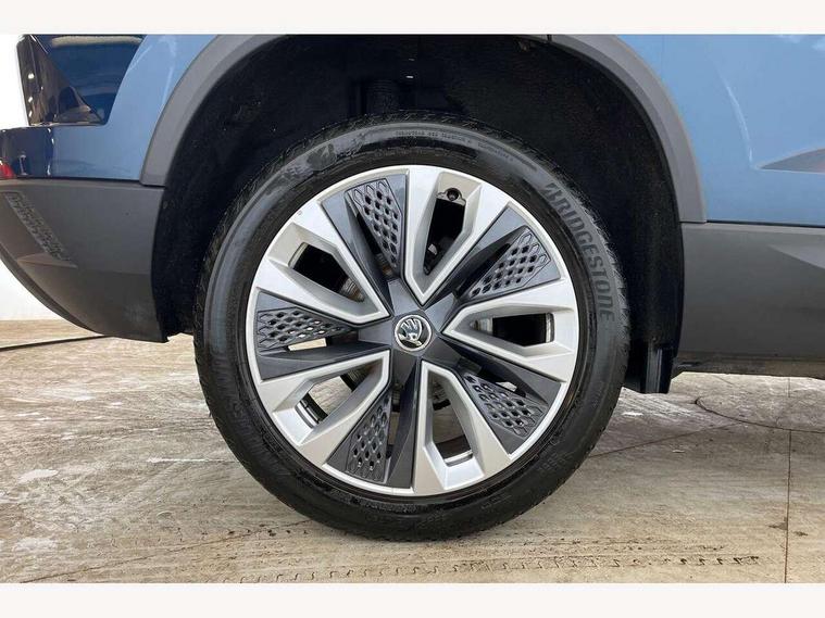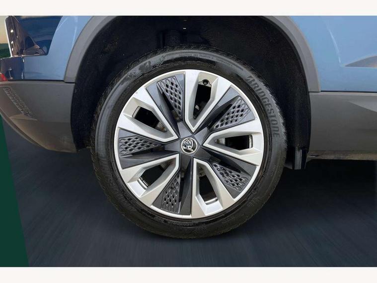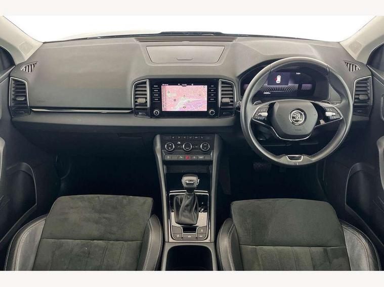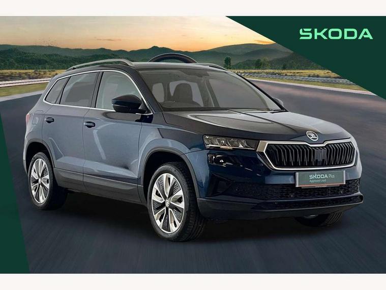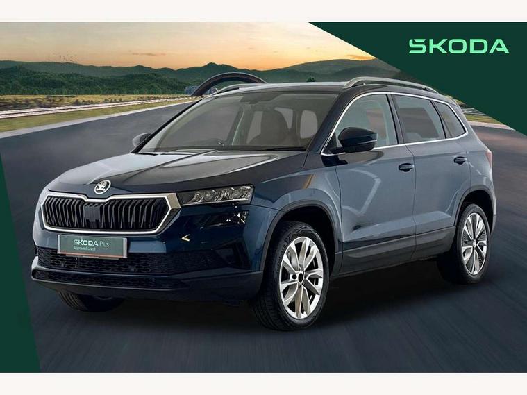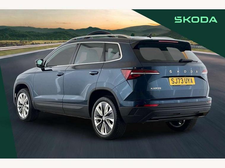 8" Digital display, Care connect, Driver fatigue sensor, Emergency services call system, Outside temperature gauge, Service interval indicator, SmartLink wireless for Apple and wired for Android, Start/stop system with regenerative braking, USB C Port x 2 in front centre console, 8 Speakers, DAB radio with Bluetooth, USB connection, Acoustic glass, Aero front windscreen wipers with intermittent function, Auto dimming rear view mirror with light and rain sensors, Black electric window control buttons, Body colour door mirrors and handles, Dynamic headlight range control with cornering light function, Electric front and rear windows with child proof lock, Heated rear windscreen, LED daytime running lights, LED rear lights with high functionality welcome effect and dynamic indicators, Light assistant (coming/leaving home/tunnel light), Plastic scuff plates, Privacy glass, Rear side wing doors, Rear spoiler, Rear window wiper with washer system and intermittent control, Safety reflectors on front doors, 1.5 litre bottle holders in driver and front passenger door panels, 12V socket in boot, 12v socket in front centre armrest with storage compartment and rear air vents, 2 spoke leather heated multifunction steering wheel with DSG paddles, 2 x Tablet holder, 3 rear height adjustable headrests, 3 seat bench in 2nd row, 4 foldable roof handles with rear coat hooks, Black floor carpet, Chrome inner door handles, Decorative door sills with KAROQ badging, Double sided boot floor, Foldable hooks in the boot, Front head restraints, Height adjustable front three point seats belts with tensioners, Height/reach adjust steering wheel, Ice scraper, Illuminated glovebox, Illuminated luggage compartment, Isofix child seat preparation for front passenger seat, Isofix child seat preparation outer rear, Manual lumbar support for front seats, Pen holder, Pollen filter, Rear boot cover, Rear reading lights, Rubbish bin door, Safety vest holder, Single front passenger seat, Storage box in upper central dashboard closed, Sunvisors with illuminated vanity mirrors, Textile floor mats, Ticket holder, VarioFlex seats with standard rear seat release, Boot pack - Karoq, Chrome roof rails + chrome pack - Karoq, Parking pack - Karoq, Automatic door unlocking in case of crash, Automatic fuel cut off in case of crash, Child locks on rear doors, Driver airbag, Electronic parking brake with auto hold function, Emergency rear braking signal, ESC including ABS, MSR, ASR, EDS, HBA, DSR, RBS, MKB and traction control, Front side airbags, Hill hold control, Knee airbags, Passenger airbag with switch-off function, Pedestrian monitor, Seatbelt reminder signalisation and pretensioner for all seats, Three point seatbelts rear, Two tone horn, Tyre pressure display, Tyre pressure monitor, Alarm with interior monitoring, back up horn and tilt sensor with safe function, Electronic engine immobiliser, Keyless entry and start/stop, Remote central locking with 2 remote folding keys, Chrome framed air vents, 18" Miran alloy wheels in black, Anti-theft wheel bolts protection, Storage on wheel cover, Tool kit,