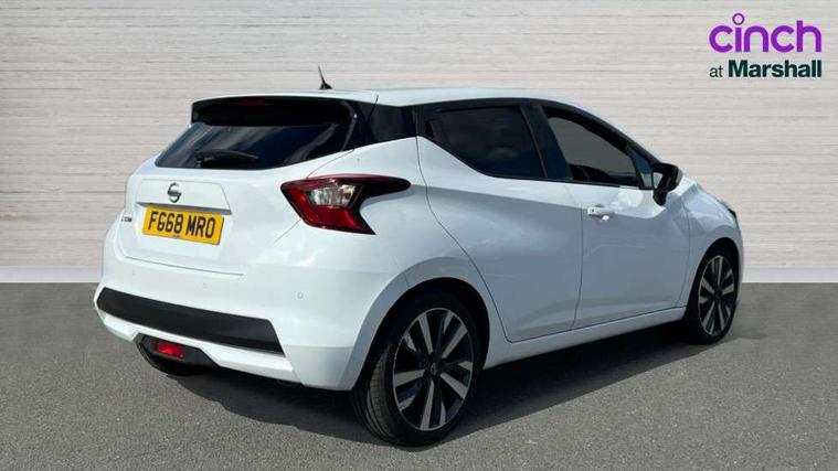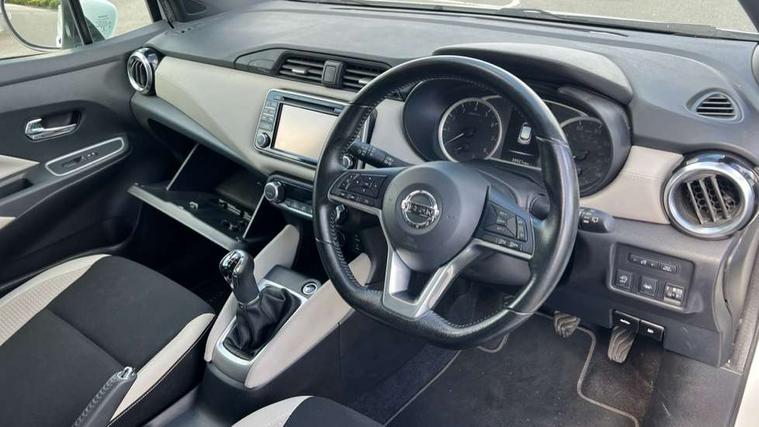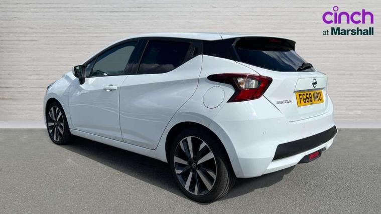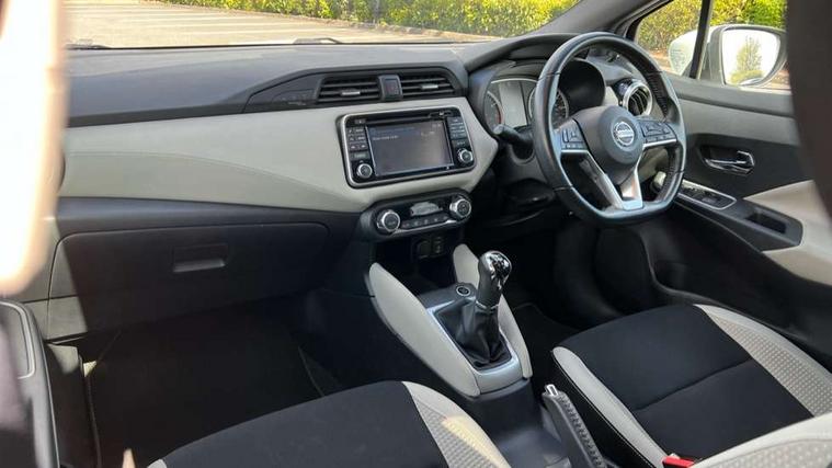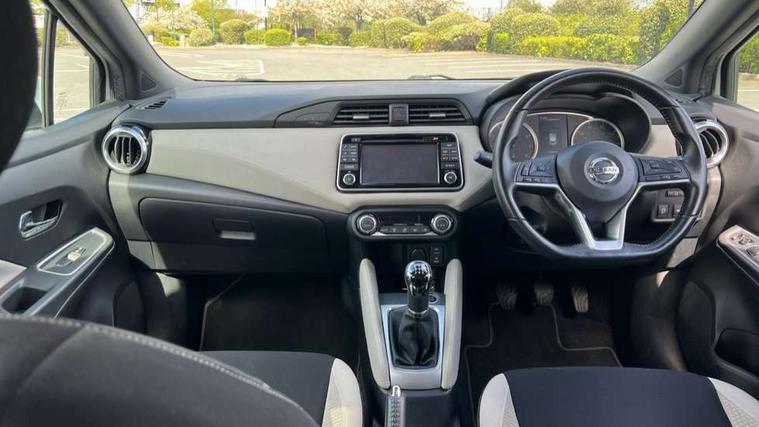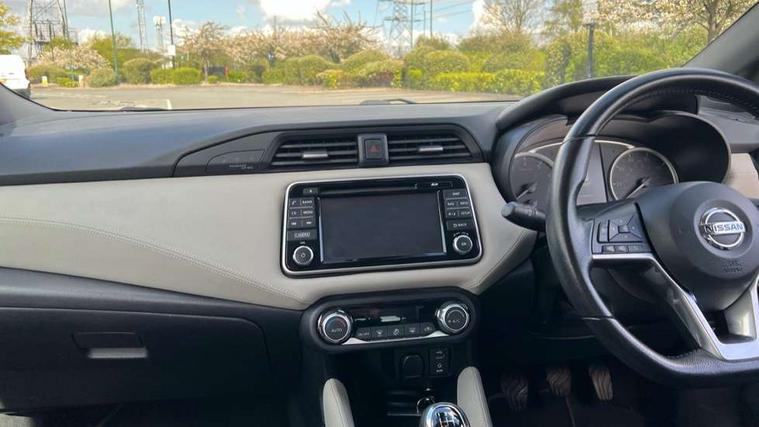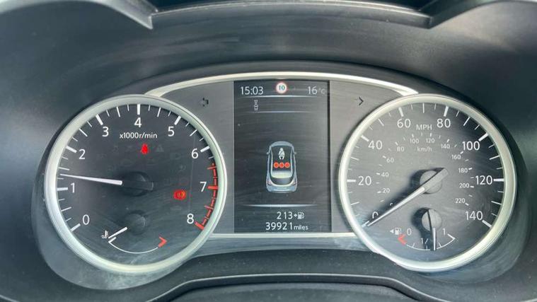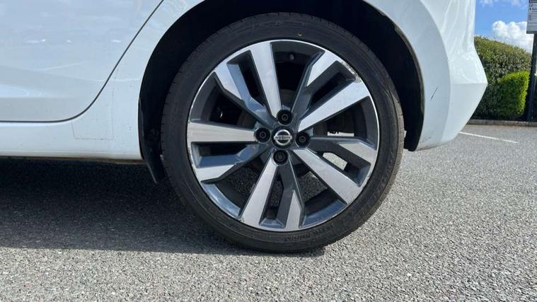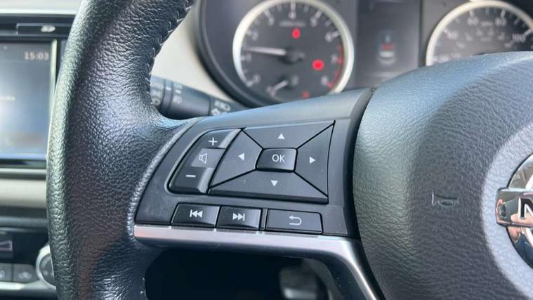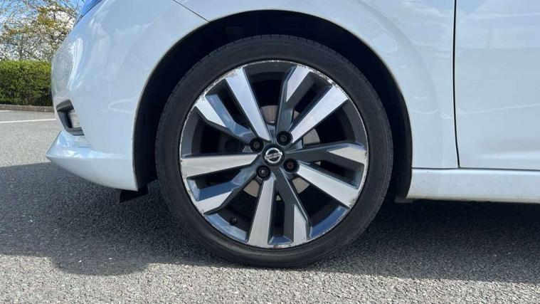 5" TFT driver information centre, Adjustable speed limiter, Bluetooth system, Cruise control, Lane departure warning system, Nissan connect sat nav system, Outside temperature gauge, Rear parking sensors and rear view camera, Smartphone integration with Apple CarPlay and Android auto, Stop/start system, Tomtom connected services, Traffic sign recognition, Trip computer, Aux-in socket, BOSE sound system with 6 speakers, DAB Digital radio, MP3 player, Steering wheel mounted audio controls, USB/iPod connection, Auto dimming rear view mirror, Automatic activation of hazard warning lights, Automatic headlights, Body coloured door handle inserts, Electric folding door mirrors, Electrically adjustable door mirrors, Front and rear electric windows, Front fog lights, Heated door mirrors, High beam assist, High mounted stop lamp, LED daytime running lights, LED indicators in door mirrors, Rain sensor windscreen wipers, Rear privacy glass, Rear roof spoiler, Rear wiper, 12V power point front, 3 cupholders, 3 height adjustable rear headrests, 60/40 split folding rear seat, Automatic air conditioning, Boot carpet, Boot compartment cover, Boot light, Chrome interior door handles, Driver's seat manual height adjust, Driver/passenger sunvisors and vanity mirrors, Front and rear door pockets with bottle holders, Front console storage box, Gear shift indicator, Height adjustable front headrests, Height adjustable steering wheel, Isofix front passenger and rear seat preparation, Leather handbrake, Leather wrapped gear shift knob, Leather wrapped steering wheel, LED ambient lighting, Luggage compartment lighting, Map reading lamp, Parcel shelf, Passenger seat back pocket, Reclining front seats, Satin silver accents on steering wheel, Satin silver air vents, Silver gearknob, Synthetic leather instrumental panel inserts, ABS+EBD+Brake assist, Crash sensor, Driver/Front Passenger airbags, ESP + ASR traction control + CSV understeer control, Forward emergency braking, Front and rear curtain airbags, Front side airbags, Height adjustable front seatbelts with pre-tensioners and load limiters, Hill start assist, Intelligent emergency braking with pedestrian recognition, Manual passenger airbag deactivation function, Rear seatbelts with pre-tensioners and load limiters, Seatbelt warning, Three 3 point rear seatbelts, Tyre pressure monitoring system, Warning triangle and first aid kit, Anti-theft immobiliser, Intelligent key with push button ignition, Remote central locking, 17" Alloy wheels, Tyre repair kit,