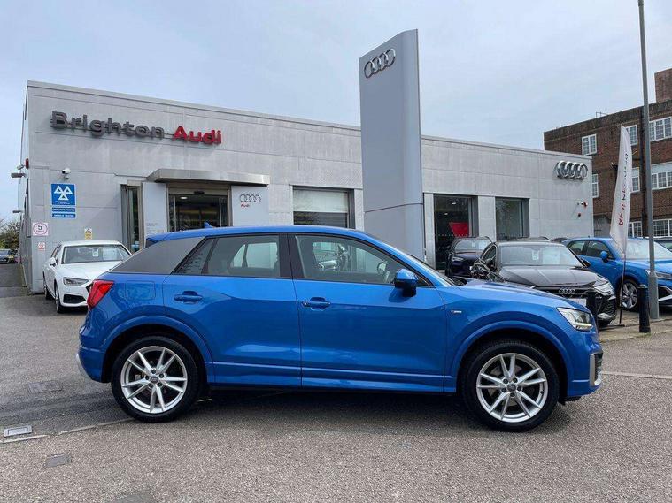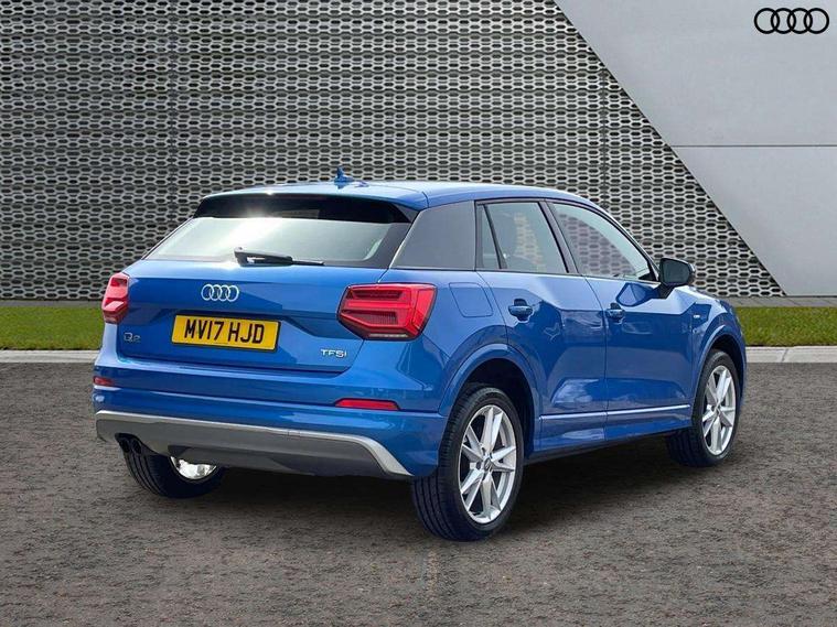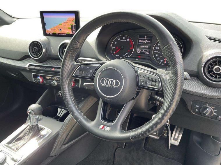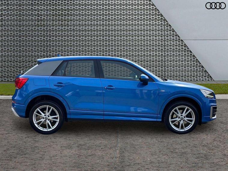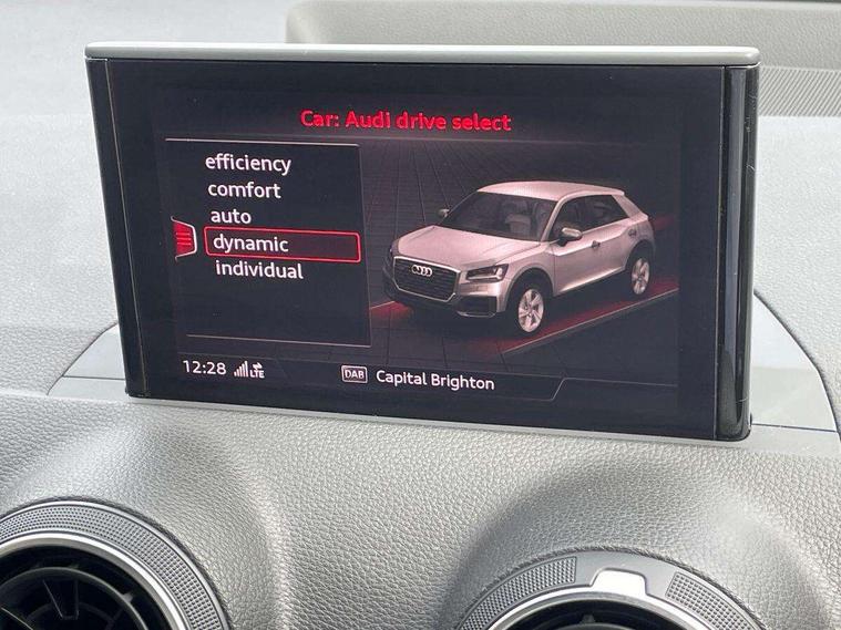 Audi drive select, Audi smartphone interface, Bluetooth hands free telephone connection, MMI - Multi Media Interface control system, PAS, Service interval indicator, Voice control system, Audi music interface, Aux input, CD player, DAB digital radio module, MMI radio plus with 7" colour MMI screen and MMI controller, USB port, Body colour door mirrors, Chrome exhaust tailpipe, Door mirror integrated indicators, Electrically adjustable and heated door mirrors, Front and rear electric windows, Headlight washers, LED headlights with LED rear lights + dynamic rear indicators, Rear wiper, S Line body styling, Sunband for windscreen, Aluminium door sill trims, Black cloth headlining, Centre console with storage/cupholders, Floor mats with contrast stitching, Front and rear door pockets, Front and rear headrests, Front centre armrest, Front sports seats, Glovebox, Height adjustable front seats, Height/reach adjust steering wheel, Illuminated door sills, ISOFIX on front passenger and rear outer seats, Stainless steel pedals, Storage compartment in rear centre console, Full body colour bumper pack - Q2, 3x3 point rear seatbelts, ABS+Electronic Brake force Distribution, Curtain airbags, Driver and passenger airbags, Driver and passenger side airbags, EDL + ASR, Electrically operated child locks on rear doors, Electromechanical parking brake, ESP, Multi-Collision braking, Pre-sense front with pedestrian recognition, Seatbelt warning light, Tyre pressure monitoring system, Warning triangle and first aid kit, Locking wheel bolts, Remote central locking, Thatcham category 1 alarm + immobiliser, Aluminium interior trim, Matt brushed aluminium fascia and door trim inlays,