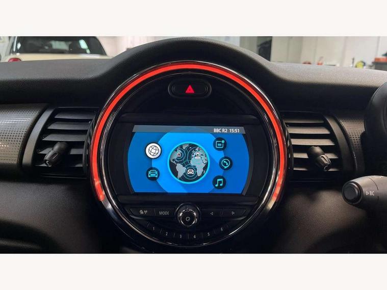 Acoustic seat-belt warning, Basic bluetooth function with USB audio, Brake fluid level warning light, Brake pad wear indicator warning light, DTC - Dynamic traction control, Exterior temperature gauge, Intelligent emergency call, MINI TeleServices, Oil level indicator, On board computer, Personal Profile, Service interval indicator, Servotronic PAS, Stop/start button, Electronic differential lock, 6.5" touchscreen, Auxiliary input socket, DAB digital radio module, Anti dazzle mirror, Anti trapping/one touch open close front windows, Body coloured bumpers, Chrome bezels around rear lights and headlights, Chrome door handles, Chrome exhaust tailpipe, Chrome plated radiator grille, Electric front windows, Electrically adjustable door mirrors, Follow me home headlights, Heated door mirrors, Heated rear window with auto timer, Heated windscreen washer jets, High gloss black tailgate handle, LED fog lights, LED rear lights, Metal look door sill finishers, White indicator lights, 2 rear head restraints, 4 boot load lashing points, 50/50 split folding rear seats, 6-way manually adjustable driver's seat, Active carbon filter, Auxiliary socket in centre console storage compartment, Centre console storage, Driver/passenger sunvisors and vanity mirrors, Easy entry seats, Front and rear cupholders, Front head restraints, Gear/selector and handbrake in artificial leather, Glovebox, Internal chrome door handles, Isofix child seat preparation, Luggage compartment lighting, Multifunction steering wheel, Reach + rake adjustable steering column, Stainless steel pedals with rubber inserts, Storage compartments in doors, Toolkit in luggage compartment, 3 point seatbelts, ABS/EBD, ASC+T, Cornering brake control (CBC), Crash Sensor - activates hazard/interior lighting + unlocks doors, Driver and passenger airbags, Driver/front passenger side airbags, DSC - Dynamic Stability Control, Fuel cut off safety device, Head airbags, Hill start assist, Manual passenger airbag deactivation function, Seatbelt pretensioners, Tyre pressure warning, Drive away door locking, Keyless start, Locking wheel bolts, Remote central locking/doors+fuel cap+tailgate, Second remote key, Thatcham category 1 alarm + immobiliser,