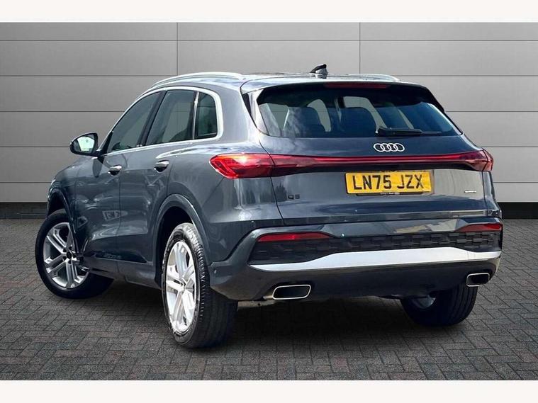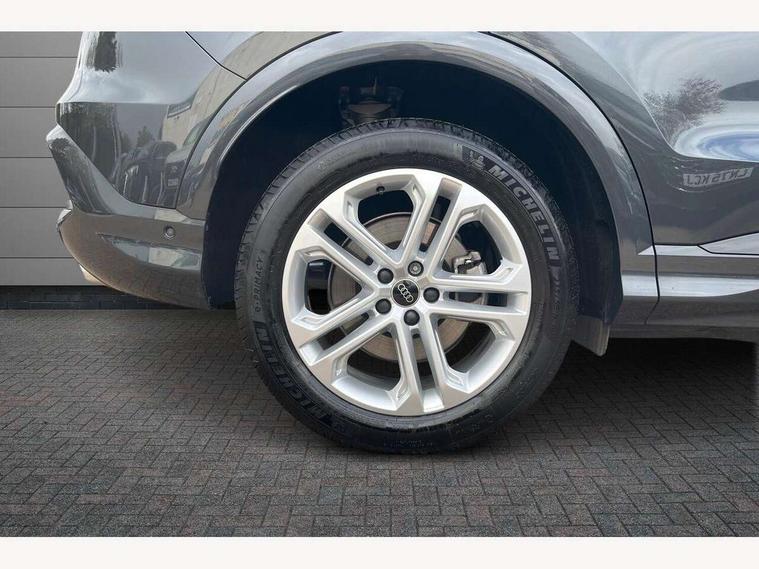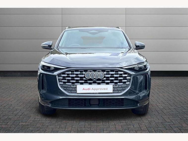 Adaptive cruise control, Advanced driver attention alert, Audi application store, Audi connect emergency call and service, Audi drive select, Audi smartphone interface, Audi virtual cockpit plus with 11.9" OLED colour display, Camera based traffic sign recognition, Fatigue monitor, Front cross traffic intersection assist, Lane departure warning system, MMI navigation plus with high resolution 14.5" OLED touchscreen colour display, Park assist plus, Parking system plus with 360 display, PAS, Reversing camera, Swerve assist and turn assist, Traffic sign based speed limiter, Comfort suspension, 2 USB-C ports in both the front and rear, Audi sound system impressive sound with 8 loudspeakers including centre speaker and subwoofer, 6-channel amplifier with a total output of 180 watts, DAB Digital radio, Smartphone compartment with wireless charging, Aluminium roof rails, Auto dimming rear view mirror, Body coloured door mirrors, Coming/leaving home lighting function, Contrast bumpers in Volcano grey metallic paint finish, Electrically adjustable heated and folding + automatically dimming exterior mirrors, Front and rear electric windows, Front door sill trims with aluminium inlays, illuminated, Headlight cleaning system, Heated rear window, High beam assist, High gloss window surrounds, LED headlights plus incl. digital DRL, dynamic coming and leaving home function with turning/all weather/motorway/manouevring and intersection lights, LED rear lights pro incl. dynamic rear indicators and illuminated light strip with animated coming and leaving home function, LED third brake light, Logo projection light in exterior mirrors, Rear and side windows with heat insulating glass, Rear side wing doors, Rear wash/wipe, Towbar preparation, Windscreen with acoustic glazing, 3 rear head restraints, 3 seat bench in 2nd row, 40:20:40 split folding rear seat bench with centre armrest and cup holders, Comfort centre armrest front, Deluxe 3 zone electronic climate control, Front and rear floor mats, Front seats with manual adjustment for position and 4-way electric lumbar support, Front sport seats with integrated head restraints, Heated front seats, i-Size child seat mounting on the front passenger side and outer rear seats, i-Size and top tether on the outer rear seats, Interior trim in aluminium look, Luggage compartment lid, electrically opening and closing, Manual steering column adjustment, Rock grey cloth headlining, Single front passenger seat, Softwrap in leatherette, Twin leather upholstery, Twin spoke leather steering wheel with multi-function buttons with touch control, shift paddles and trim in chrome look, Ambient lighting package plus - Q5, 3x3 point rear seatbelts, ABS, Acoustic vehicle alerting system, Driver and front passenger airbag with passenger airbag deactivation, Electric child safety locks, First aid kit with warning triangle and high visibility vests, Front emergency brake assist, Front side airbags with head airbag system and front interaction airbag, Hill hold assist, Rear seat occupant reminder, Tyre pressure loss indicator, Anti theft alarm, Anti-theft wheel bolts, Remote control key with SAFELOCK and keyless go, Accent surfaces and control buttons in gloss black, Black dashboard with contrast stitching, Matt brushed aluminium inlays, Steel grey seat stitching, Upper and lower interior elements in artificial leather, Tyre repair kit,