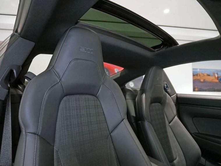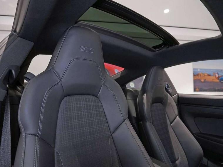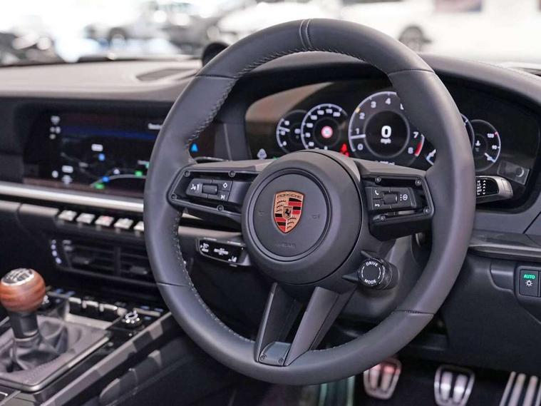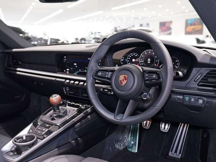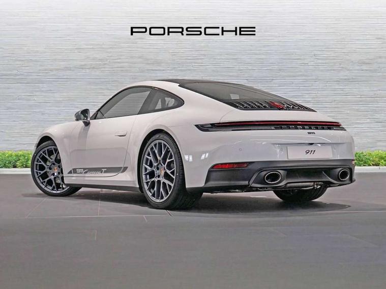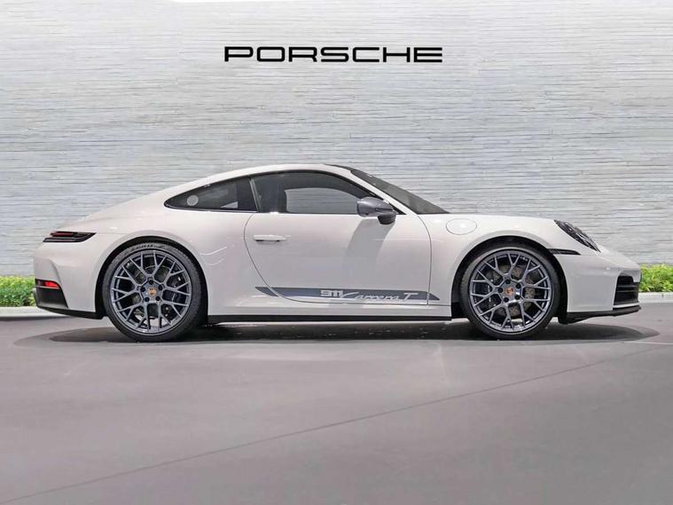 Apple CarPlay, Automatic start/stop system, Cruise control, Driver awareness detection, Emergency call systems eCall and bCall, Gear indicator in rev counter, Lane keep assist, Navigation High, Rear axle steering, Smartphone compartment with wireless charging up to 15 W, Stationary management with HOLD function, Traffic sign recognition, Voice control, Warn and brake assist including pedestrian protection, 3.0 liters 6-cylinder boxer engine with twin-turbo, 6 Speed sports manual transmission, 63 litre fuel tank, PASM with 10mm lower sports suspension, Porsche Torque Vectoring (PTV) including mechanical rear differential lock with asymmetrical lock factor, Rear wheel drive, Two gasoline particulate filter, DAB Digital radio, 3rd brake light, Automatic headlight activation including welcome home lighting, Automatically dimming interior and exterior mirrors with integrated rain sensor, Door handles painted in exterior colour, Electric folding door mirrors with courtesy lights, Exterior mirror upper trims including lower trims painted in vanadium grey metallic, Fuel/charging cover, Heated rear windscreen, LED daytime running lights, Model designation '911 Carrera T' in vanadium grey metallic, Rear boot, Rear diffusor in louvered design, Rear lid grille with vertical slats painted in vanadium grey metallic (high-gloss), Trim on side skirts in black, Windscreen washer system with aero wiper blades and washer jets, Windscreen with grey top tint, 2-seater with rear engine layout, Aluminium pedals, Delete quilting, Driver and front passenger illuminated vanity mirrors, Front head restraints, Headrests with stitched model designation, Heated front seats, ISOFIX fastening system, Leather door panel and central armrests, LED footwell lights, LED glove compartment lighting, LED ignition light, LED luggage compartment lighting, LED orientation light, LED reading lights, Lockable glove compartment, Particle/pollen filter with active carbon filter, Single front passenger seat, Steering wheel with manual fore/aft and height adjustment, Two zone auto climate control, USB-C fast charging, Light design package - 911, Sport chrono package - 911 with porsche track precision app and tyre temperature display, 3 point automatic seatbelts, Airbags, Brake system with brake calipers in black, Electric parking brake, Passenger airbag deactivation, Pedestrian safety, Seat belt warning system for driver and front passenger and rear seat system, Seatbelt pretensioners, Tyre pressure monitoring system, Warning triangle, Alarm system with interior surveillance, Alcohol interlock preparation, Anti-theft wheel bolts, Comfort access system, Keyless drive, Porsche vehicle tracking system (PVTS Plus), Preparation for Porsche Dashcam, TPM valve in black, Tyre sealing compound and electric air compressor kit,