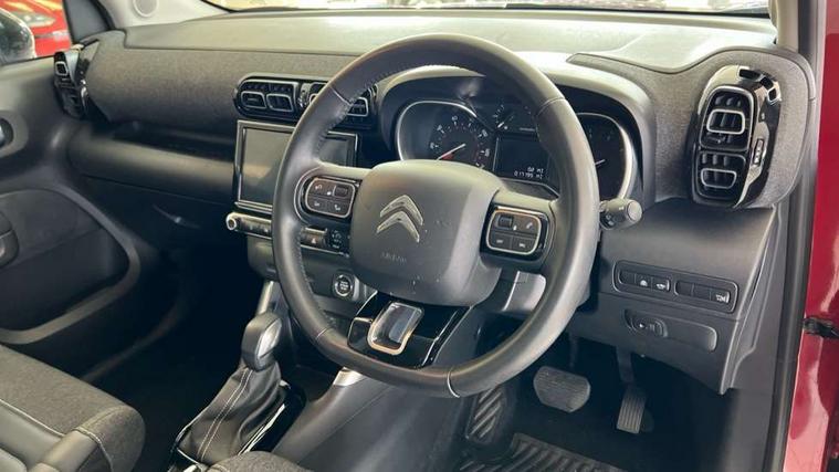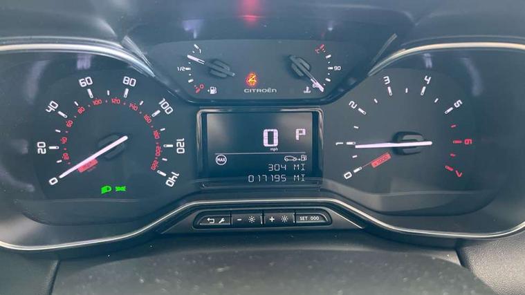 7" Capacitive colour touchscreen, Citroen connect box emergency and assistance system, Coffee Break Alert, Cruise control with speed limiter, Front parking sensors, Lane departure warning system, Mirror screen with Apple CarPlay and Android auto, Multi function on board trip computer, Rear parking sensors, Rev counter, Speed limit recognition and recommendation, Top rear vision reversing camera, Variable assistance power steering, Bluetooth hands free and media streaming, Citroen connected DAB radio with 6 speakers, Steering wheel mounted controls for stereo and telephone, Auto dimming electrochrome rear view mirror, Automatic lights, Automatic windscreen wipers, Body colour painted door handles, Dark tinted rear windows, Electric front windows + one touch + anti-pinch, Electric rear windows + one touch facility, Electrically adjustable door mirrors, Electrically folding door mirrors, Front and rear aluminium effect bumper protectors, Front fog lights with cornering function, Halogen headlights with LED daytime running lights, Heated door mirrors, Rear wiper, 12V socket in rear of vehicle, 2 rear isofix mounting points (outside seats) with top tether, 60/40 split folding rear seat, Automatic air conditioning, Boot light, Driver and passenger sunvisor with courtesy mirror, Flex load/Pull out boot floor, Front and rear door storage, Front and rear head restraints, Front courtesy reading lights, Front passengers seat flat folding, Height adjustable driver's seat, Height and reach adjustable steering wheel, Leather gear knob, Leather steering wheel with satin chrome inserts and radio controls, Rear centre armrest/ski flap, Sliding rear bench, Soft touch dashboard facia, 5 three point inertia reel seatbelts, ABS with Electronic brakeforce distribution and Emergency braking assistance, Active safety brake, Automatic illumination of hazard warning lights, Driver, front passenger, front lateral and curtain airbags, Drivers/passengers and rear seats unfastened seat belt warning, ESC (Electronic Stability Control), Forward collision alert, Front seatbelt pretensioners, Hill start assist function, Mono-tone horn, Rear door child safety locks, Tyre pressure monitor, Automatic door and boot locking with automatic unlocking in case of impact, Immobiliser, Keyless entry and keyless start, Perimetric and volumetric anti theft alarm, Remote central locking + deadlocks, 17" Diamond cut 4 ever alloy wheels, Compressor with puncture repair kit,