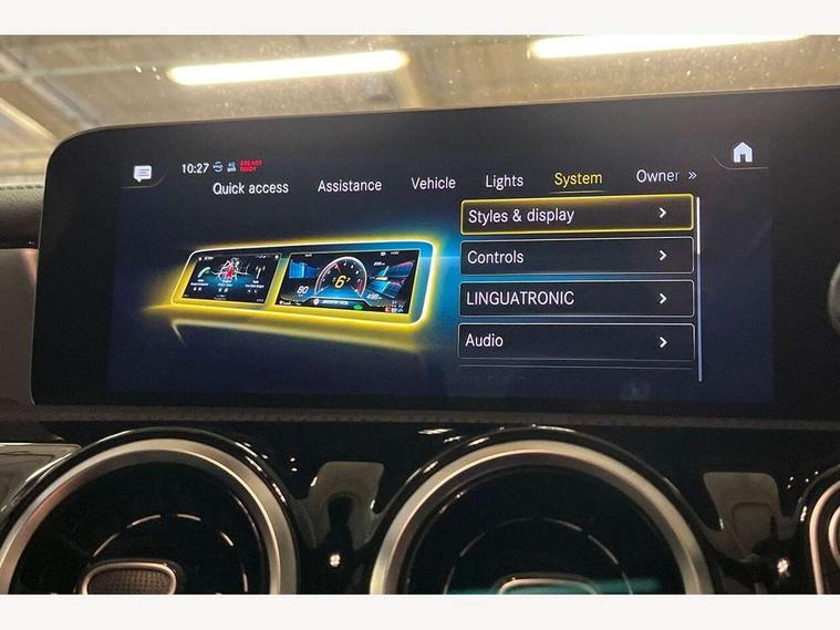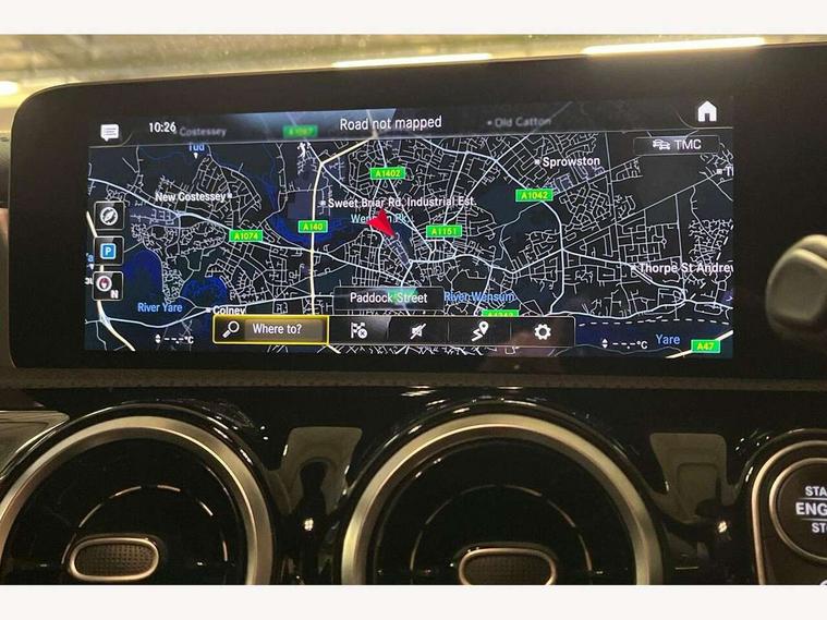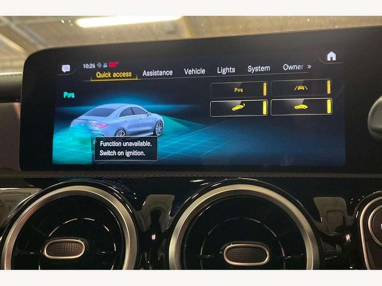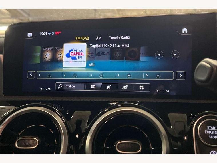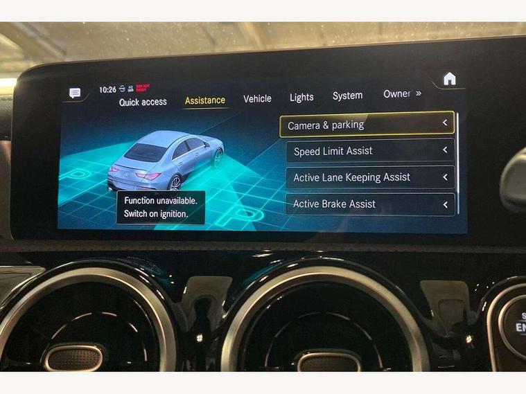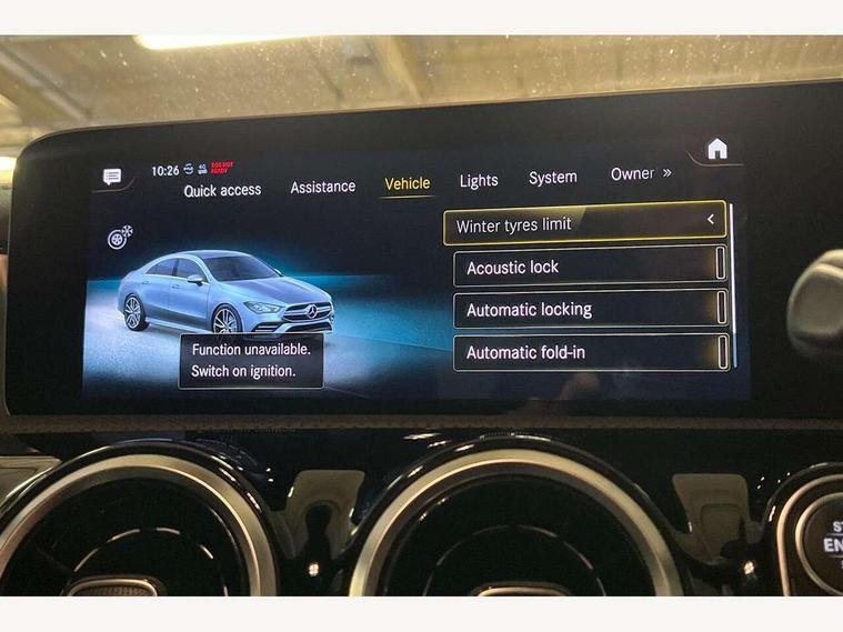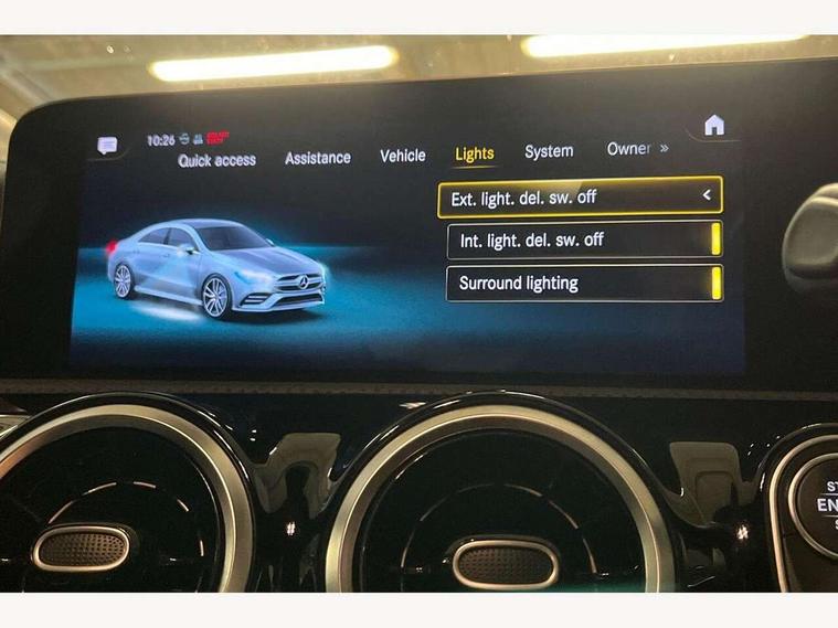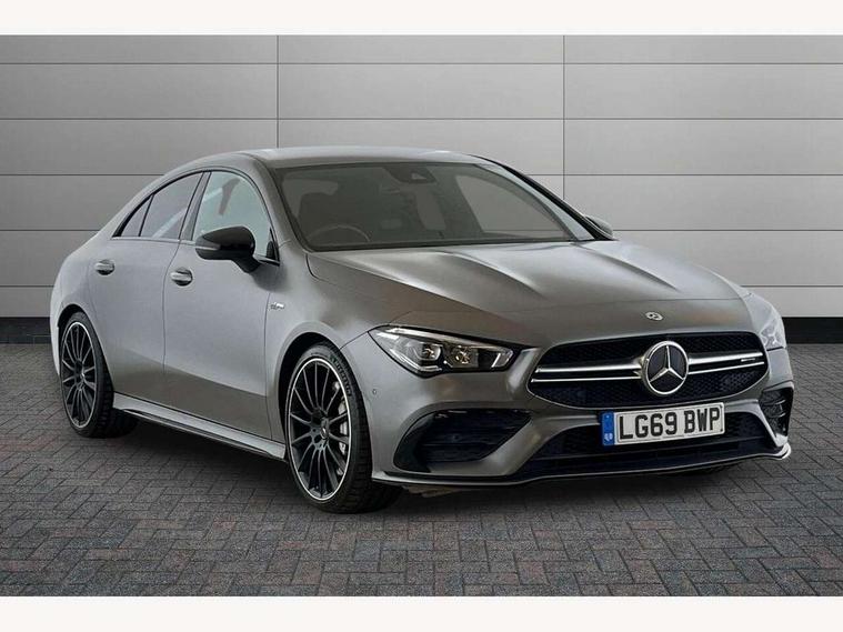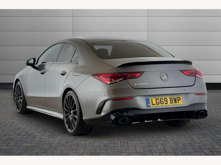 10.25 inch touchscreen central media display, 7 inch display in instrument panel, Active lane keeping assist, Attention assist - Monitors steering behaviour and long journey fatigue, Cruise control with limiter, Digital instrument cluster with three AMG display styles and AMG menu, Direct steer system with speed sensitive power steering, Dual bluetooth interfaces, DYNAMIC SELECT with driving programs (Slippery, Comfort, Sport, Sport+ and Individual), Fluid level warning indicator for fuel, oil, coolant and washer fluid, Hard-disk navigation, Hey Mercedes Voice activation, Lamp failure indicator, Mercedes connect me, Outside temperature gauge, Pre-installation for private car sharing, Preinstallation for Mercedes Benz link, Radio aerial integrated into front and rear windshields, Service indicator (ASSYST), Smartphone integration with Apple CarPlay and Android auto, Speed limit assist, Trip computer in multifunction display with current consumption indicator, Wireless charging, 7G-DCT 7 speed automatic transmission, Rear axle multi-link, DAB digital radio tuner, MBUX multimedia system with DAB digital radio and touchpad including satellite navigation, USB (type C) port in front stowage compartment, USB (type C) ports (2) in stowage compartment, Active radiator shutters open for cooling air and close when not needed to improve aerodynamics and fuel efficiency, Adaptive brake lights, AMG radiator grille with twin blade lamella, AMG Sports exhaust system with two round tailpipes measuring 90 mm in diameter attached in rear apron, AMG lettering plus ribbing on the inside of the, Beltline strips and weather strip in chrome, Body colour bodystyling side skirt, Body colour bumpers, Body colour door handles with chrome inserts, Electric windows, Electrically adjustable and heated door mirrors with integrated LED indicators, Headlamp assist automatic headlamp activation, Heated glass rear windscreen + timer control, High level LED third brake light, LED high performance headlamps with integrated LED daytime running lights, LED tail lamp, Rain sensing windscreen wipers with two sensitivity settings, Rear fog lamp, 40:20:40 split folding rear seat backrests, Air condition air vents with surround in silver chrome, Air conditioning - Two zone thermotronic luxury automatic climate control with display, Ambient lamp and signal, AMG Performance steering wheel in nappa leather, Automatic child seat recognition sensor, Black roof lining, Brushed stainless steel sports pedals with rubber studs, Cup holder and stowage compartment lighting, Floor mats with stitched AMG lettering, Freight packaging with tie-down hooks, Front and rear Handle recess/closing handle light in left and right, Front centre armrest with stowage, Front door sills with Mercedes Benz lettering, Front footwell lights, Front reading lamps in left and right console downlighter, Front seat cushion length adjustment, Front signal exit lamp in left and right, Front vanity light in left and right, Heated front seats, Illuminated glove compartment stowage, Luggage net on driver/front passenger seat backrest, Manually adjustable front seats, Manually height and reach adjustable steering column, Oddments tray lighting, Rear interior lamp, Rear reading lamp in support plate in left and right, Silver coloured aluminium gear shift paddles on steering wheel, Spectacles compartment for driver, Sport seats with fixed head restraints, Stowage compartment in centre console with retractable cover, Sunvisors with illuminated vanity mirrors, Touchpad illumination, Touchpad on center console, Twin front cupholders, Two outer rear seat isofix and top tether child seat fixing points, Light and sight pack - CLA, Mirror pack - CLA, Parking package - CLA, Seat comfort pack - CLA, Active bonnet pedestrain safety measure which detects an impact and raises bonnet by 65mm, Active brake assist includes forward collision warning system with autonomous braking, Adaptive brake assist with hold function and hill start assist, Anti-lock braking system (ABS), Brake pad wear warning indicator, Childproof locks manually operated for rear doors and electrically operated for rear power windows, Crash responsive emergency lighting, Driver and front passenger head and sidebags, Driver and front passenger windowbags, Drivers knee airbag, Dual stage driver and front passenger airbags, Electric parking brake, Electronic stability programme with acceleration skid control, ESP curve dynamic assist, Front and rear seatbelt reminder, Front brake calipers with AMG lettering, Front passenger seat occupancy sensor, Perforated front brake discs, Three point rear seat belts, Tyre pressure monitoring system, Warning triangle and first aid kit, Alarm system with immobiliser and interior protection -Thatcham category 1, Keyless Go starting function, Remote central locking and crash sensor with emergency opening function, Light aluminium with longitudinal grain interior trim, Summer tyres, Tirefit tyre sealant kit,
