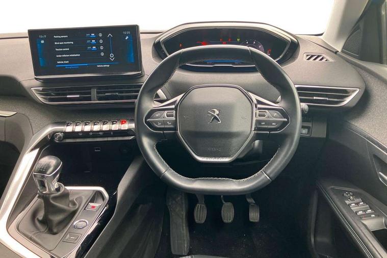 3D connected navigation with 10" HD touchscreen, Bluetooth telephone facility, Drive modes select (Eco, normal and sport), Driving Time Warning (DAA1), Emergency services call system, Extended traffic sign recognition, Exterior temperature indicator with ice warning, Front parking sensors, Mirror screen with mirror link, apple carplay and android auto, Multi function trip computer, PEUGEOT i-Cockpit with 10" high definition capacitive touchscreen, Peugeot i-cockpit with compact multi-function sports steering wheel, PEUGEOT i-Cockpit with configurable 12.3" Head-up digital instrument panel, Rear parking aid, Speed limit recognition and recommendation, Voice recognition, Dynamic stability control and electronic anti-skid system, Stop/start function, 6 speakers radio with mp3 compatible, DAB Digital radio, USB socket, Aluminium longitudinal roof bars, Automatic hazard light activation upon heavy brake application, Automatic triggered rear windscreen wiper in reverse gear, Black rubber side window trim, Black with chrome detailed front wing trim, Body colour door handles, Body colour rear roof spoiler with stainless steel edging trim, Body protectors (bottom of front and rear bumpers + wheel arches + protection at bottom of doors) in black, Chrome frameless 'Classic' grille, Chrome rear bumper facia, Dark tinted rear side windows + tailgate window, Diamond Black door mirror shells, Door mirror mounted LED courtesy floor lighting, Eco LED headlights, Electric folding door mirrors with exterior courtesy LED lighting, Electric operated/heated door mirrors, Front and rear door and sill protectors with polished stainless steel insert, Front bumper lower trim in Silver, Front windscreen wiper with magic wash cleaning system, Gloss black B and C pillar and aerodynamic deflector trim, Gloss black front bumper air scoops, Gloss black rear cluster connecting strip, Gloss black windscreen trim, Headlights left on audible warning, Heated rear windscreen with integrated antenna, LED daytime running lights, LED front indicator, LED rear number plate lighting, LED side indicator lights integrated into door mirrors, LED third brake light, One touch electric front/rear windows with pinch protection, Rear LED Peugeot signature 'Claw Effect' lights, Rear side wing doors, Stainless steel roof arches, 1/3 to 2/3 split folding rear seats, 12V Sockets in dashboard, rear cabin and load area, 2 cupholders in front centre console, 2 cupholders in rear armrest, 2 x Rear reading spotlights, 2x Rear coat hooks, 3x Isofix child seat fittings in the front passenger and outer rear seats, 4 Grab handles retractable and damped, Blue ambient lighting for connecting zone, Blue ambient lighting to front door panels, Blue ambient lighting to headup instrument panel, Brumeo fabric trimmed door armrests, Centre front armrest with butterfly wing opening and illuminated storage compartment, Driver seat lumbar adjustment, Driver seat manual adjustment (longitudinal and back rest angle), Dual zone automatic climate control, Electric power steering with reach and rake adjustable steering column, Flocked glovebox interior, Foldable front passenger seat with picnic table, Footwell illumination, Front interior light with 2 reading spotlights and rear interior light with timer, Front passenger seat manual adjustment (longitudinal and back rest angle), Front seat back map pockets, Gear shift indicator, Height adjustable front seats, Illuminated glovebox, Individual left and right controls in boot for seat folding, Leather steering wheel with detail stitch, LED interior lighting in storage spaces and load area, LED roof interior lighting, Rear bench seat with central armrest and ski hatch, Rear centre console ventilation system, Roof lining - Salin light grey, Satin chrome dashboard trim, Satin chrome digital instrument panel and touchscreen trim, Satin chrome front door panel recess trim, Satin chrome interior door handles, Satin chrome scorpion's tail and toggle switch trim, Seatbelt not fastened audible and visual alert for front seats, Seatbelt unfastened on the move audible and visual alert for front and rear seats, Sunvisors with illuminated vanity mirrors, Two position boot floor, Safety plus pack with high beam assist - 3008, Visibility pack - 3008, 3x Rear three-point retractable seatbelts with force limiters in the outer rear seats, ABS (Anti-lock Braking System) with EBD (Electronic Brakeforce Distribution) and EBA (Emergency Braking Assistance), Adaptive driver and front passenger airbags with passenger airbag deactivation function, Driver and front passenger side airbags, Electric child locking functionality on rear windows and doors, Electric parking brake, Front and rear curtain airbags, Front optimised safety headrests and 3 x rear retractable headrests with height adjustable, Front three point retractable seatbelts with pre tensioners and force limiters, Front ventilated disc brakes and rear disc brakes, Hill start assist, Two tone horn, Automatic door locking when moving off, Electronic immobiliser, key operated exterior door lock from the left hand door, Perimetric and volumetric alarm with lift and tilt sensor, Peugeot Open and Go System, Remote control central locking with two plip keys, Brumeo fabric Dashboard, front and rear door panel finish, Puncture repair kit including compressor, sealant cartridge and towing eye,