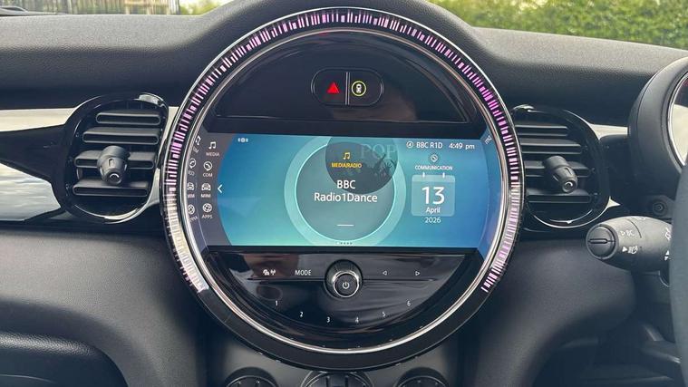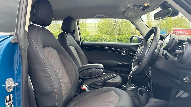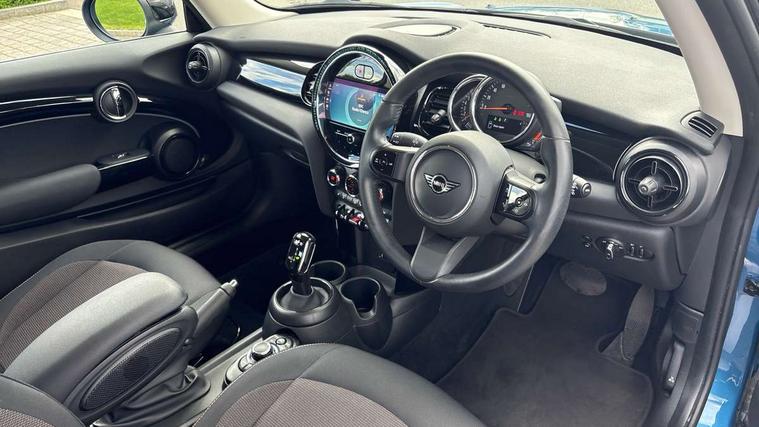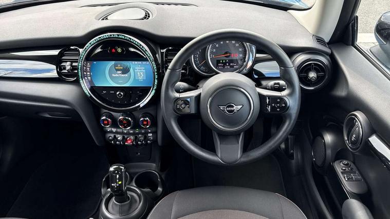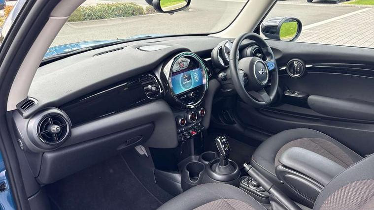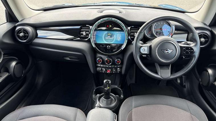 Apple CarPlay, Automatic start/stop function with brake energy recuperation, Compatible mobile phone bluetooth with audio streaming, Cruise control with brake assist, Electro-mechanical speed dependant steering assistance, Flexible car sharing preparation, Instrument cluster, Mini E-call, MINI TeleServices, On board computer, Service interval indicator, Double Vanos system, Fully variable valve control, High precision injection, Performance Control, Steptronic transmission with double clutch, 8.8" touchscreen with LED ring, FM tuner and DAB digital radio, 3rd brake light, Automatic headlight activation switch, Body colour fuel filler cap, Chrome border high gloss black slats radiator grille, Dynamic brake lights, Electric front windows, Exhaust tailpipe on left with chrome finisher, Heated rear window, Heated windscreen washer jets, LED headlight with closed ring and daytime driving lights, Metal door sill strips with MINI imprint, Model logo Cooper on right of tailgate, Rain sensor window wipers, Rear fog lights, Rear LED lights with union jack design, Rear window wiper, Side scuttle panel with integrated indicator, Sun/heat protection glass, White indicator lenses, 12V Accessory socket in centre console, 2 seat bench in 2nd row, 4 lashing eyes in luggage compartment, 60/40 split folding rear seat, Ambient lighting, Carbon black colour line - Knee roll and door armrest, Chrome interior highlights, Cupholders, Front and rear head restraints, Front and rear isofix with front passenger airbag deactivation, Front floor mats in velour, Glove compartment, Height and length steering column adjustment, Interior lighting with 12 different colours across the dashboard, underneath door bezel with illuminated laser-engraved design on central display, Leatherette gearshift lever and handbrake gaiters, LED reading lights, vanity mirror lights, front foot well light and spotlight on front seats, Manual air conditioning, Mechanical seat adjustment - forward/back & backrest for front seats and driver seat height adjust, Multifunction steering wheel, Passenger seat height adjuster, Satellite grey headlining including grab handles and clothes hooks, Single front passenger seat, Sport leather steering wheel with speed limiter and audio/communication controls, Storage compartments in doors, Sunvisors with vanity mirrors, Tool kit, 3 point seatbelts on all four seats, 6 Airbags - front, side, head and seat belt tensioners, Anti-lock braking system (ABS), DSC - Dynamic Stability Control, Front and rear disc brakes, Single tone fanfare horn, Tyre pressure monitoring system, Alarm system with tilt sensor, monitoring doors, bonnet interior and tailgate, Electronic vehicle immobiliser, Start/stop toggle with keyless go, Piano black interior trim, Tyre repair kit,