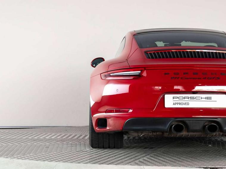 Black rev counter, Instrument cluster with high-resolution 4.6-inch TFT colour display, Mobile telephone preparation, On board computer, PCM voice control, Porsche communication management including navigation, Sports button, Telephone module for PCM, Porsche stability management (PSM), Porsche TORQUE Vectoring (PTV) with mechanical rear differential lock, Connect Plus with Apple CarPlay, wireless internet access, Carfinder, Remote Vehicle Status and Remote Services, DAB Digital radio, USB interface in rear, 2 speed front wipers + intermittent wipe, Air blades with active cooling air flaps, Aspherical driver's exterior mirror, Automatic headlamp levelling, Automatic headlights, Automatically extending rear boot spoiler, Body colour bumpers, Body colour door mirrors, Dynamic cornering light with headlamp levelling and speed sensitive driving light control, Electric windows + one touch open/close + door seal protection function, Electrically adjustable and heated door mirrors, Front lip spoiler, Green tinted heat insulating glass, Headlight range control, Headlight washers, Heated rear window, Heated windscreen washers, LED daytime running lights, LED tail lights, Sports exhaust system, Tinted LED tail lights, Trim strips in high gloss finish, Welcome home function, Windscreen with grey top tint, 12V socket in front passenger footwell, 2 in-dash cupholders above glove compartment, Air quality sensor, Air recirculation system, Alcantara centre console main storage compartment, Alcantara door handle, Alcantara door panel armrest, Alcantara roof lining, Alcantara seat centre panels, Alcantara steering wheel rim, Centre console storage, Clothes hooks on front seat backrests, Continuously variable dimming interior light, Dual zone automatic climate control, Footwell illumination, Glovebox illumination, Ignition Lock illumination, Illuminated vanity mirrors, Illumination of luggage compartment, Interior orientation lighting, Isofix child seat preparation, Leather handbrake grip, Leather interior door handles, LED reading lights, Manual height/reach adjust steering wheel, Pollen/active carbon filters, Split folding rear seats, Sport design steering wheel, Steering wheel gearshift paddles, Storage compartments in doors, Sport chrono package - 911 [991] PDK, 3 point inertia reel seatbelts, ABS, ASR + ABD, Driver/Front Passenger airbags, Electronic parking brake, Front head airbags, Front passenger airbag deactivation, Front seat thorax airbags, Front seatbelt pretensioners with force limiters, Height adjustable front seatbelts, POSIP, PTM (Porsche Traction Management), Red brake calipers, Tyre pressure monitoring system, Alarm system with interior radar surveillance, Anti-theft wheel bolts, Porsche vehicle tracking system (VTS), Remote control central locking, Transponder engine immobiliser, Brushed aluminium dash trim and centre console inserts, Sealing compound and compressor kit,