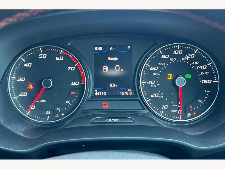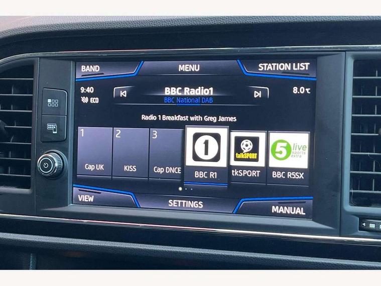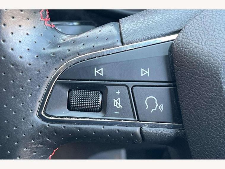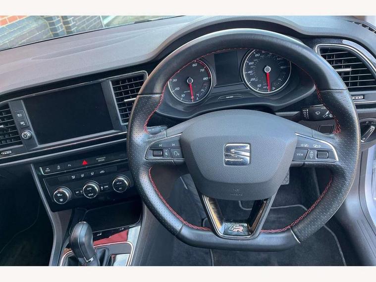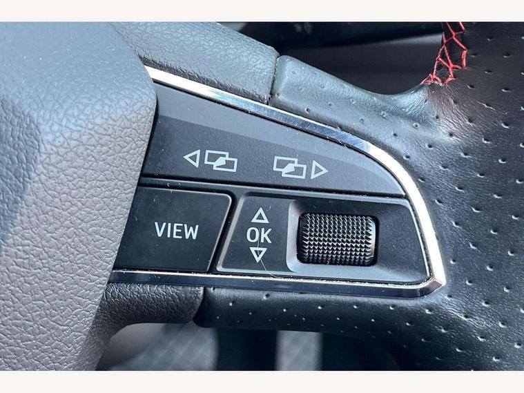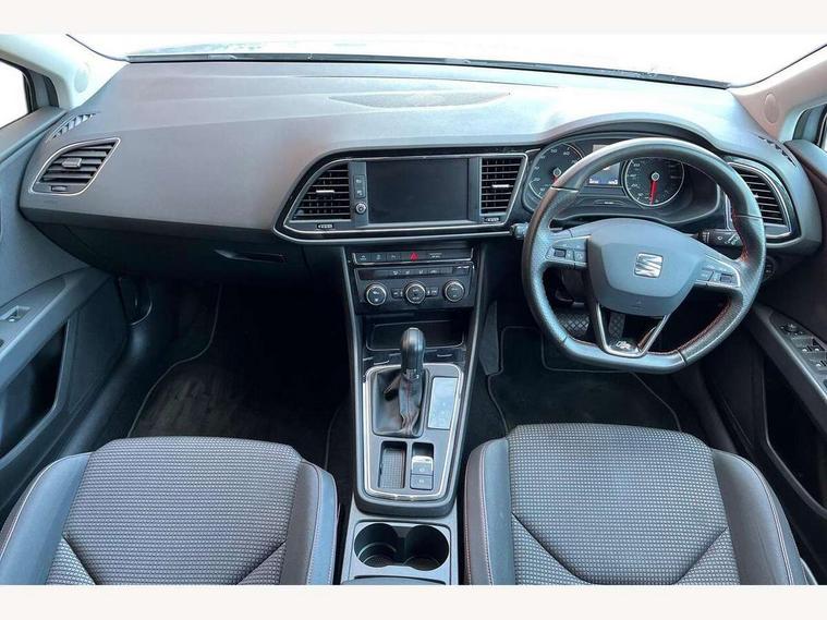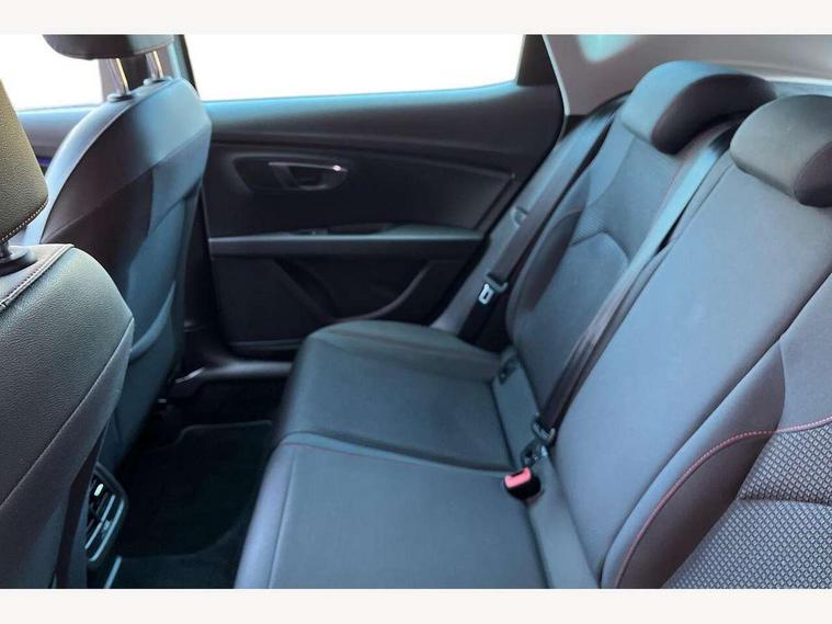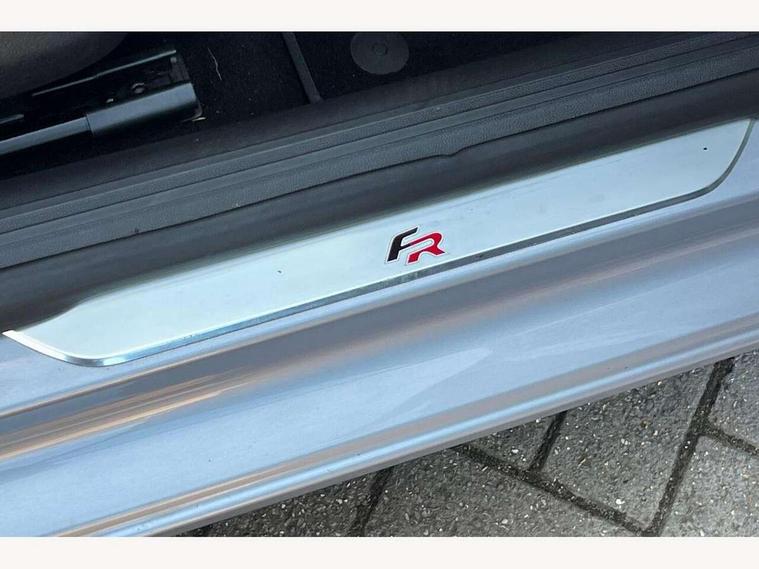 'Lights On' Reminder warning buzzer, 3D map display, 8" touch screen, Bluetooth Handsfree Phone Connection, Cruise control, Electro-mechanical power steering, Front and rear parking sensors, Front assist with pedestrian protection, Full Link Smartphone Integration with Mirror Link, Apple Car Play, Google Android Auto, Low fuel warning light, Navigation system (incl. media system plus), Outside temperature gauge, RPM counter, SEAT Drive profile, SEAT logo boot release, Service interval indicator, Trip computer, Voice recognition, Lowered sports suspension, XDS electronic differential lock, 2x SD card slot, 4 USB, 8 Speakers, Auxiliary input socket, Bluetooth audio streaming, CD player, DAB Digital radio, High resolution colour driver display, Media system plus (incl. media system colour), Steering wheel mounted audio/phone controls, Aluminium front door sills, Black radiator grille, Body colour door handles, Body coloured bumpers, Body coloured exterior mirrors with integrated LED indicators, Chrome-plated radiator grille surround, Dark tinted rear windows, Electric front/rear windows, Electrically adjustable door mirrors, Electrically foldable exterior mirrors with parking position and passenger-side mirror with lowering function, Exclusive FR front and rear bumpers, Heated door mirrors, High gloss black finish B and C pillars, Illuminated aluminium front door sill with FR logo, LED front fog lights, LED headlights with LED day time running lights + LED rear lights + LED number plate lights, Rear wash/wipe, Visible twin exhaust tailpipes, 12v power point in centre console, 60/40 split folding rear seat, Active front headrests and 3 rear headrests, Additional heating and ventilation outlet in rear of centre console, Boot storage net, Cargo rings in boot, Driver and passenger seat height adjust, Driver seat lumbar adjustment, Dual zone climate control, Dust/pollen filter, Flat bottomed perforated leather steering wheel with red stitching and FR logo, Front adjustable head restraints, Front armrest with storage box, Front cupholders x 2, Front seatback storage pockets, Front sport seats in Techny cloth, Front/rear floor mats, Gear shift indicator, Height/reach adjust steering wheel, High centre console with integrated box & cup holder, rear air outlet, with armrest in front seats, Illuminated door sills, Instrument lighting with brightness control, Luggage tie-down hooks, Multi-colour ambient interior lighting, Passenger seat lumbar adjust, Rear top tether child seat ISOFIX attachment, Steering wheel gearshift paddles, Storage box under drivers seat, 3 point seatbelts on all rear seats, 7 airbags - 2 front, 2 front side, 2 curtain, 1 knee, ABS + TCS, Child proof door locks, Electric handbrake, Electronic parking brake with auto hold, ESC with tyre pressure warning indicator, ESP+EBA, Front seatbelt pretensioners, Front seatbelt reminder, Hill hold control, Manual passenger airbag deactivation function, Multi-Collision braking, 2 folding remote keys with window open/close function and boot opening/door mirror folding function, Central locking fuel filler cap, Engine immobiliser, Locking wheel bolts, Remote central locking + deadlocks, Volumetric alarm with back up horn, Chrome interior detailing, 17" Dynamic alloy wheels 30/2,