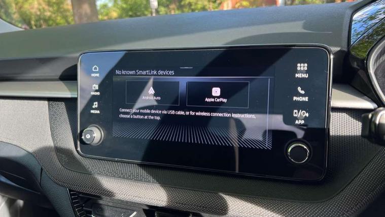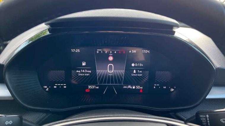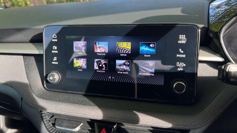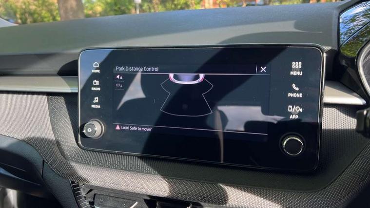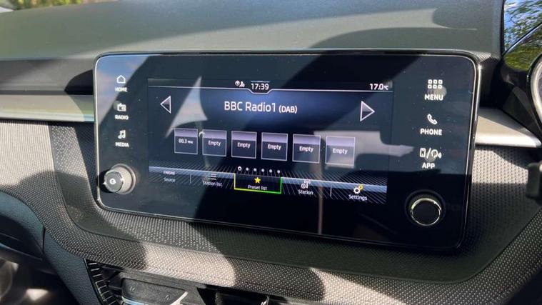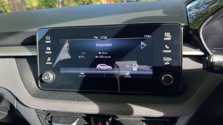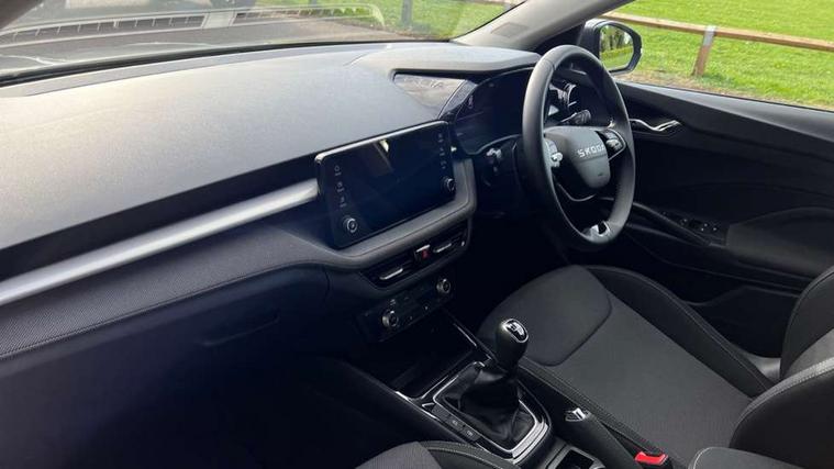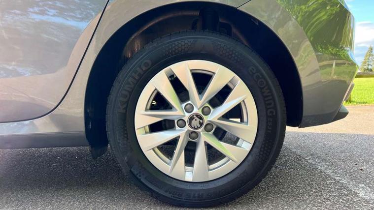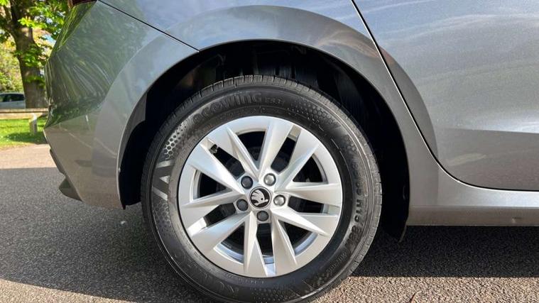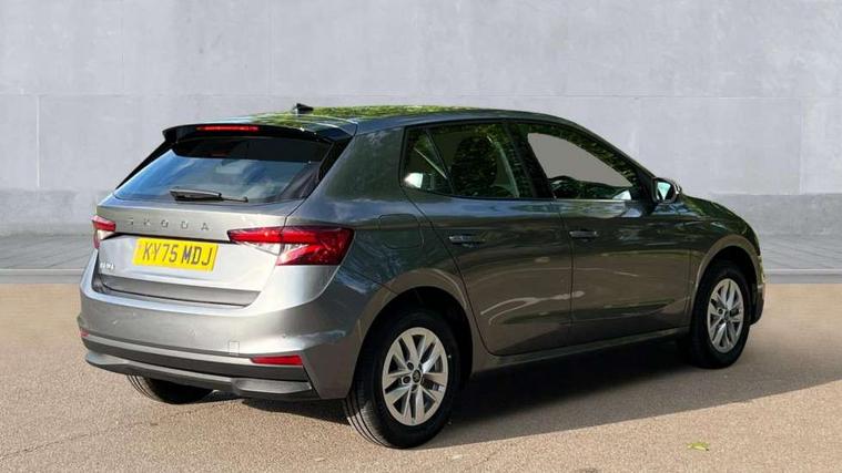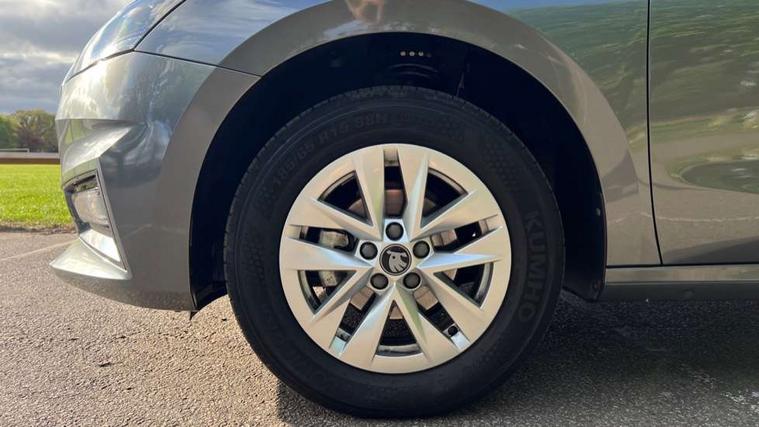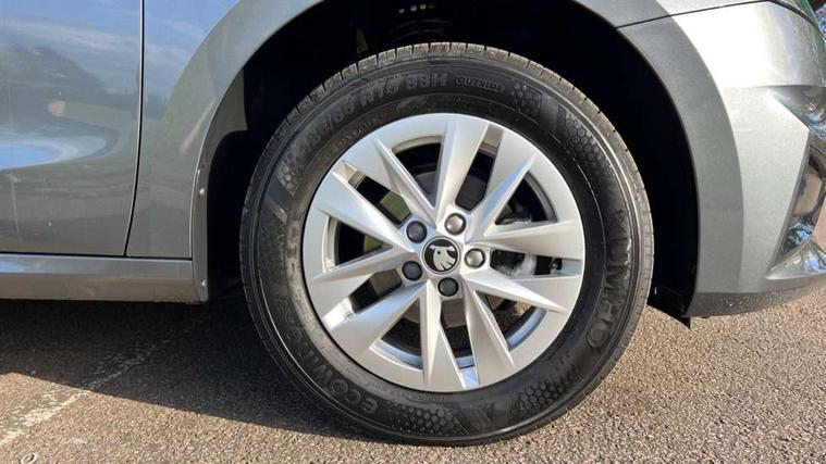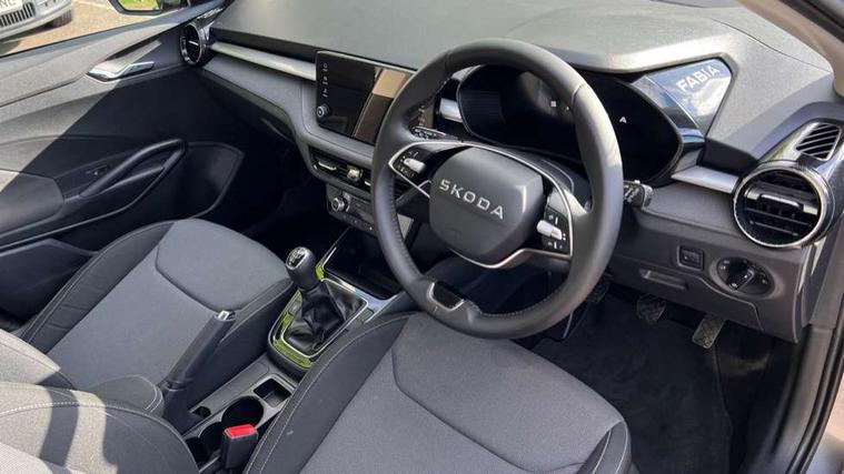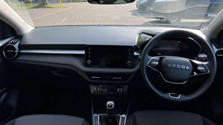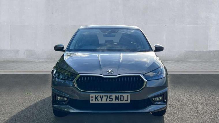 8" Digital instrument display, Advanced driver attention and drowsiness monitor, Bluetooth connection, Driver alert system, Electromechanical power steering, Exterior temperature gauge, Rear parking sensors, Service interval indicator, Traffic sign recognition, Wireless SmartLink for Apple CarPlay and Android Auto, 6 Speakers (4 in front and 2 in rear), 8.25" Skoda infotainment touchscreen display, Auxiliary socket for external MP3 player, DAB digital radio reception, Auto dimming rear view mirror, Body colour door mirrors, Body coloured bumpers, Door mirror integrated indicators, Front and rear electric windows, Front window wiper intermittent control, Headlight range control - Automatic, LED 3rd brake light, LED daytime running lights with coming and leaving home feature, LED rear lights, Rear LED fog light, Rear side wing doors, Rear window wiper with washing nozzles, Roof mounted spoiler, SKODA tailgate lettering in chrome, Unique dark chrome design logo on alloy wheels, 2 reading lights in front and 2 reading lights in rear, 3 rear headrests, Backrest split and folding, Central console with removable cup holder and storage box, Chrome handbrake release button, Dual zone air conditioning with climatronic electronic control, Fabric upholstery, Front centre armrest, Gearshift knob/handle in leather, Grain satin black interior door handles, Hand brake lever handle in leather, Height adjustable front headrests, Height adjustable front seats, Height adjustable steering wheel, ISOFIX and TopTether anchorage points to the outer rear seats, ISOFIX and TopTether on the front passenger seat, Luggage compartment lighting, Manually adjustable lumbar support in front seats, Pollen filter, Rear seat bench unsplit, Single front passenger seat, Skoda lettering on steering wheel, Storm grey headlining, Sun visors with mirror and airbag label on passenger side, Textile floor mats, Ambient lighting pack - Fabia Hatchback, 3-point height adjustable front seats belts with pretensioner and force limiter, Automatic warning lights in case of crash, Driver and passengers airbag with switch off function, e-Call+, ESC including ABS, MSR, ASR, EDS, HBA and XDS, Front and rear seat belt warning, FRONT ASSIST (AEB City and AEB Inter Urban), Front side airbags, Head airbags, One tone horn, Pedestrian protection, Three rear 3-points safety seat belts with pretensioner and force limiter including stop function for outer rear seat belts, Tyre pressure monitoring system, Anti-theft alarm system including immobiliser, interior monitoring, backup horn, and towing protection, Central locking with radio remote control, interior controls, SAFE function and 2 foldable keys, KESSY - Keyless engine start/stop, Black painted air vents, Grain satin black central console cover, Metallic grey upper decorative trim, Satin black door and side trim panel in front, Textile Kota grey lower decorative inserts, Anti-theft wheel bolts protection, Super-low rolling resistance tyres,
