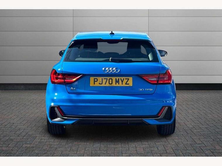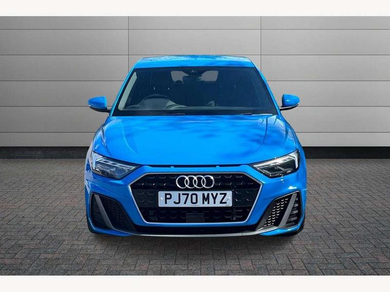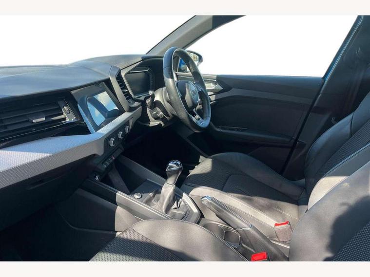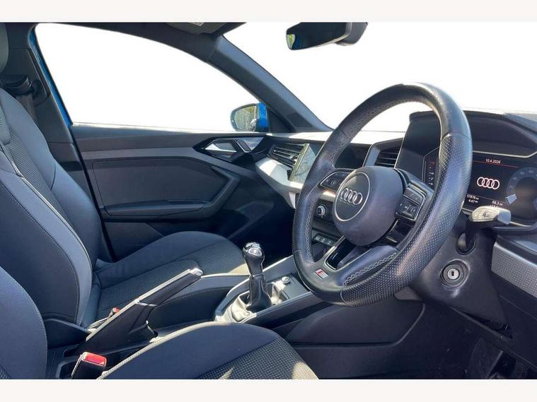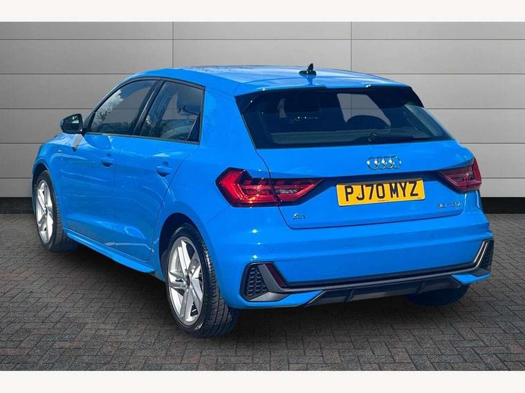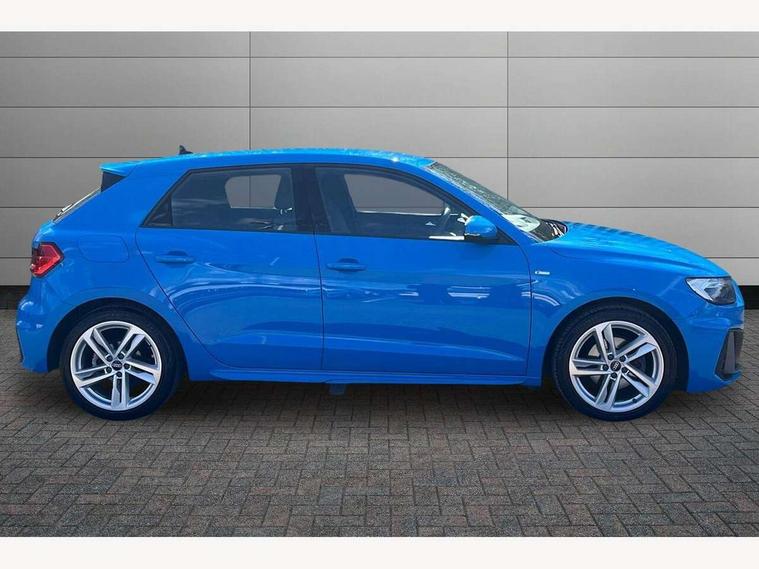 10.25" Digital instrument cluster display classis style instrument dials + speed, odometer, time, outside temperature, telephone menu + fuel level warning, Audi connect safety emergency and service including E-call, Audi drive select - power steering assistance + engine, Audi smartphone interface with connect compatible smartphone via USB directly MMI display + Nav, music, third party apps controlled via MMI controller, Automatic start/stop system, Bluetooth interface, Cruise control, Driver's information system, Electromechanical power steering, Lane departure warning system, Service interval indicator, Speed limiter, Voice control system, Washer fluid level indicator, Sports suspension, 1 x SDXC card reader, 2 x USB type C connection points, DAB Digital radio, MMI radio plus with 8.8" colour MMI display screen and MMI touch, Auto dimming rear view mirror, Body coloured door mirrors, Door sills with aluminium inlays and S Line logo, Electric front and rear windows, Electrically adjustable, heated, folding door mirrors with integrated LED side indicator, Front side air inlets in grained matt black and C frame in titanium black, Heat insulating glass windscreen and side windows, Heated rear windscreen, LED headlights with LED rear lights + dynamic rear indicators + headlight adjustment and high beam, turning light + LED daytime running lights, Radiator grille and rear diffuser in matt titanium black, Radiator protective grille frame in matt aluminium silver, Rain and light sensors, Rear fog lights, Rear wiper, S line badges on front wings, Side front spoiler lips in grained matt black, 12V socket in centre console with two cup holders, 3 rear seats with headrests, 40:60 Split folding rear seat or folded fully, Black cloth headlining, Driver and passenger seat with manual height adjust with forward and backwards adjustment, Front and rear black floor mats with contrast stitching in fine silver, Front head restraints, Height and reach adjustable steering wheel, ISOFIX child seat mounting for front passenger and outer rear seats including top tether attachment point of outer rear seats, Leather gear knob with aluminium trim, Luggage compartment light with front and rear reading lights, Manually adjustable lumbar support in front seats, Stainless steel pedals, LED interior lighting pack - A1, Luggage compartment pack - A1, S line exterior styling pack - A1 Sportback, 3x3 point rear seatbelts, Audi pre-sense front with pedestrain and cyclist recognition, Brake assist function, Driver and front passenger airbag with front side and head airbags, Electronic Stability Control including ABS, EBD, ASR and EDL, Front and rear seatbelt reminder, Front passenger airbag deactivation switch, Hill hold assist, Seatbelt height adjustment for front seats, Seatbelt monitoring, Tyre pressure warning light, Warning triangle and first aid kit, Anti theft alarm, Anti theft wheel bolts and loose wheel warning, Immobiliser, Remote central locking with 2 foldaway keys, Aluminium trim for control switches, air vents and digital instrument cluster, Silver grey inlays polygon structure in diamond paint finish, Structured grey accent areas including air vents, door handle recesses and centre console in quartz paint finish,